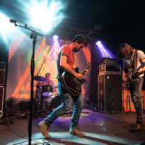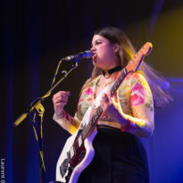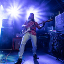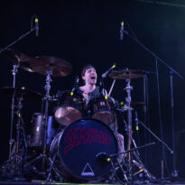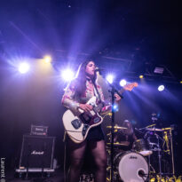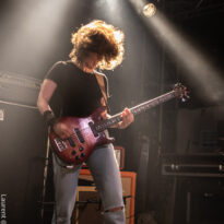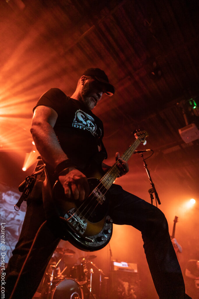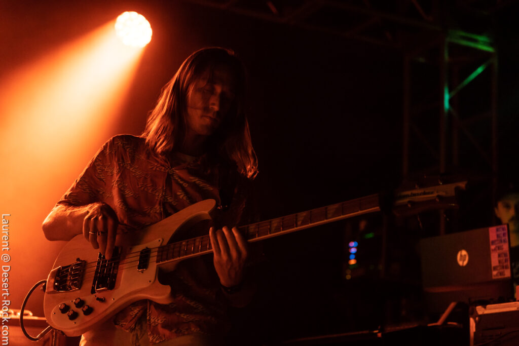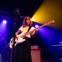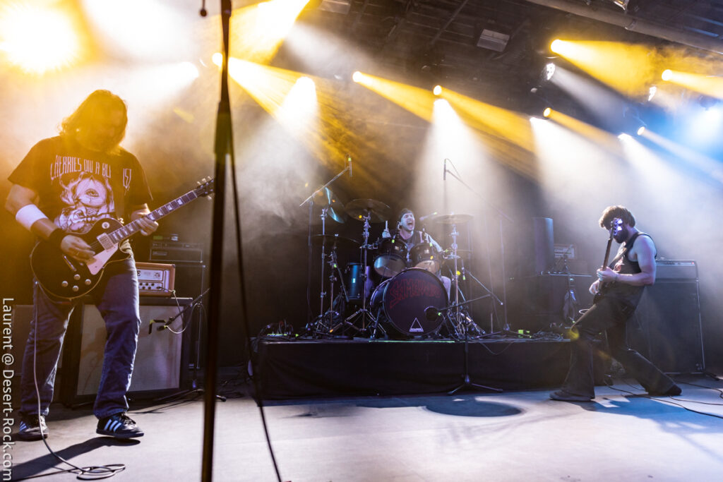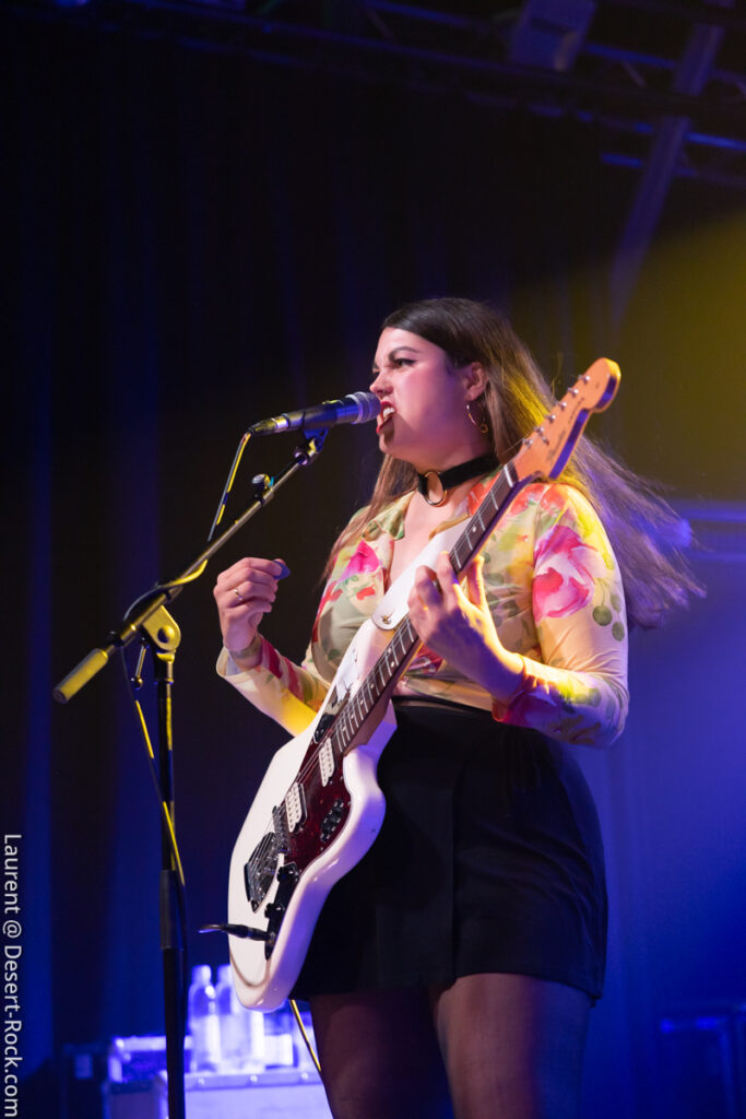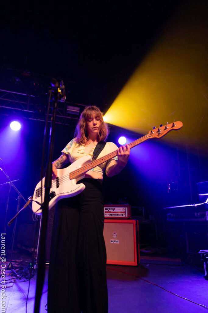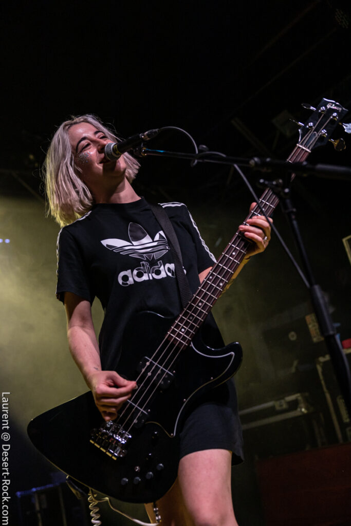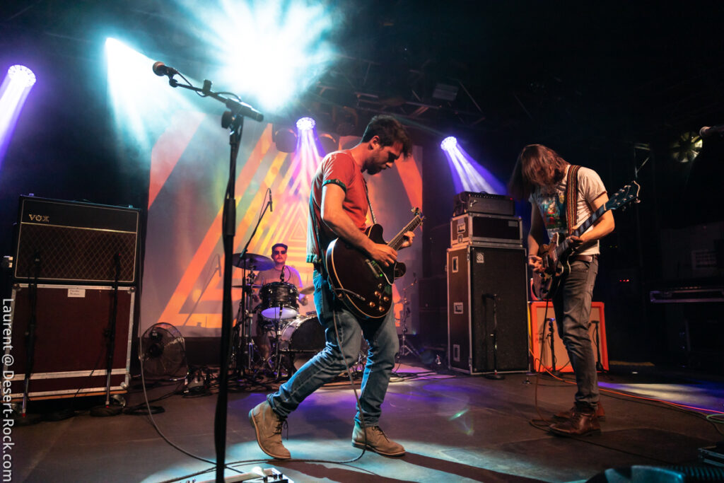 Le trio féminin de Berlin constituait la bizarrerie du festival question registre musical, et c’est devant une foule compacte que le dernier concert du festival sera déployé avec un retard frisant le scandale pour les personnes âgées que nous sommes devenues. 1000Mods avaient terminé leur prestation depuis un énorme moment quand enfin les lumières se sont éteintes dans la salle baptisée Sound Stage le temps d’un week-end. C’est aussi devant la plupart des musiciens présents sur scène durant la journée que les membres du groupe sont arrivées à tour de rôle (batterie, basse puis guitare) pour envoyer le premier morceau. La discographie du groupe entre punk daté, Riot grrrl engagé, grunge, garage et rock est congrue, avec un long format et un court, mais leur présence scénique dans les fêtes stoner est régulière. Avec un capital sympathie au top et leur frontwoman charismatique, Kat, le groupe a maintenu éveillé le public déjà chauffé à blanc par le groupe précédent en envoyant sa sauce très accessible et fort propice aux expressions gestuelles les plus diverses.