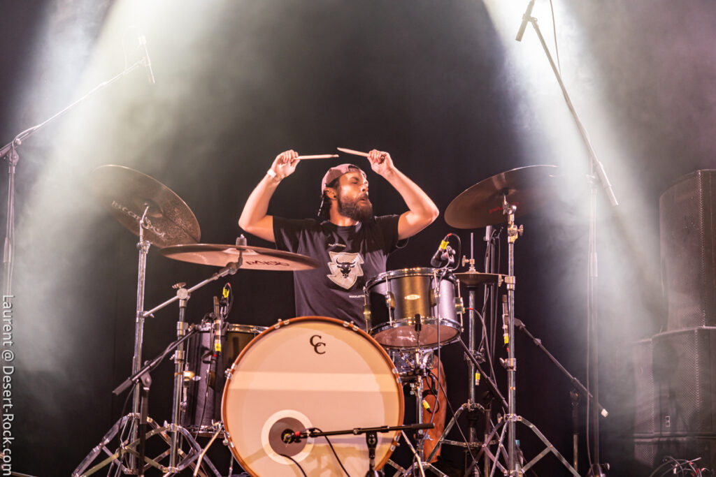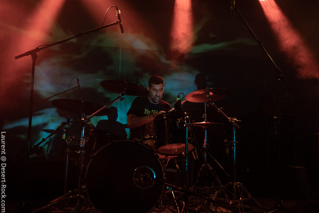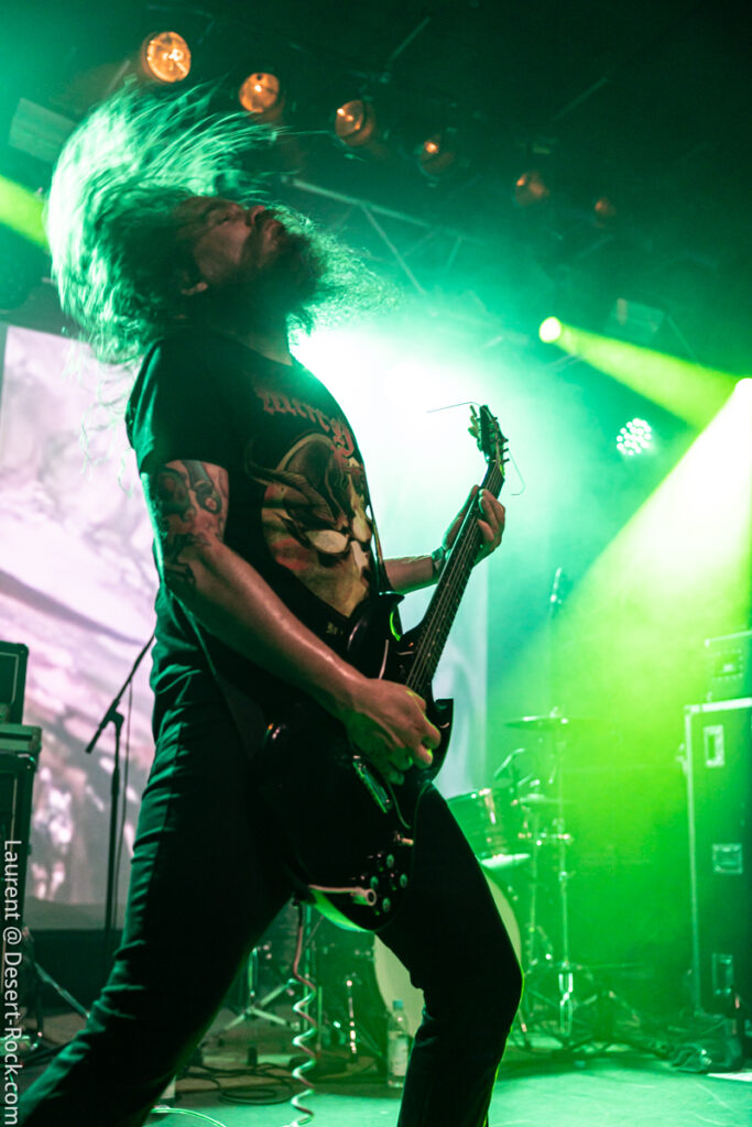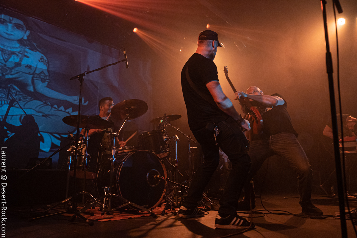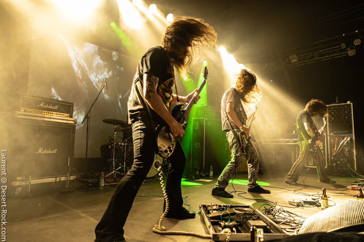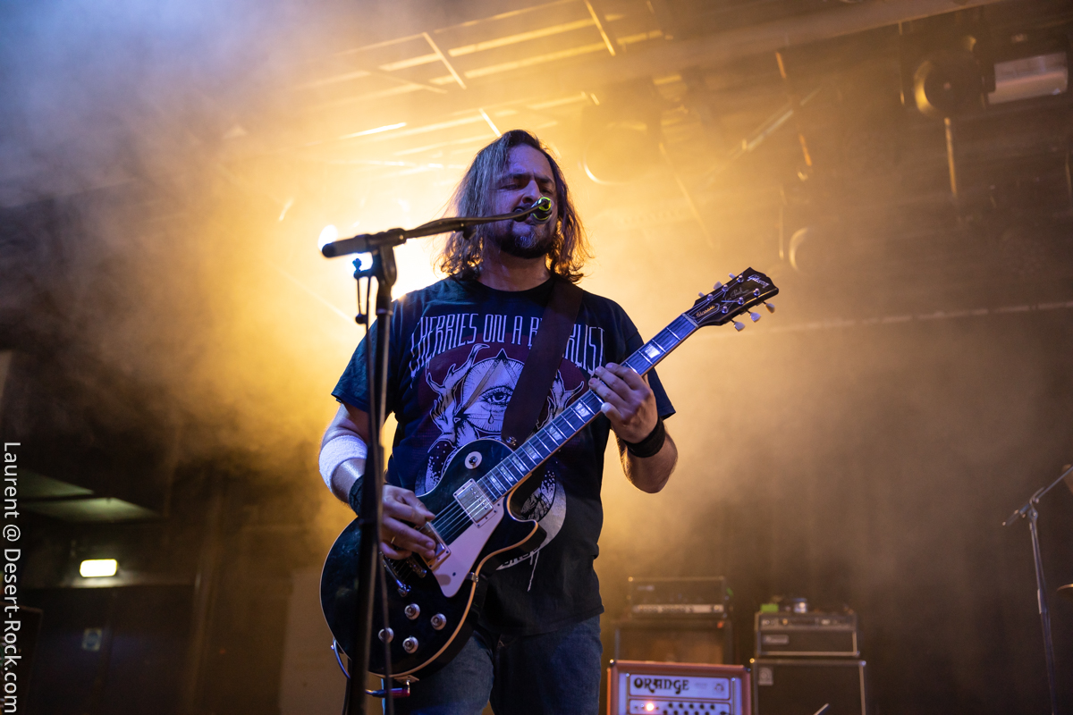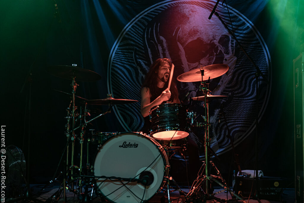 Pas franchement impartiaux quand il s’agit de ce groupe que nous chérissons, c’est avec un peu d’appréhension que nous avons assisté à leur show sachant que leur guitariste rétabli du poignet n’avait repris sa guitare en main que 3 semaines plus tôt. Au final aucun accroc lors de cette prestation qui s’avéra d’excellente facture. Malgré le manque de pratique ces derniers temps, les Suisses ont livré un show magistral (avec de nombreux membres des autres formations du jour dans le public pour y assister) comme à l’accoutumé ou presque. Ou presque car ils ont balancé le magique « Icarus » pour la première fois en festoche et c’est une énorme baffe psychédélique qui a été assénée aux veinards présents dans la place. Putain que c’était bon !