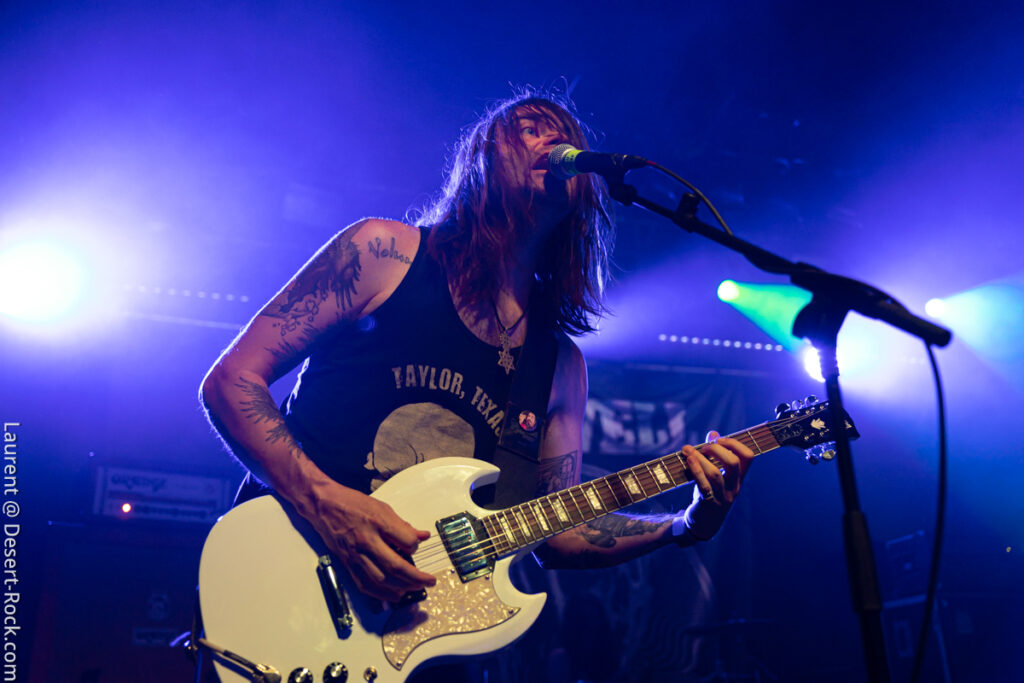 « Nous sommes The Well, nous venons du Texas » annonce tout de go le trio américain, souriant et manifestement prêt à en découdre : c’est avec une belle énergie et un enthousiasme contagieux que le groupe engage son set (le contraste avec l’entame de Humulus est marquant). Toujours est-il que le public de la petite scène accueille les premiers riffs du trio d’Austin sous une vague de headbanging et de sourires. Musicalement, The Well n’a plus grand chose à prouver, et son set du jour propose une nouvelle fois une belle démonstration de leur savoir faire : habile mélange de riffs purement sabbathiens et de groove texan pur jus, leur musique conquiert en un tour de main une assistance dense, qui ondule au rythme des chansons. Au milieu d’une impeccable set list de chaudes pépites ayant déjà fait leurs preuves sur la route (« This is how the world ends », « Mortal Bones »…), le groupe propose un titre inédit (spoiler : il est dans la même veine…) pour le plus grand plaisir d’un public qui fait preuve d’un bel enthousiasme. Ian et Lisa se partagent le chant et occupent la scène chacun avec leur personnalité et énergie propre. Une superbe démonstration et (encore) un set réussi à mettre à l’actif de ce trio qui n’a pas fini de nous ravir.