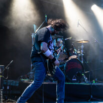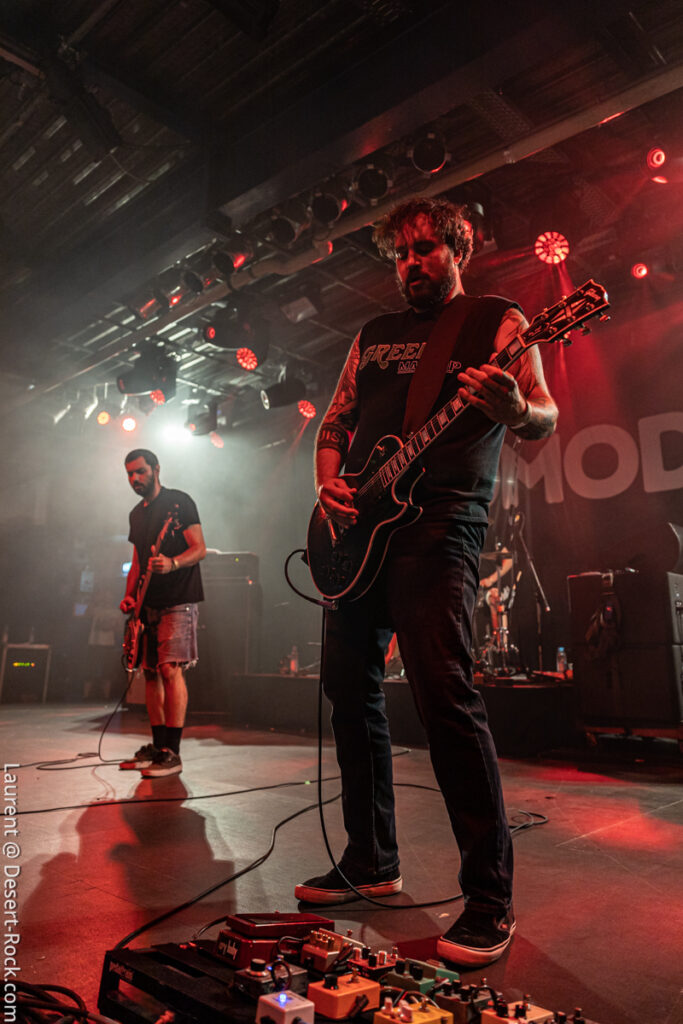 Malgré l’accueil mitigé reçu par leur dernier album, s’il est un domaine où 1000mods ne fait pas débat, c’est bien dans le registre live. Avec l’annulation de Fu Manchu, les grecs se retrouvent mécaniquement bombardés têtes d’affiche de la journée. Ce qui en aurait inhibé plus d’un ne semble pas handicaper le moins du monde le jeune quatuor, qui monte sur les planches avec l’assurance propre aux plus expérimentés groupes live du circuit – ce qu’ils sont devenus, sans l’ombre d’un doute. La machine 1000Mods se met doucement en marche, montant en pression sur leur vieux standard groovy « Road to Burn », pour se retrouver très vite à plein régime (enchaînant notamment avec le punchy « Pearl », réhabilitant avec force une partie de leur décriée dernière production). Et à partir de là, et pour l’heure et demie environ que durera leur set, c’est carton sur carton : en contrôle, le groupe a fignolé sa set list pour enchaîner les classiques tout en aménageant une place judicieuse aux meilleurs titres de son dernier LP, mêlant les mid-tempo groovy dont il a le secret aux morceaux plus nerveux – mention spéciale au dévastateur enchaînement « Loose » / « Low ». Une interprétation à chaque fois sans faille, laissant aussi sa part aux aménagements, étirements de certains titres, introduction de séquences jams pour mieux tenir le public sous pression… Un public qui ne s’y trompe pas, et qui prend un pied énorme : slams et stage diving font plusieurs apparitions sur la seconde moitié du set, dans une ambiance on ne peut plus festive. Dans cet état de forme, 1000Mods est inattaquable, et se sont largement montré à la hauteur de l’événement du week-end, dans une célébration toute en énergie, en décibels et en fuzz. Fu Man-qui ?