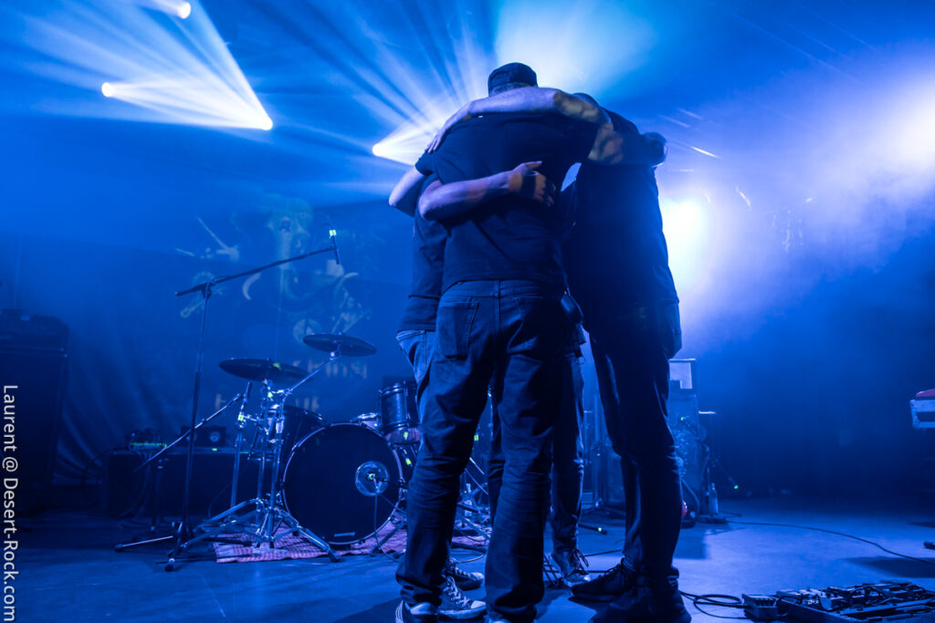 Ayant rencontré quelques aléas sur la route, Monkey3 arrivera en retard, et il est donc décidé de permuter leur set avec celui de My Sleeping Karma, initialement prévu un peu plus tard. Deuxième concert du week-end pour Matte Vandeven, par ailleurs bassiste de The Great Escape qui a ouvert le fest la veille. Un homme bien occupé ce week-end puisqu’il est aussi le grand ordonnateur de Sound of Liberation, dont nous fêtons présentement l’anniversaire. Le public n’en a cure, et se presse en masse dans la grande salle principale pour assister à, il le sait déjà, ce qui sera probablement l’un des événements du week-end. Les quatre allemands, pour rappel, reviennent de loin, ces dernières années ayant vu l’un des leurs victime d’une lourde maladie, dont il s’est heureusement rétabli. Les diverses embrassades et autres célébrations entre les quatre amis sur scène au fil du concert démontrent le fort lien qui unit les musiciens, un lien qui, on le sait, transcende chacune de leurs prestations. Celle de ce soir n’y fait pas exception : porté par une mise en son impeccable qui vient emplir la vaste salle de concert et embarquer la foule, la musique du quatuor envoûte l’auditoire pendant une grosse heure, qui voit défiler les classiques indémodables du groupe (quelle entrée en matière avec le doublon « Brahama » / « Prithvi » !) et même de l’inédit avec « Prema » (premier extrait du prochain album déjà diffusé par le groupe… qui passe très bien l’épreuve du live). Le set évolue avec ses hausses de tension et ses accalmies, avec en guise de temps fort l’intemporel « Ephedra », entre autres. Les musiciens jouent avec un grand sourire aux lèvres et ne sont pas avares en énergie à destination du public, qui le lui rend bien. Comme prévu, un grand moment.