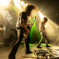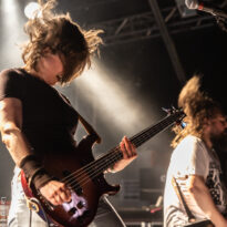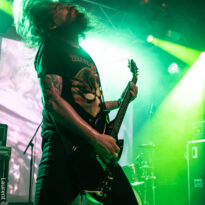La journée est loin d’être finie, mais malgré quelques belles machines à riffs, on pourrait presque noter un léger déficit en gras. Rassurons-nous, ça ne va pas durer : Belzebong se pose sur la petite scène et très vite leur gros doom glaireux d’école vient emplir chaque recoin de la salle. En quelques minutes, les centaines de têtes tassées dans l’obscure salle de concert viennent répondre au glorieux headbang perpétuel pratiqué par les deux guitaristes et le bassiste, dans ce qui devient très rapidement une sorte d’orgie de cheveux, une harmonie fusionnelle entre la scène et le pit à la sauce headbang. L’efficacité du doom qualitatif des polonais n’a plus à faire ses preuves, et a déjà fait trembler bon nombre de murs de salles de concert sur le vieux continent – et aujourd’hui ceux de Munich s’y prêtent volontiers. Lorsqu’un de ses guitaristes rencontre un petit problème technique (prétexte ?), n’importe quel autre groupe aurait tenté de distraire le public en blaguant ou en improvisant un petit jam innocent pour patienter, le temps de trouver un jack de substitution. Nos quatre gaillards, dont l’amour de la fumette est bien connu, préfèrent évidemment dégainer et faire tourner un gros joint, qui finira sa courte vie dans les premiers rangs, tandis que les zicos repartent à l’assaut à grands coups de riffs. Classique, en touts points.