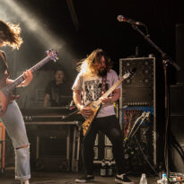 Retour sur la « petite » scène, avec encore un trio, batave cette fois, mais pas moins intéressant que ses prédécesseurs. Rappelant une approche très « Colour Haze » dans l’esprit, le trio s’extirpe de son soundcheck sans esbroufe, introduisant son set via un embryon de jam et une montée en tension qui ne tarde pas à envouter tout le public. Pas pour autant dans l’ombre de leurs plus expérimentés collègues allemands, The Machine larde ses jams de passages plus puissants, leurs gros riffs laissant néanmoins toute leur place à de longues séquences de lead toujours sous contrôle. David Eering mène clairement les débats, bidouillant presque en continu sa guitare et son pedal board, toujours en maîtrise, virtuose dès qu’il s’agit d’agrémenter ses riffs plombés de soli efficaces. Le public bien dense n’en perd pas une goutte et ondule en symbiose, entre headbang et fluctuations incontrôlables dans les rangs. Le son puissant (malgré une basse un peu trop chargée) vient servir ce set qui fera partie de la (déjà longue) liste des tous meilleurs du week-end.