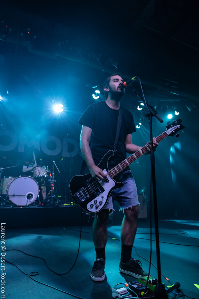 Avec sous le bras un premier album remarquable (mais trop peu reconnu), les jeunes norvégiens de Slomosa ne ratent pas une occasion de fouler les scènes européennes. Avec un set calé juste avant 1000Mods qui vient clôturer la main stage, le jeune quatuor se retrouve l’air de rien bombardé en quelque sorte headliner de la plus petite scène ! Un statut qui ne semble pas l’impressionner outre mesure, les jeunes musiciens prenant place sans cérémonial sur la scène pour une intro instrumentale qui donne le ton de leur set : gros son, interprétation sérieuse et carrée, et du groove à revendre. Même si son frontman (guitariste et chanteur) Benjamin focalise de fait l’attention, ses collègues ne déméritent pas et proposent une interprétation énergique, chacun dans son registre. Chaque titre est accueilli avec un peu plus d’enthousiasme par un public connaisseur et conquis, dans des registres plutôt énergiques ou plus nonchalants (superbe version du chaloupé mais nerveux « Estonia »). Est-ce le fruit d’une pression qui diminue ou bien de cet accueil dithyrambique, toujours est-il que les sourires sur scène se font de plus en plus présents, concomitamment avec l’arrivée de la la salve des plus gros « tubes » du groupe (l’enchaînement « There is nothing new under the sun » / « Kevin ») opportunément concentrés sur la fin du set. Un des meilleurs sets du week-end (encore un !).