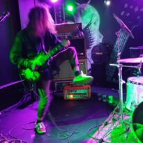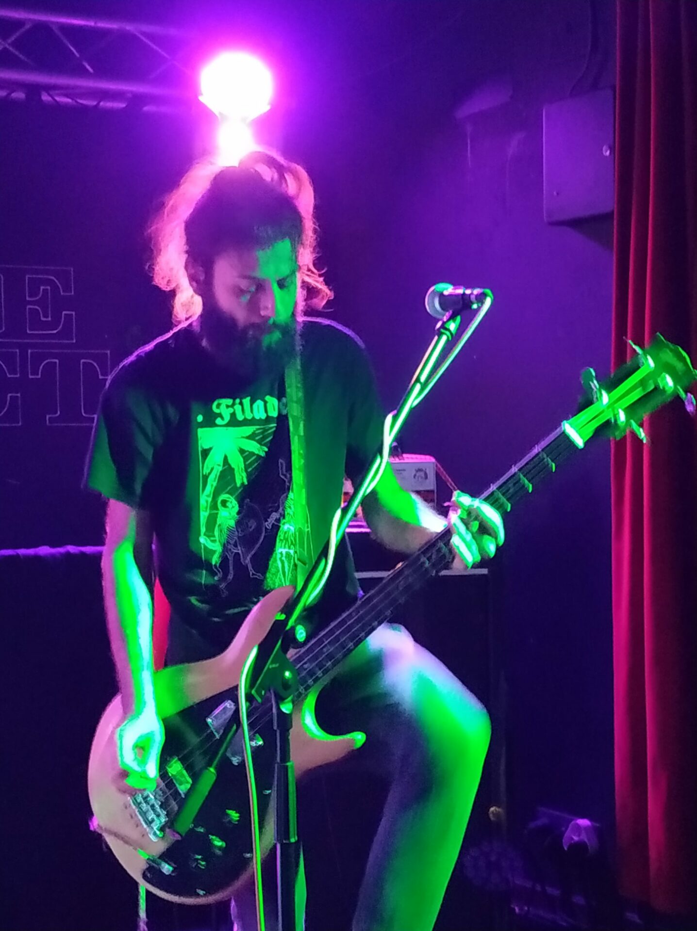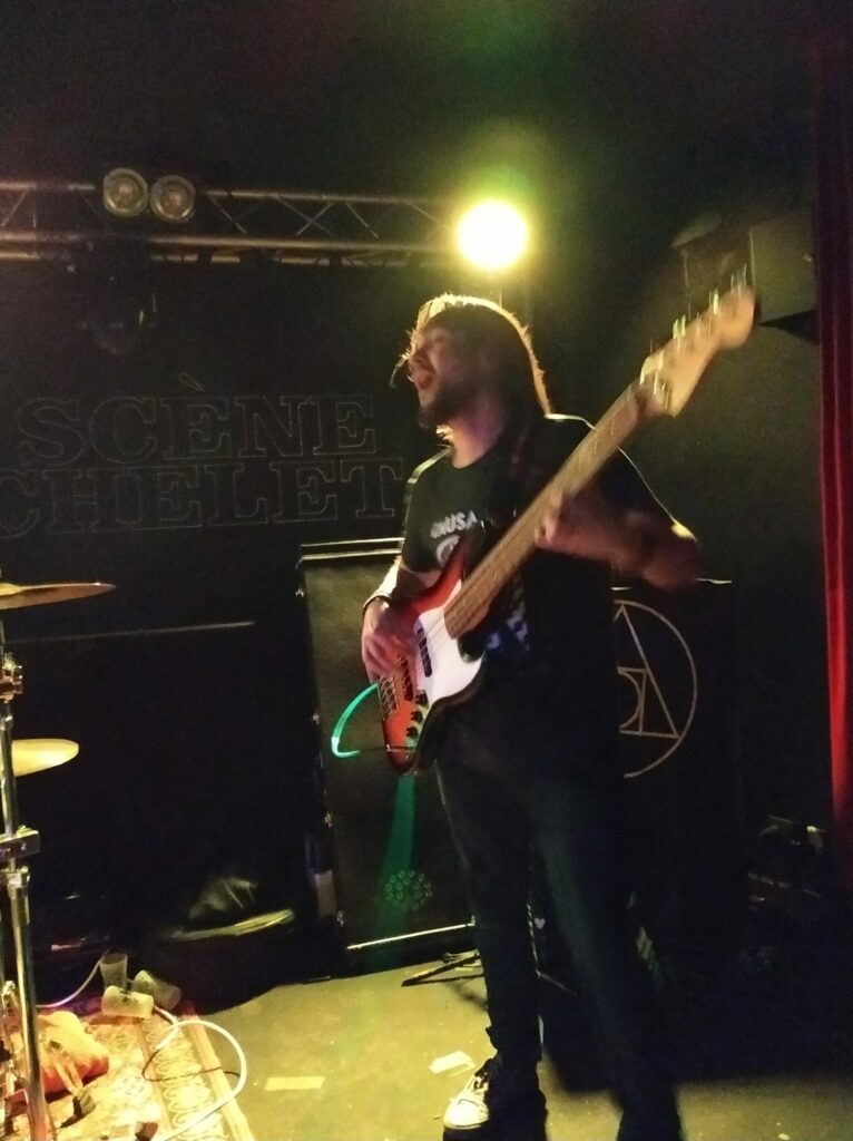 Une énergie juvénile déborde de ces gars un brin poseurs mais séduisants de fougue. Wormsand met quelques minutes à convaincre son auditoire mais pour des raisons techniques où le guitariste frôle la colère. Heureusement le public est bienveillant et les gesticulations énergiques ainsi que les idées prometteuses de la musique ont tôt fait d’enthousiasmer la salle. Les efforts musicaux naviguent dans une nappe continue d’un même gruau quasi doom l’ensemble est pesant à souhait. Emerge de la masse le chant qui touche plus au cri rauque qu’à l’angélus. Ce doom sombre ou pointe (poutre?) parfois la lumière fait bien son office ce soir même si une respiration de temps en temps n’aurait pas nuit il est indéniable que les accords qui séduisent l’oreille feront de Wormsand un groupe à suivre toujours plus attentivement et à revoir sur les planches avec (encore) quelques bornes de plus au compteur pour savourer pleinement leur musique et y trouver les tanins propres aux vieux routards sludge qu’ils promettent de devenir.