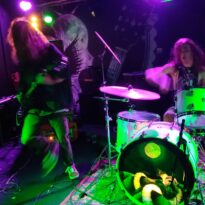 Black Horns tire une originalité délicieuse de la base du genre. La gratte exhale une haleine pas nette où suinte un fond d’ordure. Mais derrière la crasse faussement étalée il y a une réelle maîtrise. Le public ne s’y trompe pas et tends la joue pour se faire tarter comme dans un concours de baffe du fin fond de la Sibérie. C’est sludgy, muddy et alcoolisé comme il faut. La nonchalance d’Adri à la gratte est porteuse. Sa voix du fond du bayou ajoutée au swing de Tom derrière ses fûts offrent une palette de jeu virant du blues au doom en passant par le sludge. Carton plein pour Black Horn qui conquiert la salle et fini le préchauffage de la machine avec une efficacité remarquable.
