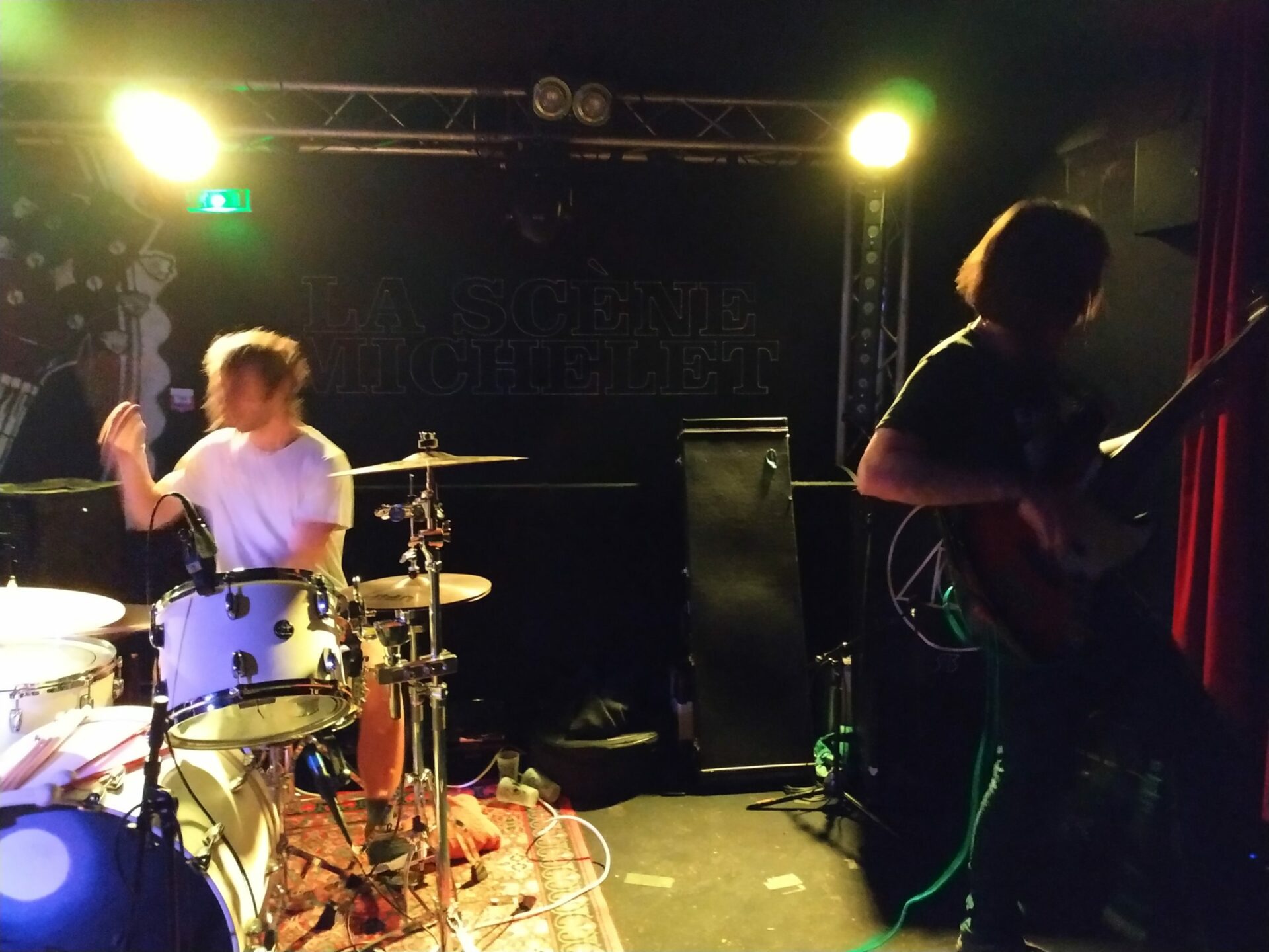 Nous voici donc encore une fois à la scène Michelet et ce soir c’est Black Horns qui a pour tâche d’ouvrir le bal. Cet étonnant duo Rennais a déjà à son actif un EP et un LP et les deux bonshommes ne sont pas venus faire autre chose que jouer. Ils associent l’art minimaliste du duo à un je-m’en-foutisme salutaire. Les gars produisent un son qui appartient à beaucoup d’autres groupes sans pour autant en être la copie conforme.