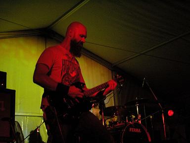 Kongh n’est pas là pour rigoler. Les premières notes très lourdes s’accompagnent d’un chant hurlé style death metal. Nous qualifierons donc Kongh de groupe death doom; cette étiquette collée à la va-vite nous fera mentir car le chant s’adoucira un peu, alors que le style deviendra plus technique. Certaines compo sont tout simplement hyper-efficaces, seconde révélation du festival, ça enchaîne.