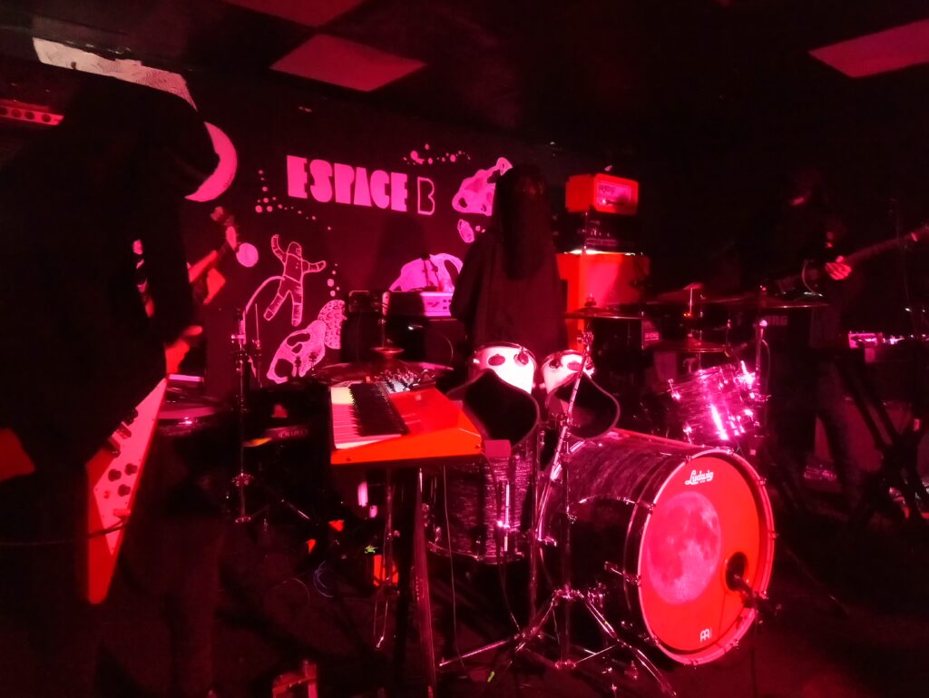 Le set clôture avec « Kobe » comme une fuite, une élévation où le jeu se fait plus vivant encore et où chaque musicien s’oublie. Chaque prestation du groupe à laquelle j’ai pu assister est un réel bonheur et ne laisse pas une seule seconde la possibilité de se désamarrer de la scène, la prestation de ce soir ne fait pas exception à la règle. Même dans une arrière salle exigüe et quasi anonyme la magie opère pour ce groupe aux définitions floues dans la musique duquel se mêlent Doom, Sludge et Post-Metal.