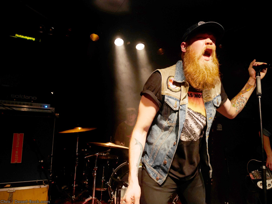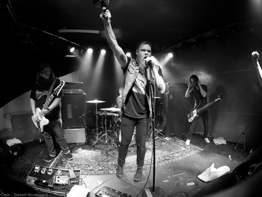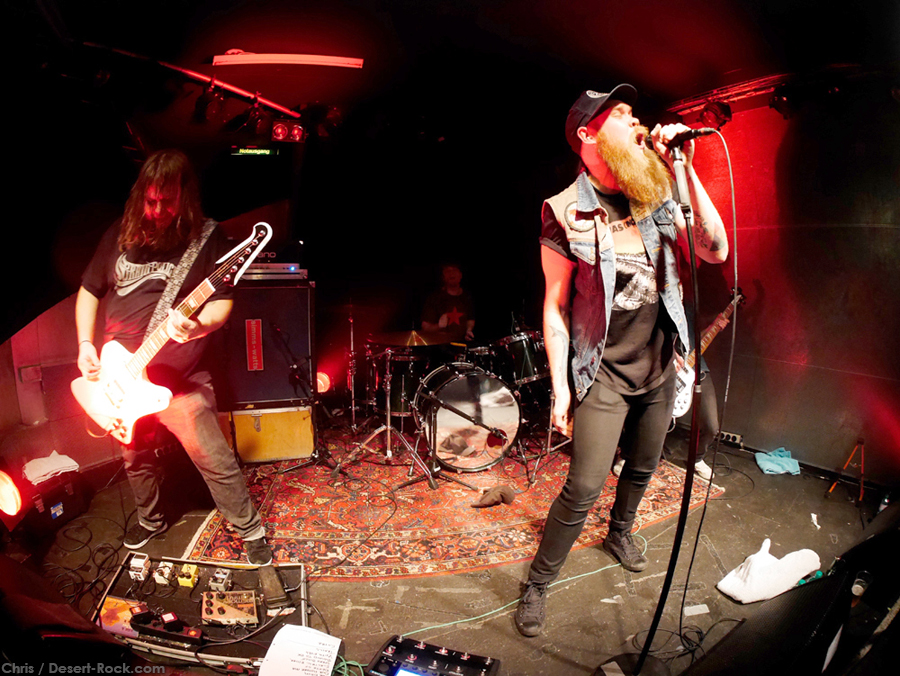 Chaud comme des baraques à frites, nous avalâmes tranquillement les plus de 300 bornes, nous rassasiant de la pitance hors pair que nous proposent les stations service des autoroutes helvétiques, de la musique habilement sélectionnée (faut pas croire : nous sommes des mélomanes avertis), de notre humour hautement sophistiqué ainsi que de nos smartphones devenus le prolongement de nos membres supérieurs. C’est grâce à ces accessoires bourrés de la plus haute technologie que nous apprenions en cours de route que le concert du soir était full ! Chose à peine croyable il y a de cela quelques années, les soirées estampillées stoner font le plein désormais un peu au nord de la Romandie là où le dialecte local est parfois un véritable frein à la communication entre citoyens du même monde.