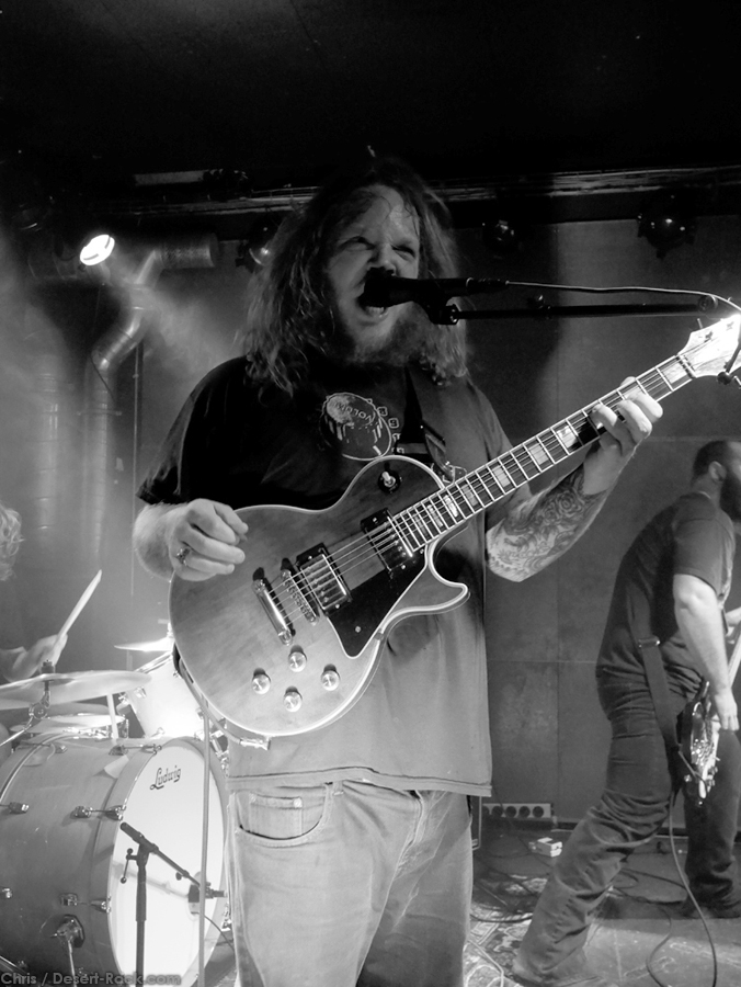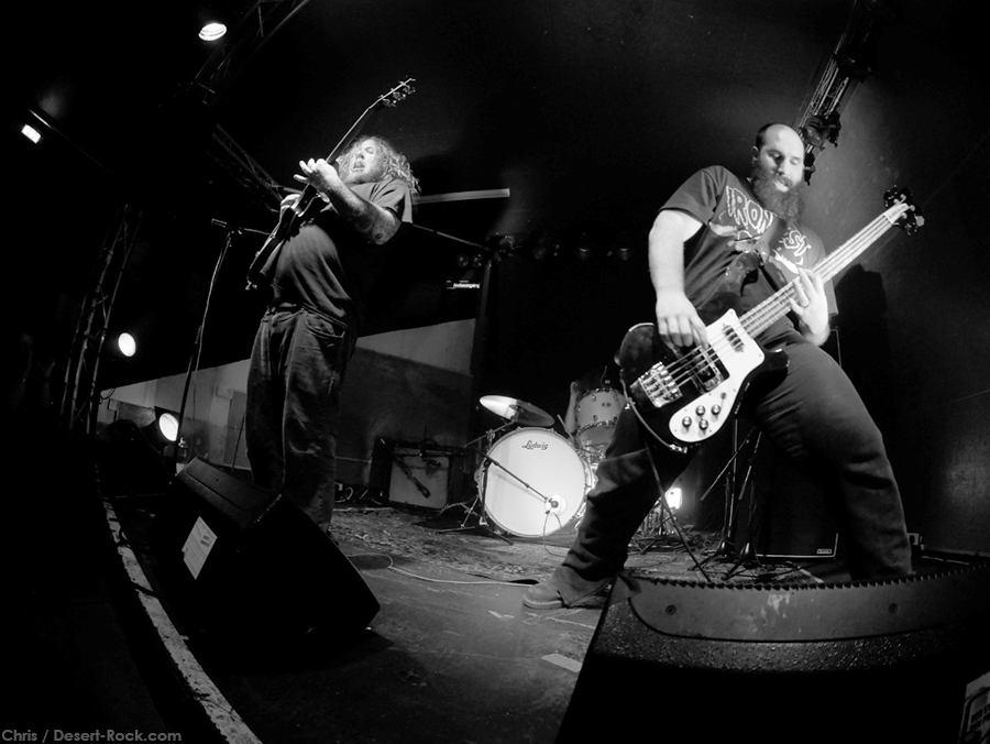 En tant que non conditionnel de la salle, j’ai été frappé par celle-ci : énorme espace (avec scène pas utilisée ce soir-là), galeries, bar d’une longueur impressionnante, salle en sous-sol, etc. Les souterrains malodorants où l’on ne peut s’abreuver qu’en cervoises tièdes ne sont donc, ici aussi, plus les seuls endroits dans lesquels le stoner rock peut se déployer et on ne va pas cracher dans la souplette maintenant que nous pouvons régulièrement assister aux concerts de notre groupe bien aimés.