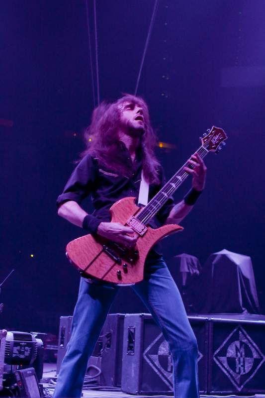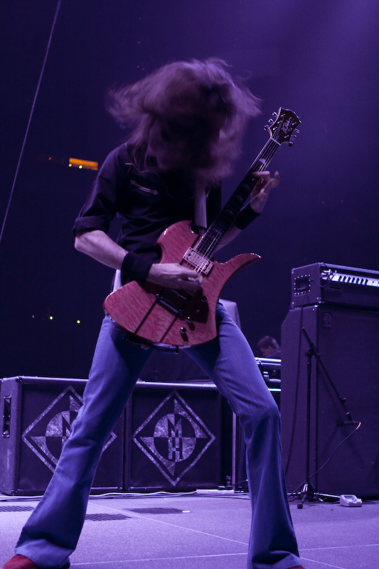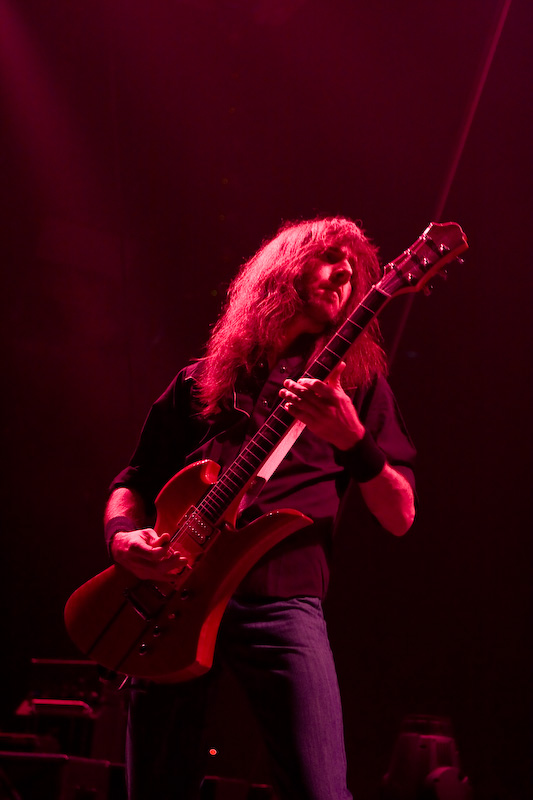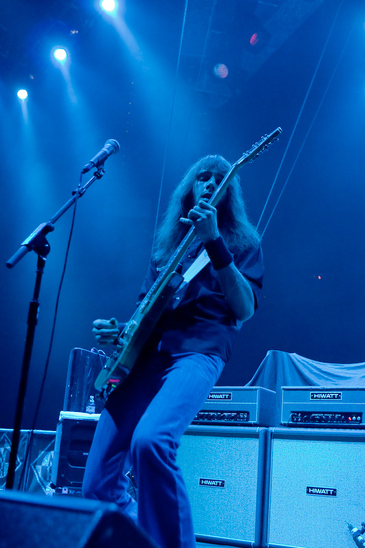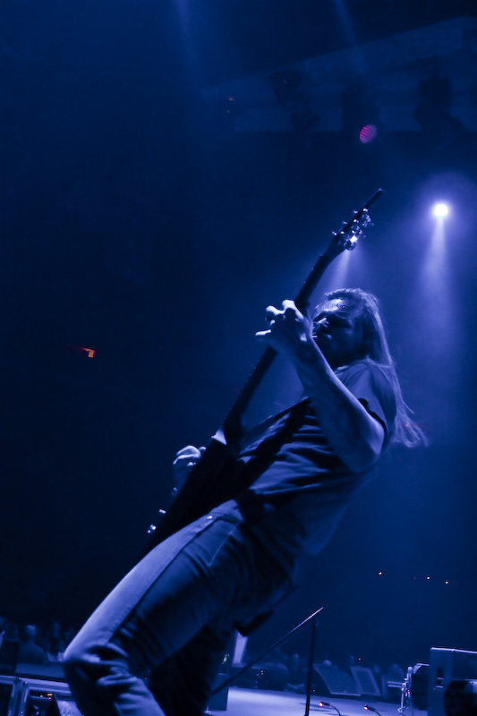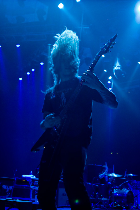 Musicalement, c’est direct et droit à l’essentiel, comme la musique du groupe : un hard rock teinté de metal, baignant dans les 70’s et 80’s (pas étonnant que le groupe ait été repéré par Lars Ulrich himself, grand fan de cette période), gorgé de riffs et de soli bien rentre-dedans. Ca joue bien, et même si le son est un peu criard, les soli de Kyle Shutt rendent bien, et le chant de JD Cronise percute. Le public, qui n’est pas au complet (voir l’horaire de début, honteux), est dans tous les cas un peu amorphe, faute notamment à la bouillie sonore et la pénombre ambiante qui se présentent sous ses yeux : le quatuor n’est vraiment pas sous son meilleur jour. Une chance manquée