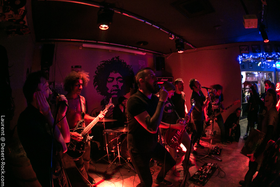 A la fin du set (après une heure environ), les gaillards s’inquiètent du temps restant (couvre feu à 22h). Un quart d’heure ? Pas de problème, juste assez de temps pour faire monter les 4 potos de Inglorious Bad Stars pour un rappel chaotique (8 gars sur une si petite scène, est-ce que ça peut vraiment bien se passer ?) vaguement répété la veille, où vont se téléscoper des versions imparfaites mais enthousiasmantes de reprises (les Kinks avec « You Really got Me », EODM avec « I Want you so Bad », les Beatles, Kyuss…). Fun. Une excellente soirée.