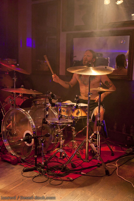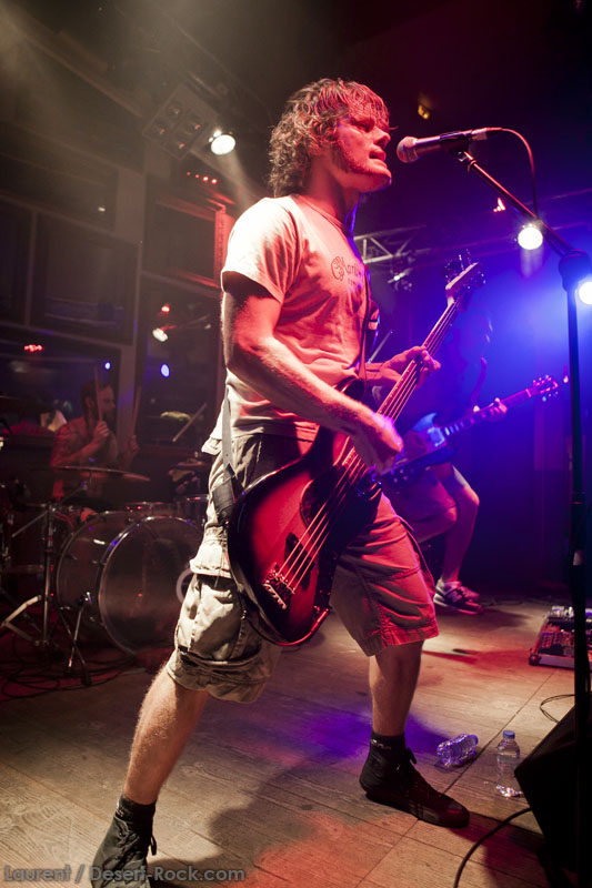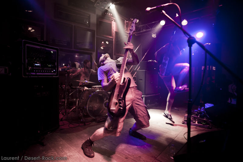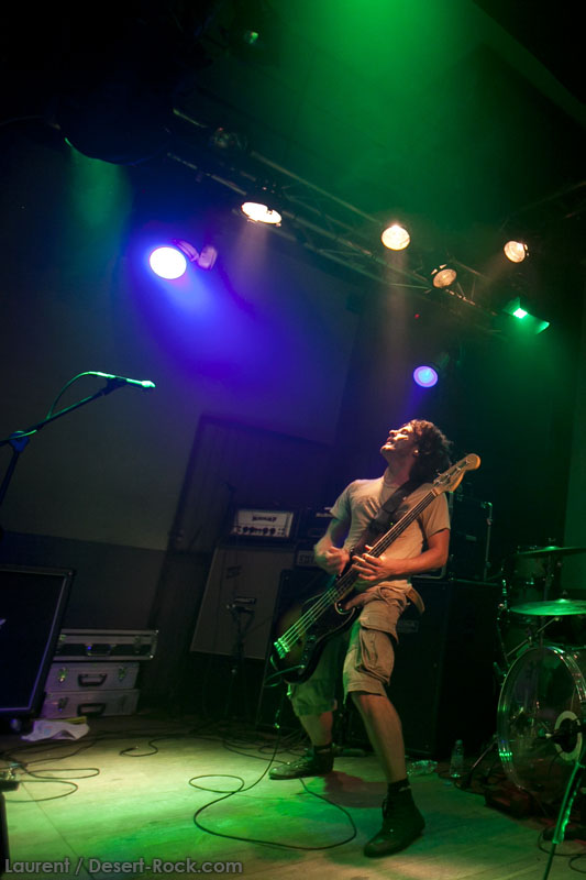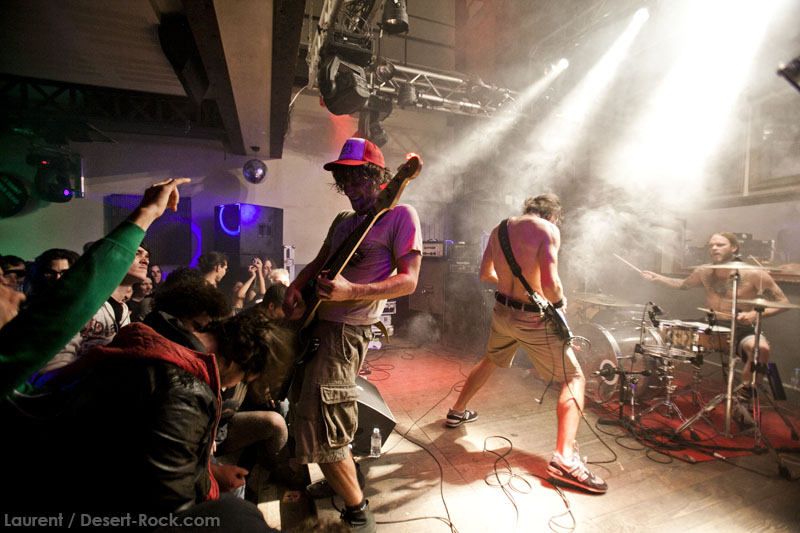 Il est clair que la notoriété de Truckfighters dans nos contrées les plus occidentales de l’Europe n’est pas à la hauteur de leur réputation scénique, ni de leur production discographique. A ceci, au moins une explication : le groupe n’avait, jusqu’à cette année, pas joué plus de 4 fois de notre côté de la frontière (et encore, uniquement dans des villes plutôt à l’est). Jamais le groupe n’avait même été jusqu’en Espagne par exemple. Remonté comme des coucous, et auréolés d’une notoriété qui les a mis en confiance, le groupe a jeté ses amplis dans une petite camionnette, et a pris la route, bien décidé à aller faire exploser neurones et tympans un peu partout en Europe ! Dans ce contexte, avec une furieuse envie d’en découdre, le groupe aura même ajouté un peu à l’arrache cette date à Toulouse, initialement non prévue dans sa tournée. Annonce tardive, peu de promo, groupe pas encore très renommé, tout laissait à penser que l’affluence serait catastrophique. Quel soulagement dès lors d’arriver devant la salle en constatant une petite file d’attente ! Mieux encore, une fois rentrés, l’affluence dans la salle est plus que satisfaisante, et ce alors que le premier groupe n’a pas encore branché ses guitares.