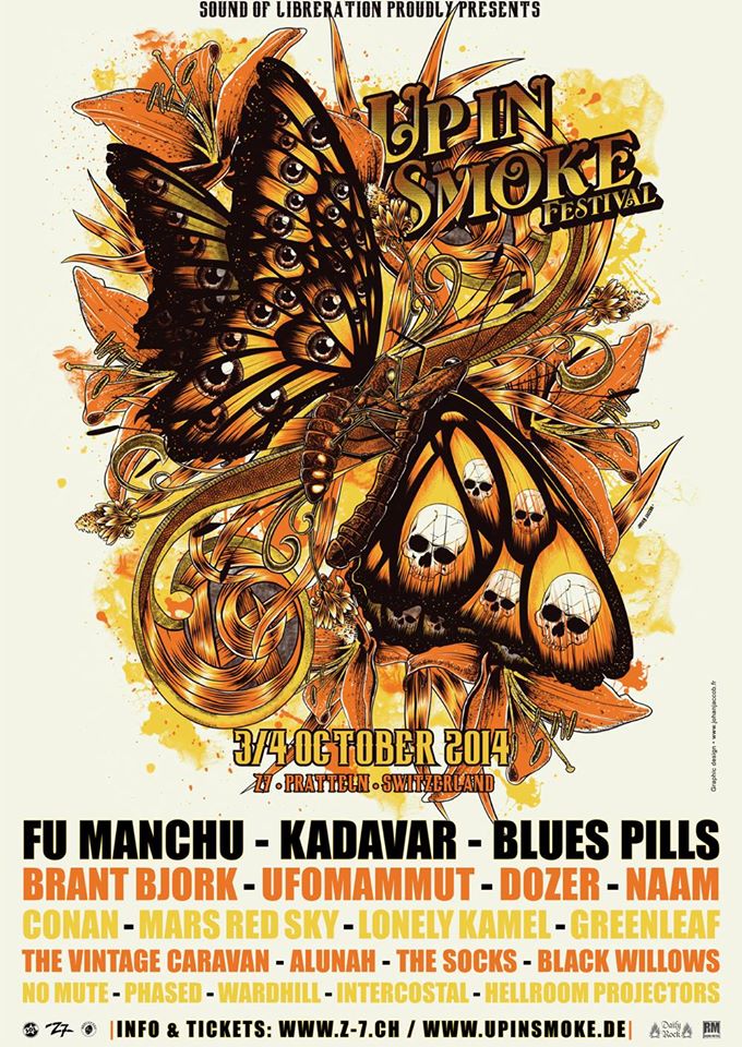 Ca y est l’affiche du prochain Up In Smoke qui se déroulera à Bâle les 3 et 4 octobre prochain est complète avec l’annonce de la participation de Phased. Ce dernier groupe, le régional de l’étape, complète une affiche impressionnante avec Kadavar, Fu Manchu, Dozer, Blues Pills, Brant Bjork qui présentera son Low Desert Punk, Ufomammut, Conan, Naam, Mars Red Sky, Lonely Kamel, Greenleaf, The Vintage Caravan, Alunah, The Socks, The Black Willows, No Mute, Intercostal, Wardhill et Hellroom Projectors.