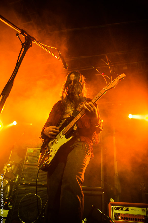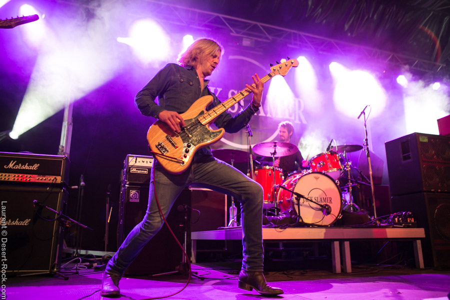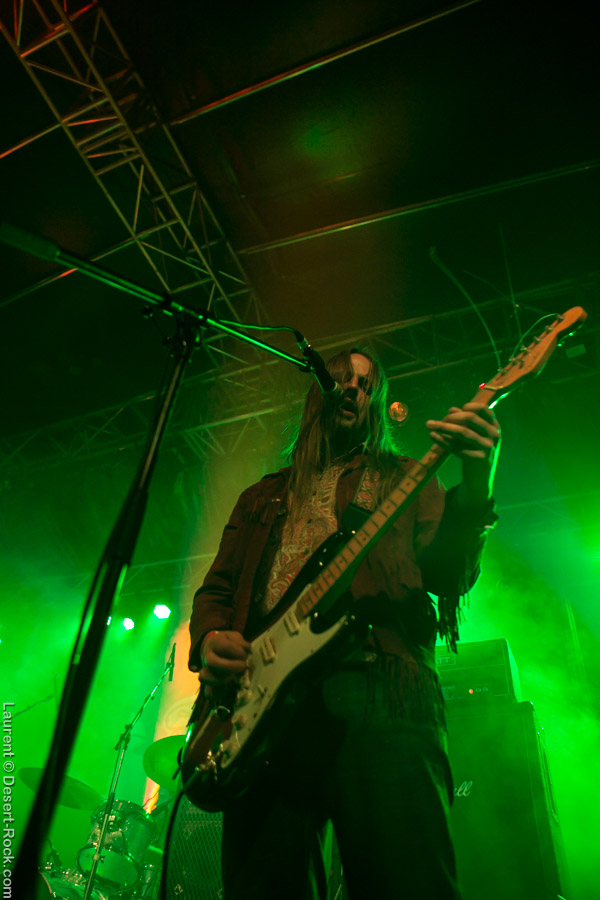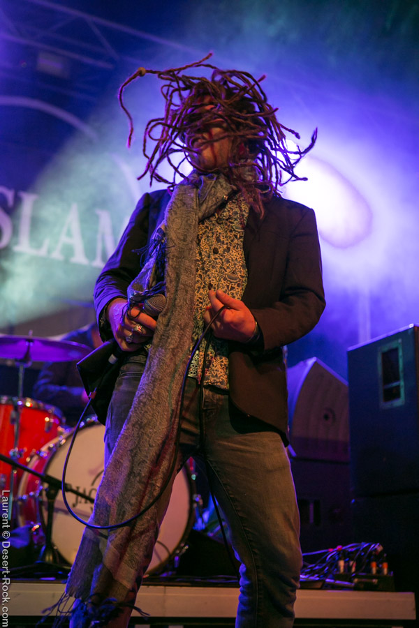 Première formation à se produire lors de ces festivités du riff, Jack Slamer fait tout de suite bonne impression aux hippies de l’assistance. Enfants du pays, à la grosse louche puisqu’ils viennent de Winterthur à une centaine de bornes, le groupe a déjà effectué un beau parcours et ils ne détonnent pas du tout en ouverture de rideau. Ils dispensent un rock hyper vintage qui puise son inspiration dans les seventies. Échangeant quelque peu en allemand (comprendre en suisse-allemand) avec le public déjà assez nombreux en cette fin d’après-midi, ils maintiennent devant la petite scène les festivaliers qui entrent au compte-gouttes dans l’enceinte en raison d’une nouvelle configuration de l’entrée peu compréhensible aux non-germanophones. Le frontman à dreads focalise l’attention et les compos fort abouties font de cette première passe d’armes une excellente mise en bouche, même si la pluie a tenté de gâcher la fête (sans succès vu la nouvelle organisation de la petite scène plus haute, plus large et couverte sur une longueur plus importante). Bref on s’en bat les couilles des conditions climatiques et on tape du pied en mesure pendant que le tambourin vient souligner le côté vieille école de ce premier set.
