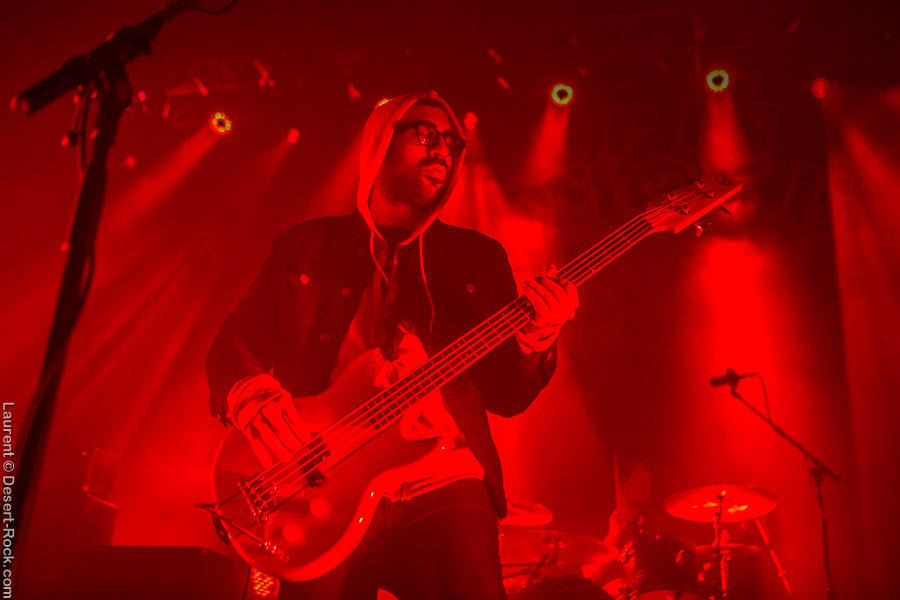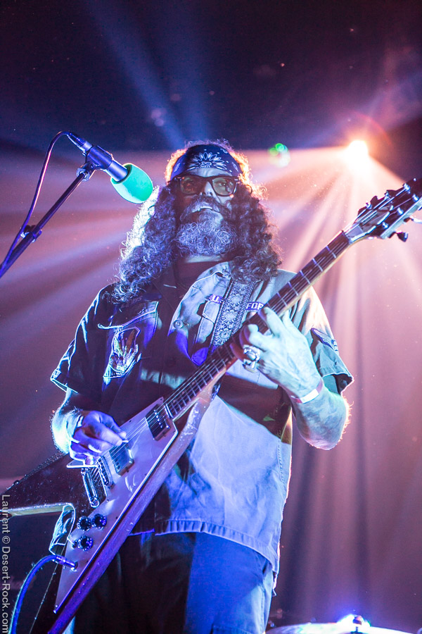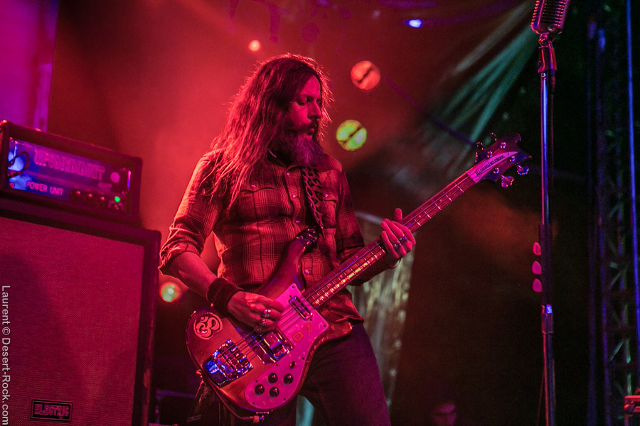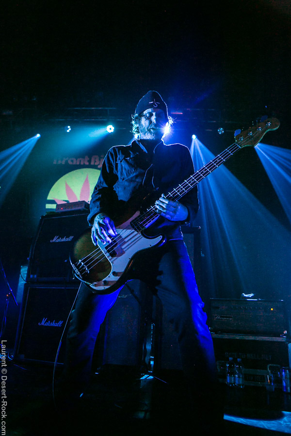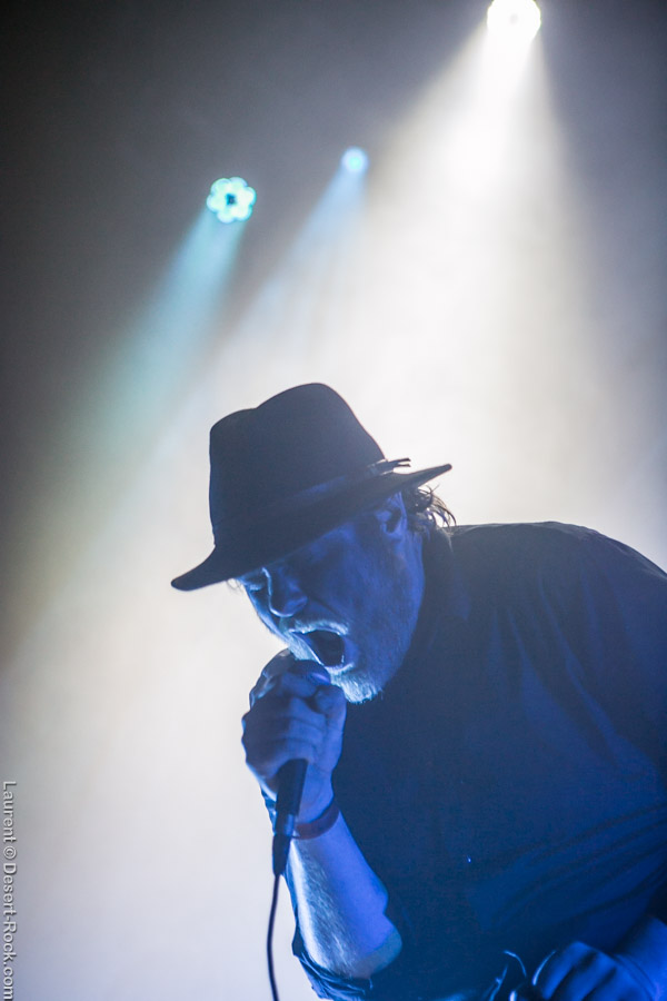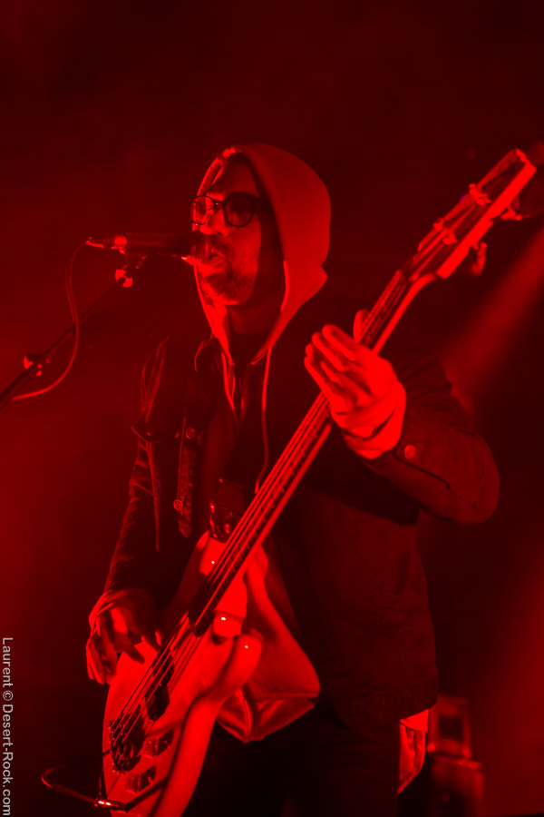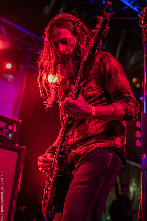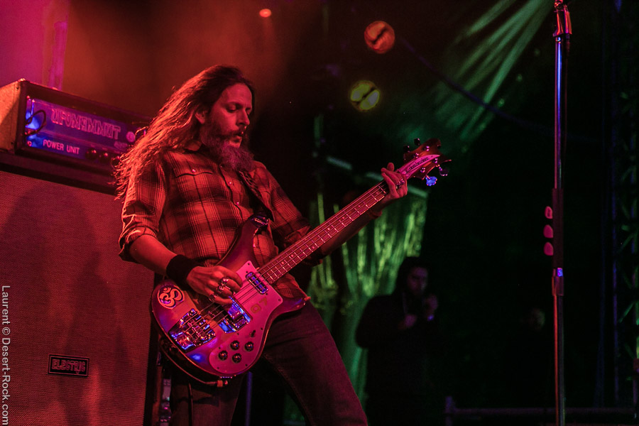 Après ce set du grand frisé du désert, une autre figure emblématique du genre se prépare à se lancer dans la bataille : le trio transalpin Ufomammut se prépare tandis que le public termine sa translation vers la seconde scène. Sans projection vidéo, le set se basera sur la musique du groupe uniquement, et c’est finalement tout ce qui compte. On a digéré pas mal de contrastes musicaux assez violents aujourd’hui en passant d’un groupe à l’autre, grâce à une affiche riche et variée ; mais le contraste entre le chantre du desert rock US et les doomeux européens va s’avérer dur à encaisser pour les cortex les plus fragiles. Car Ufomammut, encore une fois, n’est pas venu pour faire dans la dentelle. Ça commence très fort et la tension reste au point fort sur tout leur set. Baignant dans un light show rougeâtre plutôt apathique (mais rien d’inédit ici chez Ufomammut) les trois musiciens s’engagent sur un set qui défrisera une part de l’assistance par son audace : voilà que nos bonhommes commencent leur prestation en se lançant dans l’interprétation par le menu de leur dernière galette, sortie il y a quelques jours à peine ! Audacieux ! Sacrée confiance en soi et en la qualité de ce (remarquable, il est vrai) disque. En conséquence, le public est un peu pris à froid au début, mais les nuques se réchauffent très très vite, et dès le premier quart du set, le headbanging-yeux fermés-sourcils froncés-mâchoire serrée devient le sport le plus pratiqué entre le premier rang et la table de mixage. Et l’art d’Ufomammut prend toute son ampleur dans cette nouvelle performance, envoûtant un public rapidement consentant à l’aide de ses riffs-pachydermes poussés ad libitum tendance hypnose lancinante, enchaînés par des breaks en forme de virages bienveillants pour amener les spectateurs jusqu’à la fin d’un set encore une fois impeccable. Classieux, en contrôle, efficace, Ufomammut tient une forme depuis plusieurs mois qui impressionne.