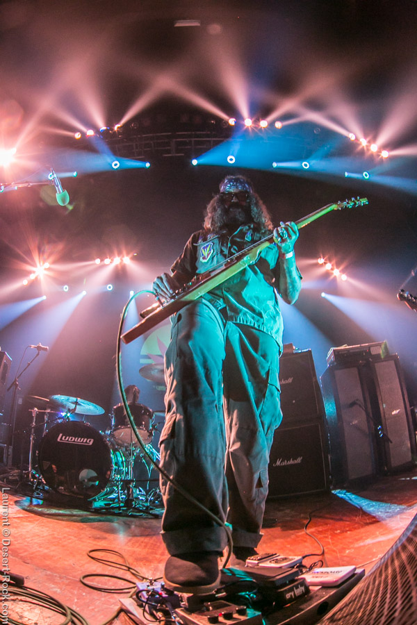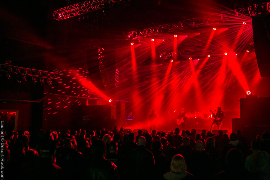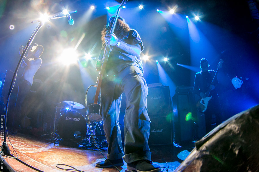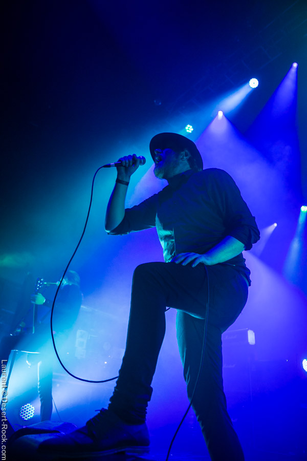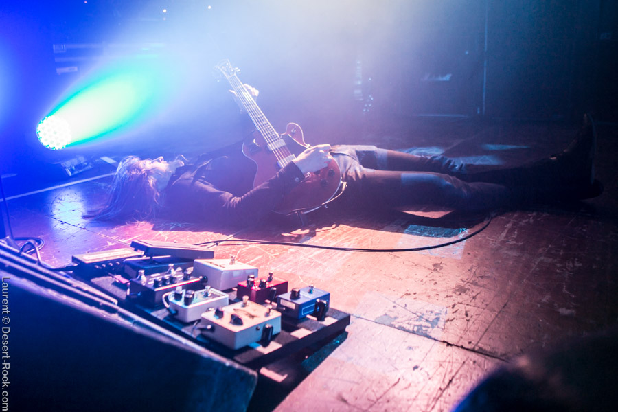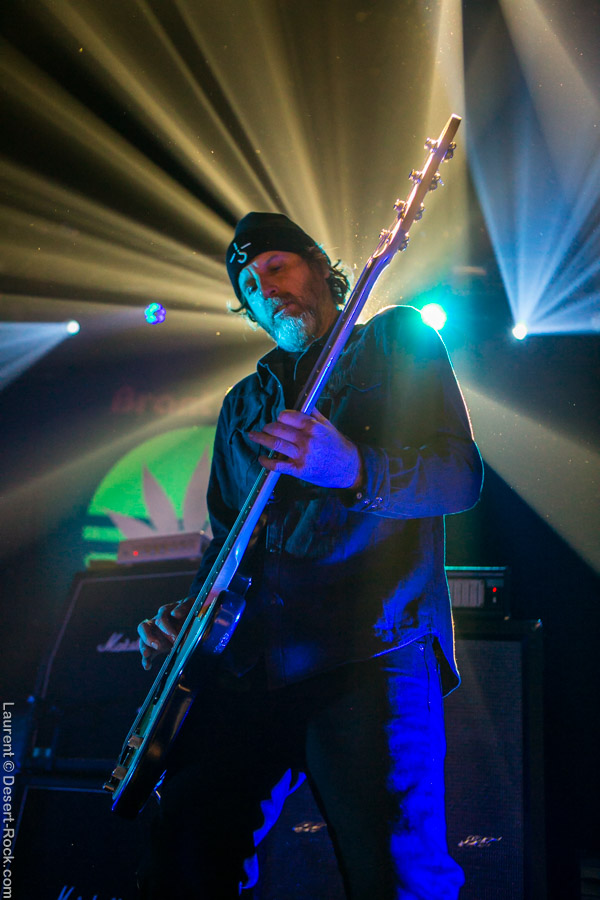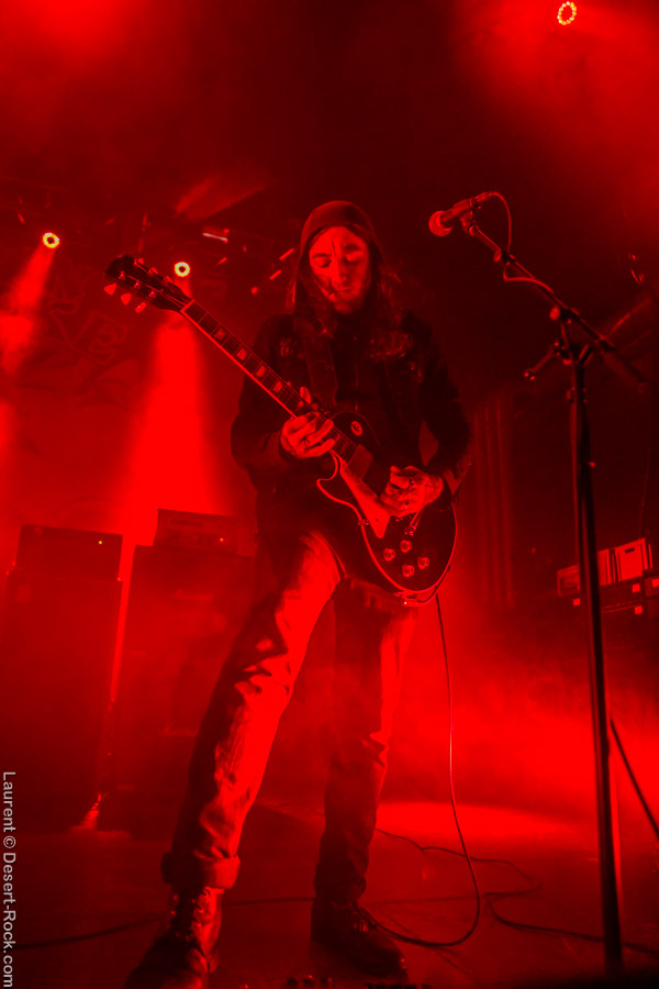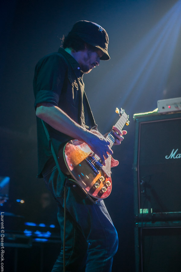 Après ce set du grand frisé du désert, une autre figure emblématique du genre se prépare à se lancer dans la bataille : le trio transalpin Ufomammut se prépare tandis que le public termine sa translation vers la seconde scène. Sans projection vidéo, le set se basera sur la musique du groupe uniquement, et c’est finalement tout ce qui compte. On a digéré pas mal de contrastes musicaux assez violents aujourd’hui en passant d’un groupe à l’autre, grâce à une affiche riche et variée ; mais le contraste entre le chantre du desert rock US et les doomeux européens va s’avérer dur à encaisser pour les cortex les plus fragiles. Car Ufomammut, encore une fois, n’est pas venu pour faire dans la dentelle. Ça commence très fort et la tension reste au point fort sur tout leur set. Baignant dans un light show rougeâtre plutôt apathique (mais rien d’inédit ici chez Ufomammut) les trois musiciens s’engagent sur un set qui défrisera une part de l’assistance par son audace : voilà que nos bonhommes commencent leur prestation en se lançant dans l’interprétation par le menu de leur dernière galette, sortie il y a quelques jours à peine ! Audacieux ! Sacrée confiance en soi et en la qualité de ce (remarquable, il est vrai) disque. En conséquence, le public est un peu pris à froid au début, mais les nuques se réchauffent très très vite, et dès le premier quart du set, le headbanging-yeux fermés-sourcils froncés-mâchoire serrée devient le sport le plus pratiqué entre le premier rang et la table de mixage. Et l’art d’Ufomammut prend toute son ampleur dans cette nouvelle performance, envoûtant un public rapidement consentant à l’aide de ses riffs-pachydermes poussés ad libitum tendance hypnose lancinante, enchaînés par des breaks en forme de virages bienveillants pour amener les spectateurs jusqu’à la fin d’un set encore une fois impeccable. Classieux, en contrôle, efficace, Ufomammut tient une forme depuis plusieurs mois qui impressionne.