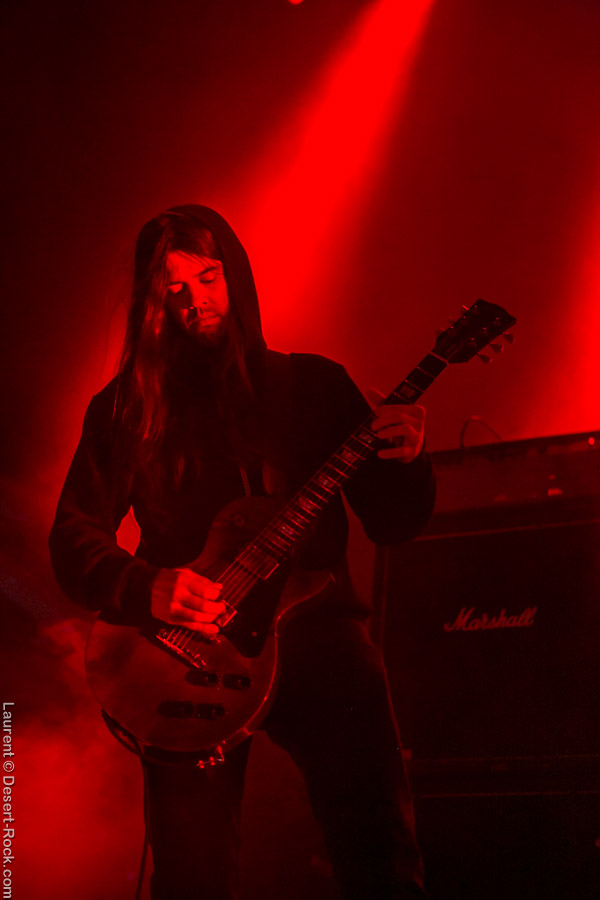 On change radicalement d’ambiance en se glissant (qui a eu la lumineuse idée de fermer un des battants de la halle pour optimiser les frottis frottas entre bipèdes lors des déplacements d’une scène à l’autre ?) dans le hangar où se situe comme à l’accoutumé la grande scène qui accueille les pointures les plus en vue du grand public. Peu loquaces et lovés de rouge, la formation doom de Portland (encore ?) nous assomme avec une prestation qui pulse terriblement. Les Ricains qui viennent à peine de sortir leur nouvelle salve de missiles Portals Into Futility ne s’embarrassent pas de décorums sophistiqués ; ils alignent les bûches en grognant sous leurs capuches avec des lights minimalistes. Leur performance procure aux Lourds de l’assistance des sensations fort agréables si l’on considère les sourires qui illuminent les faciès des bourrins amateurs de sensation doom. Les compositions alambiquées du quatuor résidents de Relapse (une boîte à qui on n’a jamais pu opposer grand-chose en ce qui concerne la qualité de ses sorties) qui passent par des plans ambients et hyper lents presque aériens avant de s’enfoncer dans le déluge sonore, ont participé à la montée en puissance de cette journée et ont même ramené le beau temps à l’extérieur. Bref on s’est pris une belle branlée alors que les moins prévenants rongeaient encore leurs freins sur les autoroutes suisses peu fluides en ce début de week-end : tant pis pour eux ; ils ne peuvent avoir que des regrets d’avoir loupé cette prestation déroulée avec maestria.