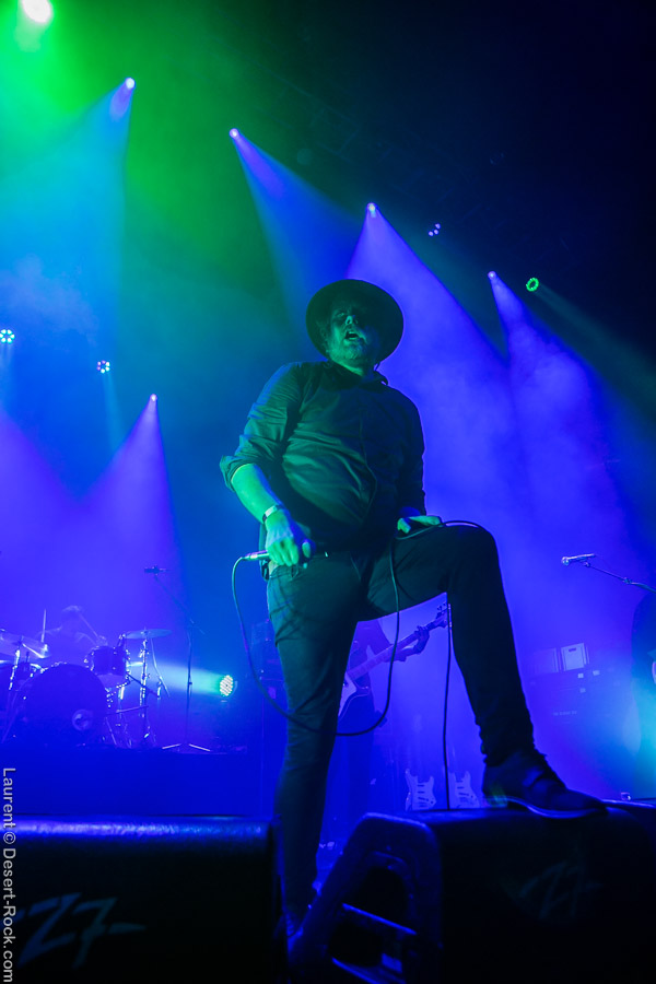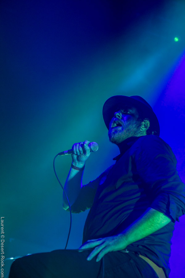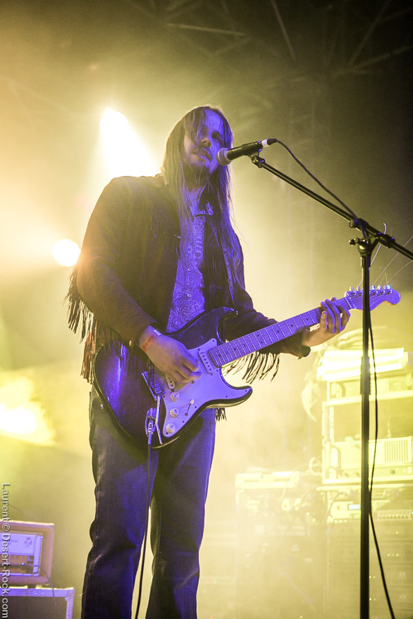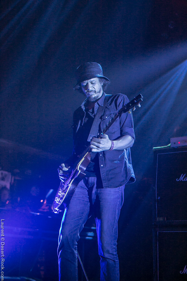 On devra, de fait, se frayer un chemin jusqu’à la petite scène dehors pour assister à la presta de la radio du Kremlin. La salle serait bien avisée l’année prochaine de profiter du double battant de la porte pour fluidifier les allers et venues du public, d’ailleurs. 1300 personnes dans un lieu aussi exigu et une demie-porte ouverte, c’est assez incompréhensible. Mais passons. Le trio est en place et commence à balancer sa sauce parfaitement connue maintenant. Et bigre, ça fonctionne toujours aussi bien. Du rock, de la dentelle de manche, de la note bendée à tire larigot, ça crunche et ça s’éraille les cordes vocales. On est dans le cuir et la frange et malgré une corde cassée dès le début du set et des p’tits soucis récurrents sur la Fender, le trio ne s’en laisse pas compter et le public le lui rend bien. Coup double pour l’esprit 70’s avec le set précédent donc. On arrivera même à s’abreuver de quelques effets psychédéliques peu présents cette année sur la programmation. Rassasiés, bien contents, on frôle le long stand de Wurtz, et on attend de passer la demie-porte pour assister au set suivant. Celui, bien attendu évidemment par une foule déjà bien présente de mister cool lui-même.