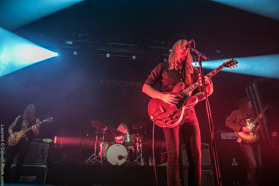 Les voici donc enfin devant nous. Les inventeurs du fast-split. Les bougres avaient sacrément à se faire pardonner l’année précédente et les annulations des différents festivals suite à leur split (qui aura duré, rappelons-le, 3 ou 4 mois, LOL donc). Mais c’est Graveyard que nous avons devant nous quoi ! Leurs albums étant de vraies perles, nous n’allions pas bouder notre plaisir de les voir, enfin, les chantres d’un rock racé, à l’écriture d’orfèvre et à l’exécution au cordeau. Alors ? Quid de la prestation de la tête d’affiche de ce premier jour ?