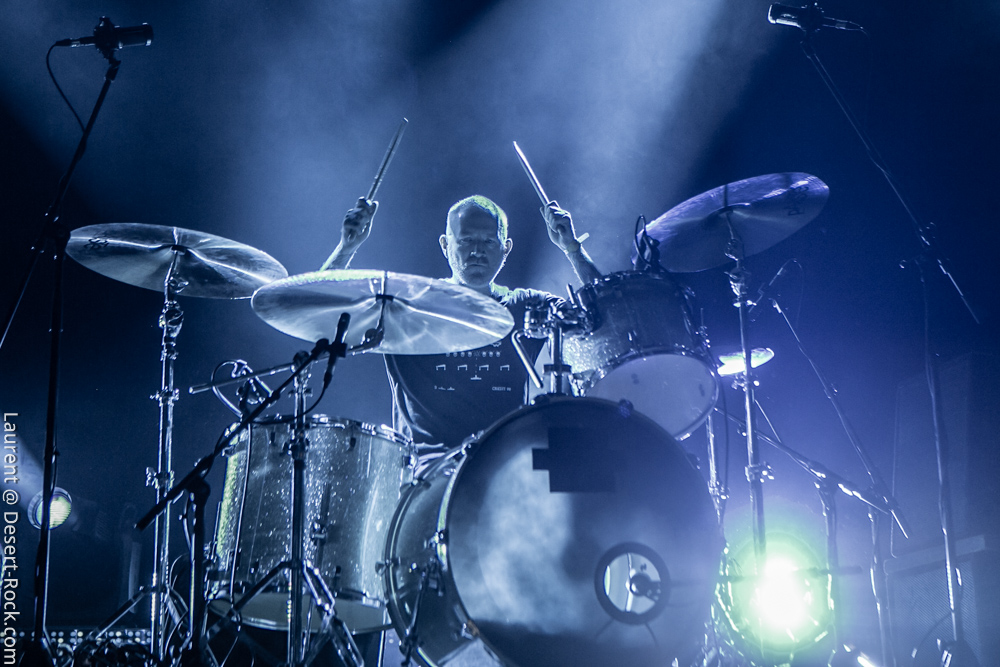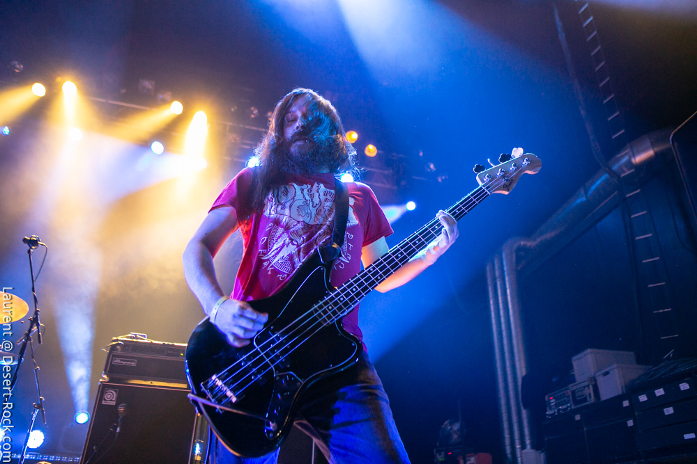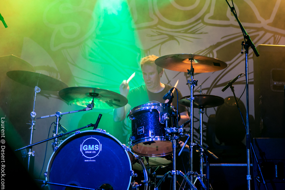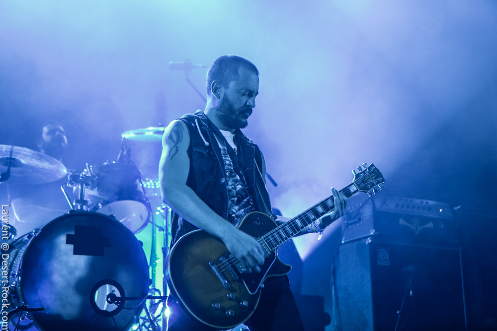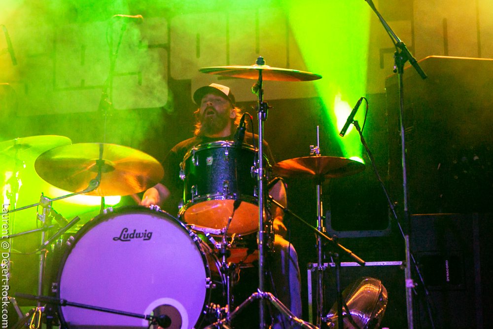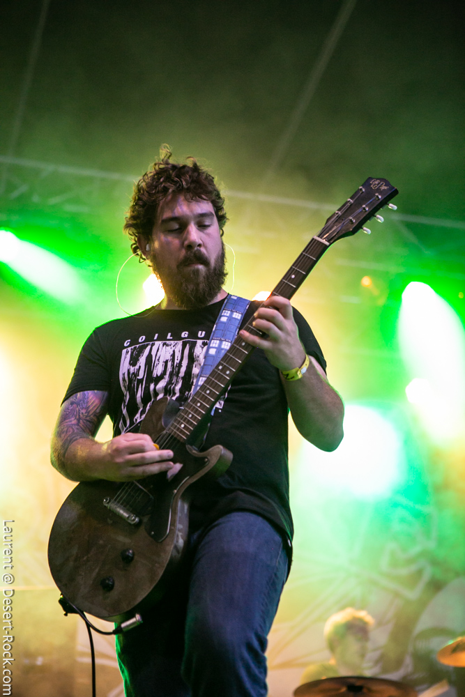Alors que les rayons de l’astre solaire baignaient encore la banlieue bâloise, la formation suisse ouvrait brillamment les hostilités peu après l’ouverture des portes. Ils ont d’entrée de jeu positionné la manifestation à un niveau élevé, ont profité de l’occasion pour capter de nouveaux fans et ont foutu une bonne branlée à un public fort nombreux à l’heure de l’apéro. Le groupe de Genève représentait le volet local de la programmation même si son lac est à plusieurs centaines de bornes de la zone industrielle de Pratteln. Nous avions déjà eu le plaisir de voir le batteur du trio en ces lieux lors d’une édition précédente avec l’incroyable groupe Intercostal (qui s’est malheureusement terminé tragiquement). Ce véritable métronome, flanqué de ses acolytes à la basse ainsi qu’à la guitare, a envoyé du bois durant 40 minutes intenses qui virent la foule se presser devant la nouvelle structure extérieure du festival (et délaisser les bars d’ordinaire fort courus à ces heures voire même tout du long de l’événement). Au passage, nous notons avec satisfaction que la plus petite des deux scènes a été brillamment réorientée et rehaussée afin de pouvoir permettre à une audience plus nombreuse d’assister confortablement aux shows (le seul bémol sera la hauteur de la scène pour certains photographes de petite taille). Pour en revenir à Six Months Of Sun : ces garçons actifs dans un registre instrumental pas si éloigné que ça des Karma To Burn des temps jadis ont aligné leurs titres avec vigueur. Quelques samples de dialogues du cinéma pour épicuriens (mention spéciale aux chips), leur ont permis de reprendre leur souffle entre chacun des morceaux. Nous avons pris un putain de plaisir d’entrée de festival et vous incitons fortement à aller poser vos oreilles sur les deux LP commis par ces helvètes (dont le fantastique « Below The Eternal Sky » sorti l’an dernier).