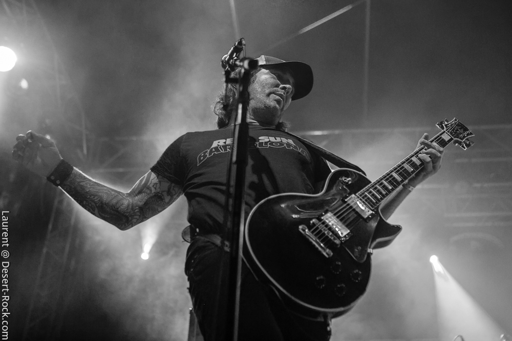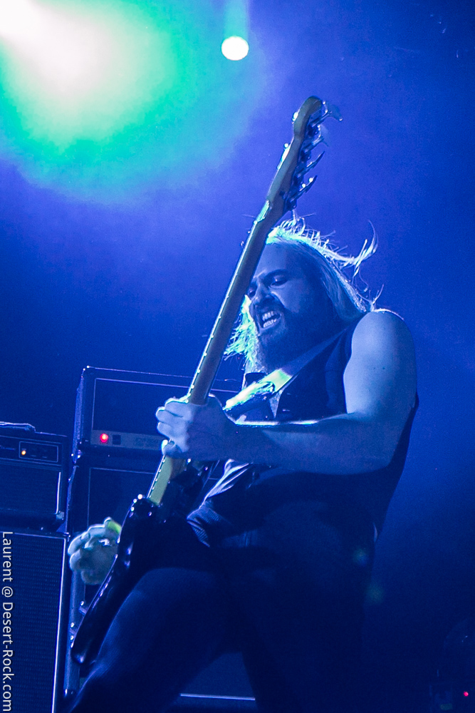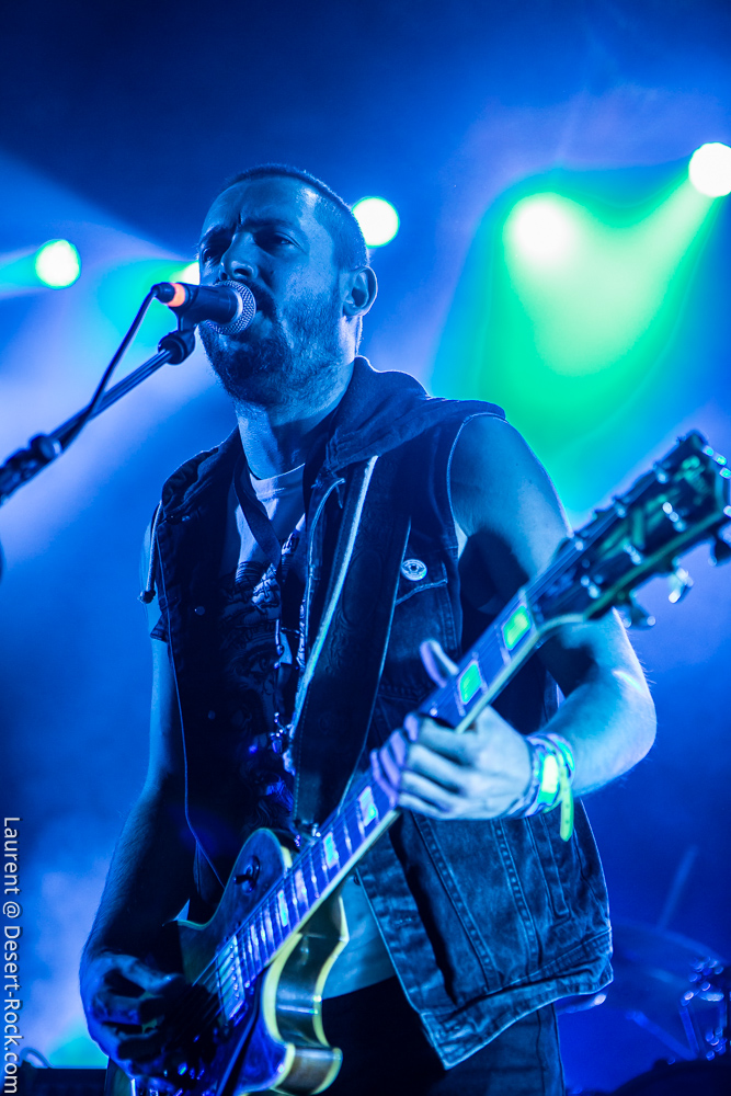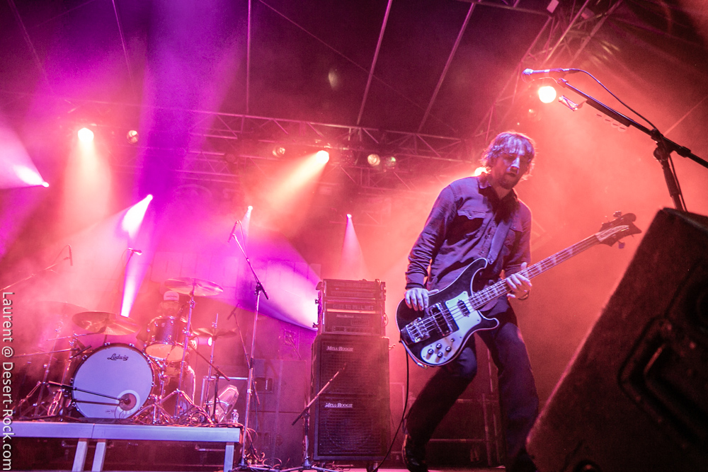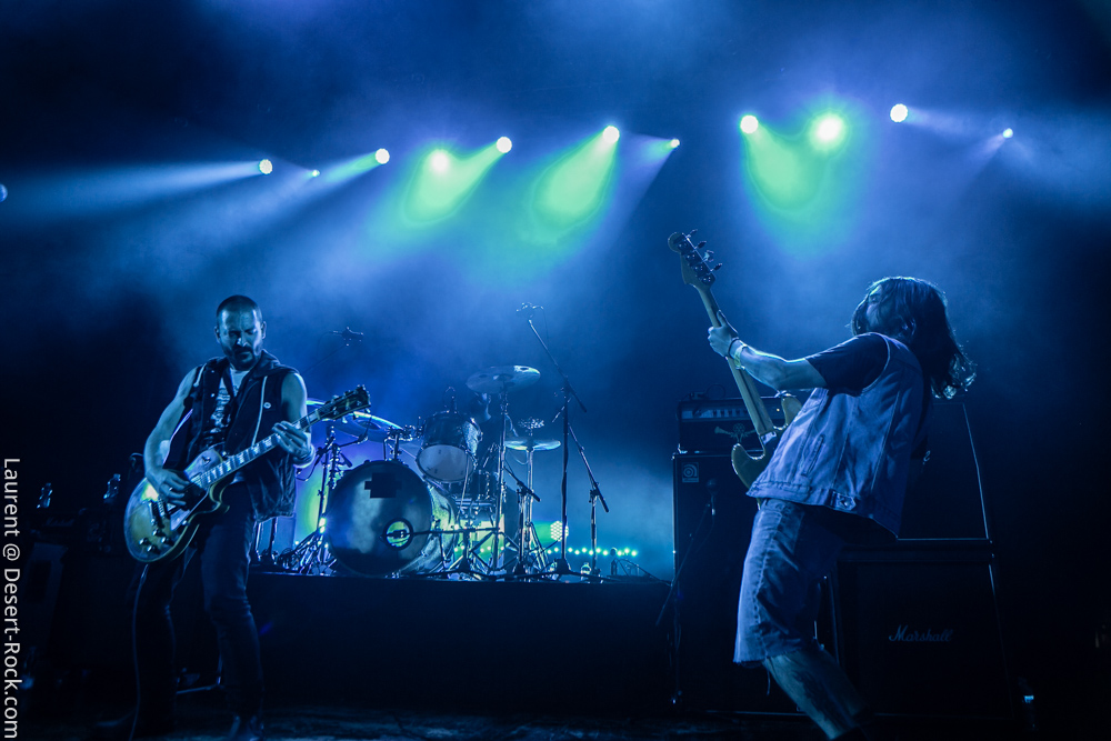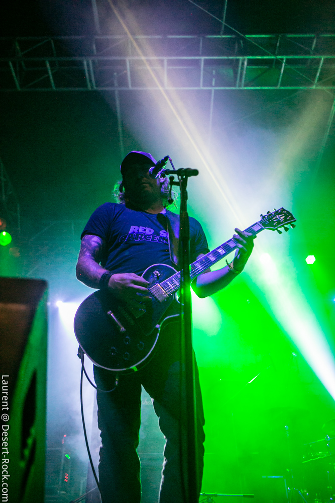 Ca faisait longtemps que l’on n’avait pas eu l’opportunité de voir ce vétéran du stoner US fouler les planches, on ne s’est donc pas fait prier pour gagner le premier rang de la seconde scène dès les derniers accords de VIC terminés. Agréable constat : on n’est pas les seuls dans ce cas, la notoriété du groupe étant supérieure à ce que l’on imaginait, et donc leur place si haut sur l’affiche largement légitimée. Restait à transformer l’essai sur scène ; ce fut fait… et avec la manière s’il vous plaît ! Très très vite, le public entre dans le jeu et le pit est tout simplement en feu pendant l’heure de set du trio américain. En commençant par l’excellent « More than you’ll ever be » issu de leur dernière galette, ils donnent une tonalité heavy à la soirée, confirmée par l’enchaînement avec le terrible « The Message » (seul extrait du pourtant excellent IV), un brise-nuques particulièrement dévastateur dans un public où se mèlent volutes enfumées, vapeurs houblonnées et plus généralement bonne humeur et envie de s’amuser. En piochant très largement (trop, selon les puristes) dans son dernier très bon album, Maneuvers, nos lascars enchaîneront des mid-tempo propices au headbang comme ils en ont le secret (« Just couldn’t stand the weather », le classique « Cracks in the pavement ») à des brulots nerveux (« Rational Woman », le vieux « Chemical Lady »…) qui finiront de rassasier un public ravi (le groupe débordera même de 10 minutes sur son horaire de faim – il nous en reste un peu, on vous le met ?!). le tout est emballé scéniquement par un Keith Gibbs charismatique mais sans exhubérance, et un Casanova à la basse lui aussi impeccable vecteur d’énergie. Une véritable machine de guerre ! On est ravis de voir le groupe (que d’aucuns pensaient usé par le temps) dans cet état de forme, capable de générer ce qui fut probablement le pit le plus déchaîné des deux jours de festival. Quel pied !