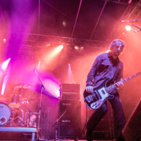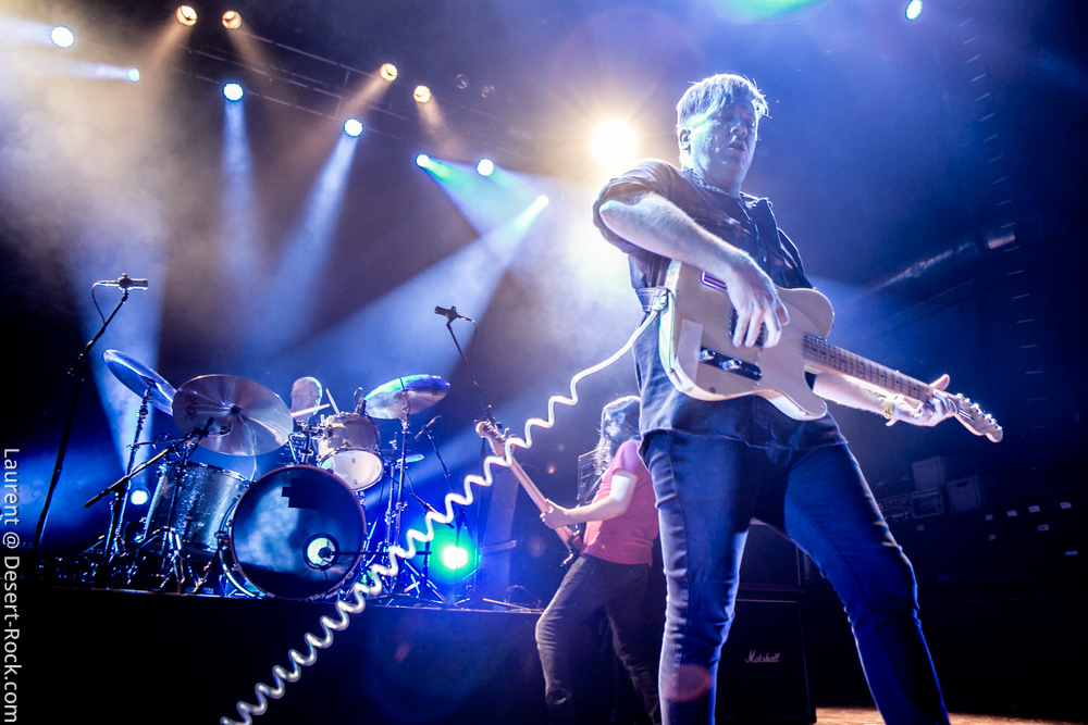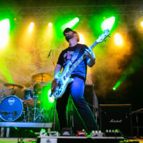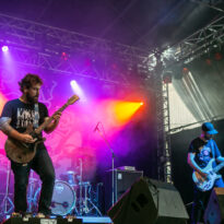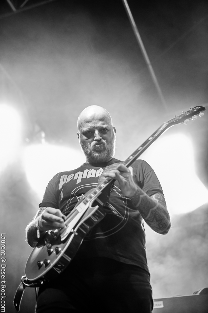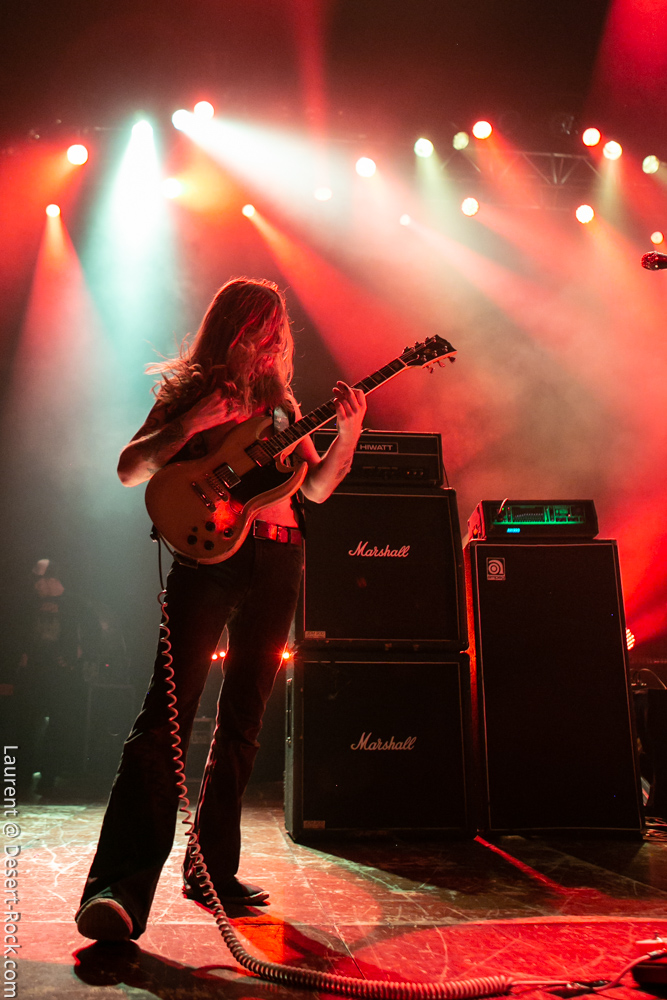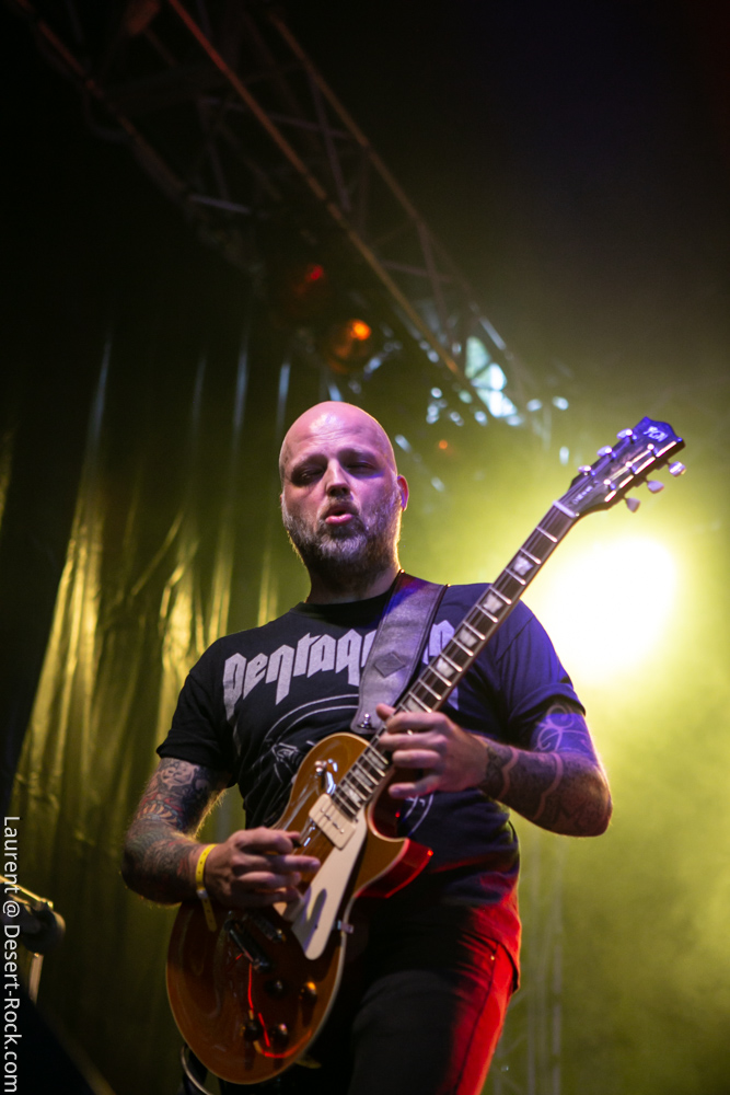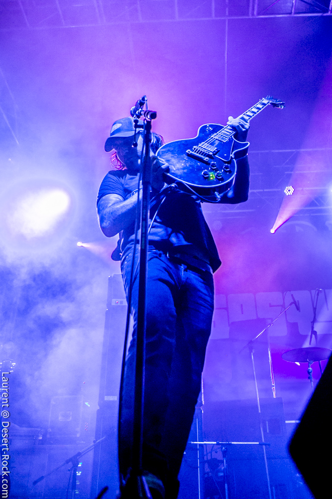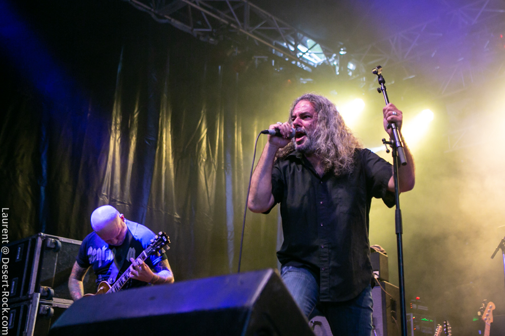 Ca faisait longtemps que l’on n’avait pas eu l’opportunité de voir ce vétéran du stoner US fouler les planches, on ne s’est donc pas fait prier pour gagner le premier rang de la seconde scène dès les derniers accords de VIC terminés. Agréable constat : on n’est pas les seuls dans ce cas, la notoriété du groupe étant supérieure à ce que l’on imaginait, et donc leur place si haut sur l’affiche largement légitimée. Restait à transformer l’essai sur scène ; ce fut fait… et avec la manière s’il vous plaît ! Très très vite, le public entre dans le jeu et le pit est tout simplement en feu pendant l’heure de set du trio américain. En commençant par l’excellent « More than you’ll ever be » issu de leur dernière galette, ils donnent une tonalité heavy à la soirée, confirmée par l’enchaînement avec le terrible « The Message » (seul extrait du pourtant excellent IV), un brise-nuques particulièrement dévastateur dans un public où se mèlent volutes enfumées, vapeurs houblonnées et plus généralement bonne humeur et envie de s’amuser. En piochant très largement (trop, selon les puristes) dans son dernier très bon album, Maneuvers, nos lascars enchaîneront des mid-tempo propices au headbang comme ils en ont le secret (« Just couldn’t stand the weather », le classique « Cracks in the pavement ») à des brulots nerveux (« Rational Woman », le vieux « Chemical Lady »…) qui finiront de rassasier un public ravi (le groupe débordera même de 10 minutes sur son horaire de faim – il nous en reste un peu, on vous le met ?!). le tout est emballé scéniquement par un Keith Gibbs charismatique mais sans exhubérance, et un Casanova à la basse lui aussi impeccable vecteur d’énergie. Une véritable machine de guerre ! On est ravis de voir le groupe (que d’aucuns pensaient usé par le temps) dans cet état de forme, capable de générer ce qui fut probablement le pit le plus déchaîné des deux jours de festival. Quel pied !