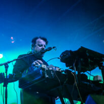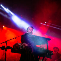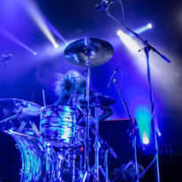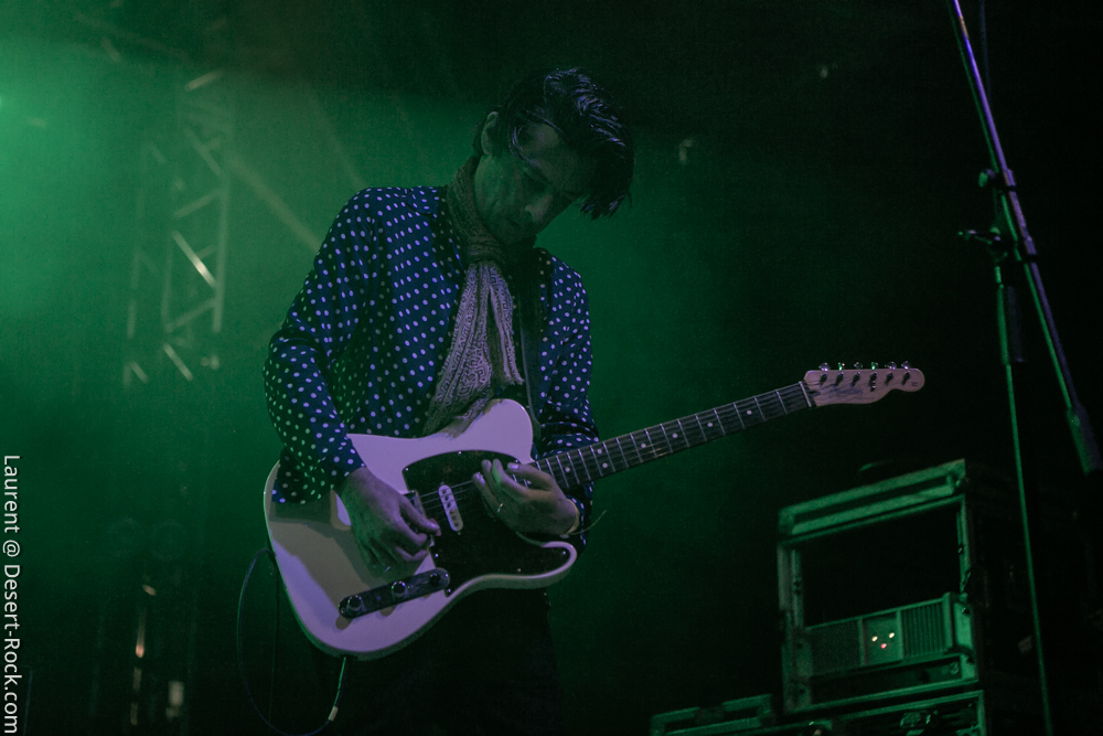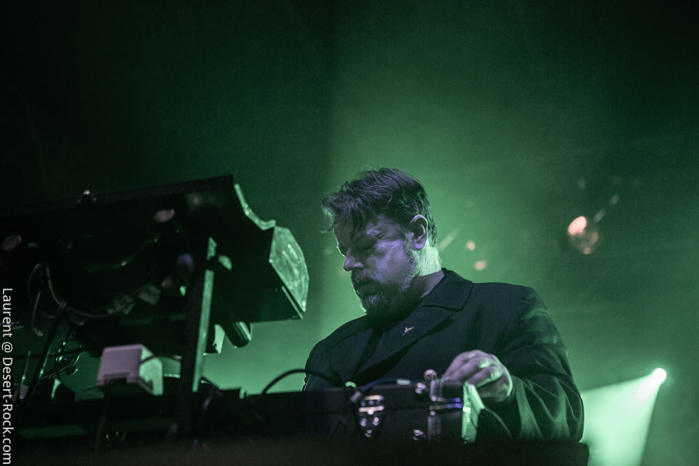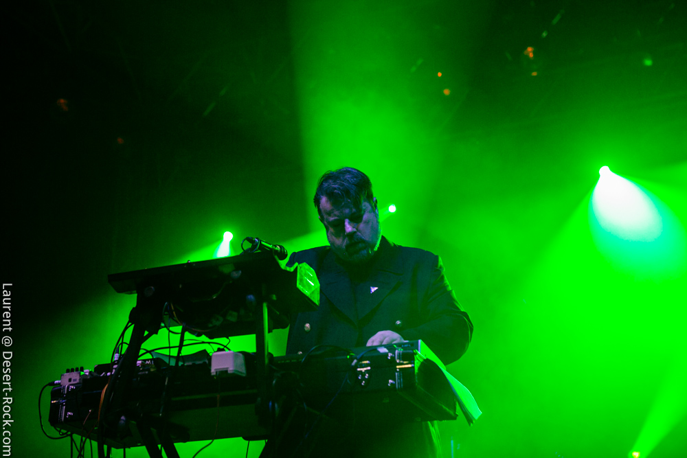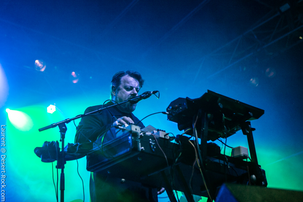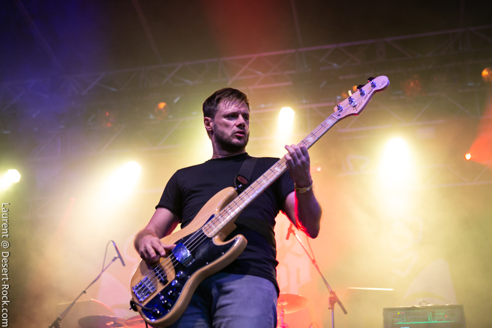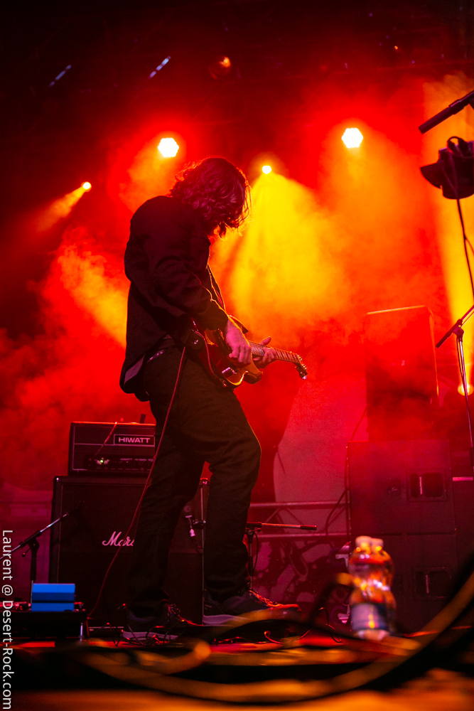 La nuit est jeune désormais tandis que l’on ressort de la salle pour assister au set de Farflung, pile sous la voie lactée (bon, OK, sous la tente on voit assez peu les étoiles). La troupe de Tommy Grenas prend la scène dans une pénombre veloutée propice à l’immersion et le claviériste (et vocaliste occasionnel) lance ses premières boucles devant un public nombreux et attentif. Les premières minutes passent sans émotion particulière, mais assez vite – et c’est sans doute dû au talent et à l’expérience des américains – la sauce prend, et le space rock du quintette s’installe pour trois gros quarts d’heure qui ne présenteront pas un seul point faible. Sorte de Hawkwind plus dense et plus concentré, les californiens s’appuient exclusivement sur leur interprétation et un light show lent et hypnotique pour plonger le public en immersion (et heureusement, car ce n’est pas le dynamisme des musiciens qui apporte quoi que ce soit au set…). Les titres s’enchaînent sans quasiment aucune communication avec le public, mais on ne le déplore pas, tant il serait malheureux de rompre l’ambiance. Et on peut penser que les musiciens sont aussi bien dans le trip que le public, puisqu’ils débordent de l’horaire prévu de 10 bonnes minutes (sans aucun impact sur la suite, bravo l’orga). Farflung confirme son statut d’un des meilleurs groupes de space rock du moment.
