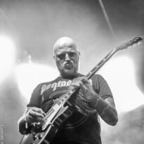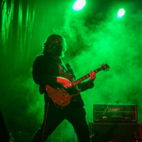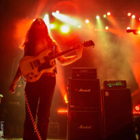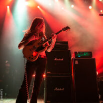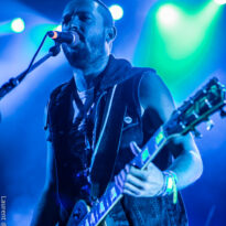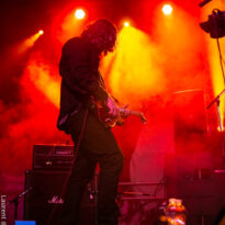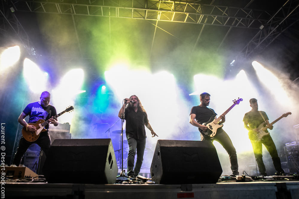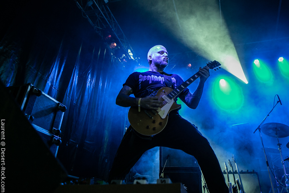 Après la première mandale du week-end, place à une multinationale mi-suisse mi-allemande qui prend place sur la Side Stage le temps d’un petit changement de scène bienvenu pour aller se rassasier, s’abreuver ou magasiner au stand de merch du fest (sur lequel on trouvera durant les deux jours le matos des groupes au fil de leurs arrivées respectives en ces lieux). Actif dans un registre heavy rock ou glam un peu daté (ça dépend des références), Giant Sleep a assimilé ce que les porteurs de permanentes pratiquaient il y a une trentaine d’année et le recrache à sa sauce. Ce n’est pas franchement la révolution, mais ça fonctionne sur le public branché par le rock, voire le stoner, très traditionnel (les autres profitent d’aller s’hydrater parce qu’on ne badine pas par ces chaleurs automnales). Le vocaliste de la bande a un peu réveillé un public ondulant lorsqu’il a interagi avec lui en l’encourageant à répéter « Hey » (ça marche toujours dans ces contrées) ou quand il a changé de registre pour grogner efficacement dans son micro. Très efficace, à l’image de son guitariste chauve – arborant fièrement son t-shirt de Pentagram – et se distinguant dans le rayon soli, le groupe binational a assuré le job même si les amateurs de sensations plus épicées ont été contraints de ronger leur frein jusqu’à la performance suivante.