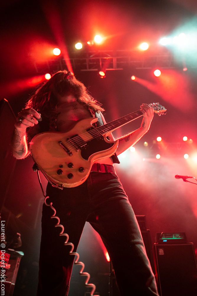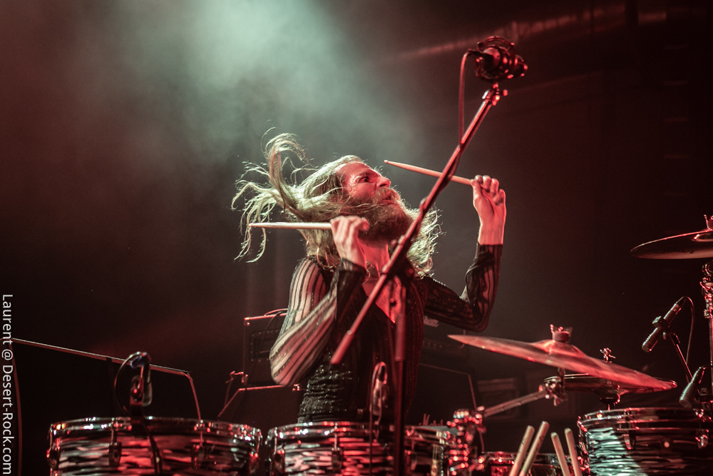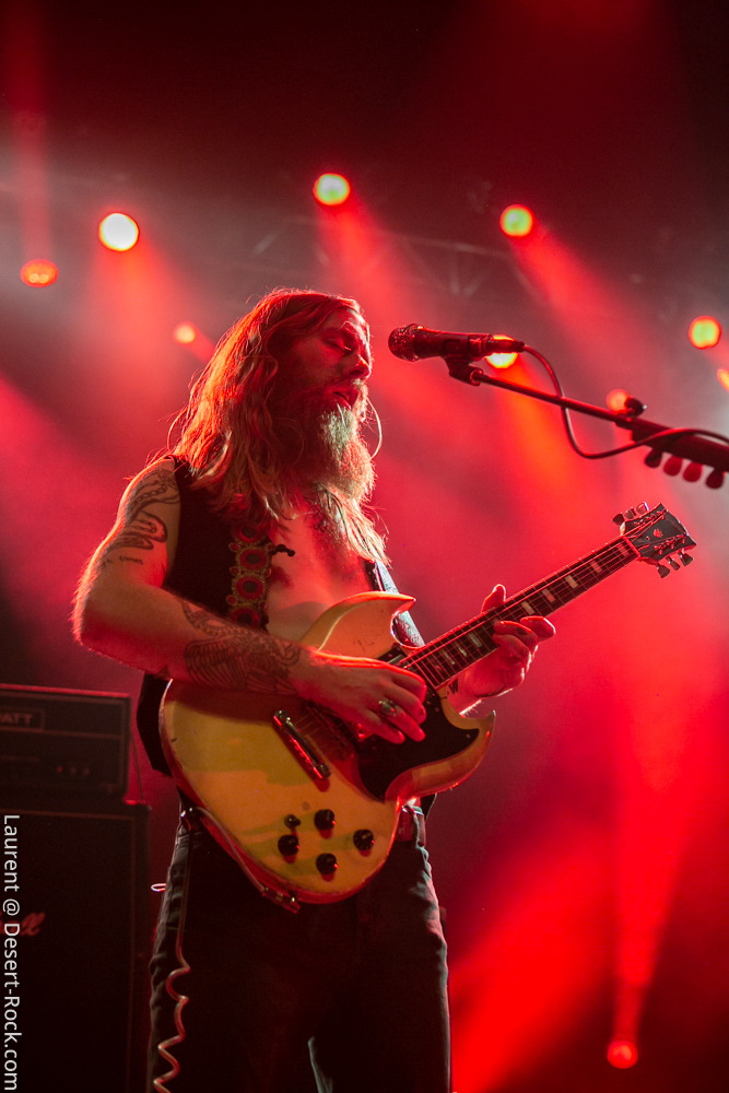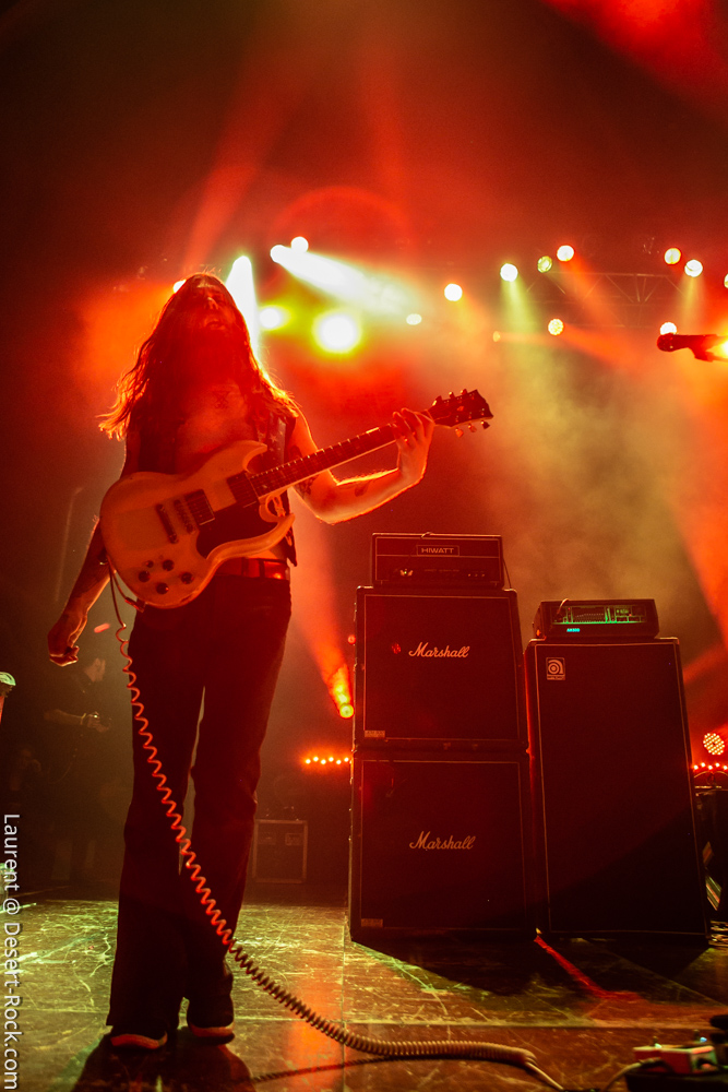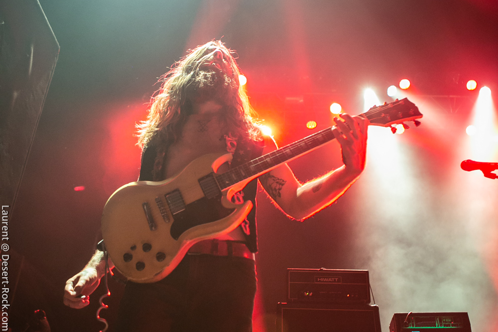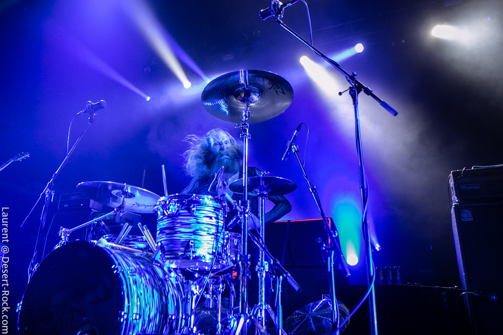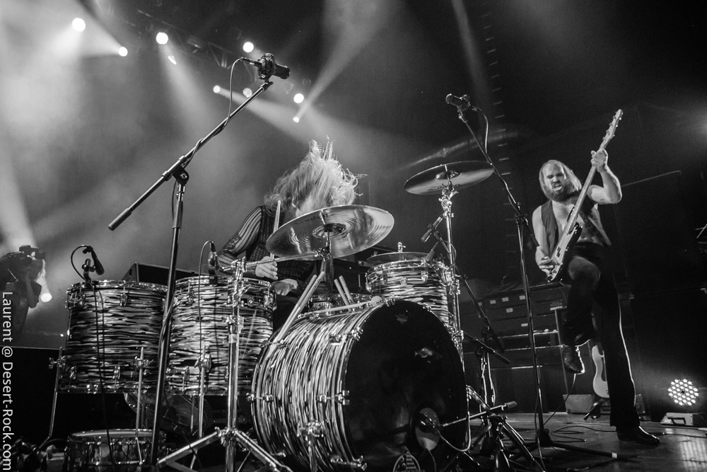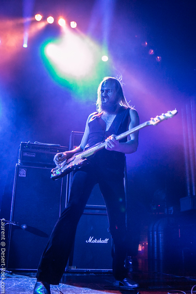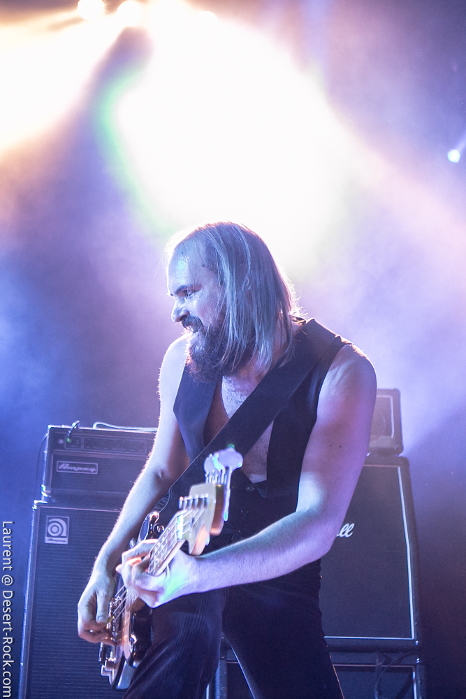 John Garcia était initialement prévu pour cette fiesta baloise et sa présence avait été teasée par l’orga il ya quelques mois. La légende californienne (ou le crooner en vogue qui n’a rien sorti de potable depuis un bail, c’est selon vos affinités) ayant annulé sa tournée n’était finalement pas de la partie, et les promoteurs de la manifestation n’étant pas des gens ingrats, ils se sont tournés vers le trio allemand pour assurer (et assumer facile les doigts dans le pif) le rôle de headliner du premier jour. La bande berlinoise s’est pointée sur scène en terres conquises, a devisé en allemand avec le public et surtout a foutu un énorme boulet dans le Z7 ! Même si nous les avions déjà vus cette année et même si Kadavar en live c’est un peu l’expérience que tout le monde a déjà vécue, c’est avec un sacré plaisir que nous avons pointé nos miches devant la scène pour assister cette performance. La disposition des Allemands sur la scène a à nouveau contribué à notre bonheur : batteur centré en bords de scène officiant comme pièce centrale de l’orchestre, gratteur-chanteur côté jardin protégé par ses retours et bassiste francophone qui investit le côté cour avec vigueur en y baladant son impressionnante stature (le niveau est haut dans tous les sens du terme).