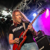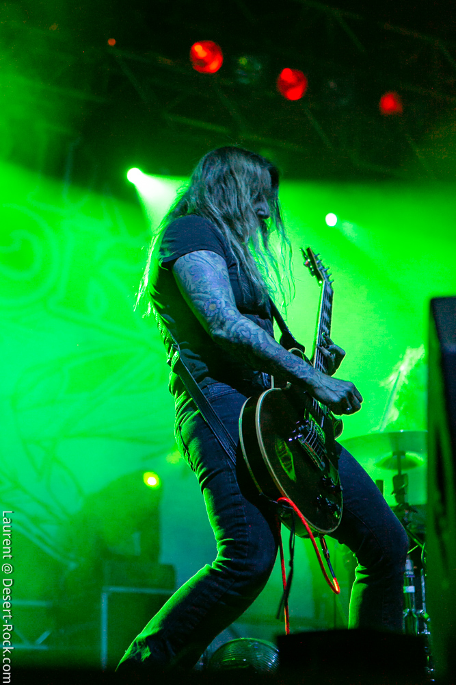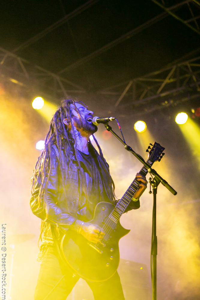 Après la débauche de sauvagerie livrée par Dopethrone devant un pit des plus animés, retour indoor pour l’avant-dernier acte à s’y produire : Witchcraft est dans la place et on est au taquet. Il faut dire qu’on avait loupé les Suédois en 2013 à Berlin en raison d’une défection de dernière minute (on s’était consolé avec des remplaçants de grande classe : Troubled Horse vus l’an dernier ici-même, et ça avait été mortel) et que nous apprécions pas mal le boulot du groupe d’Örebro qui a prouvé avec Nucleus, sorti il y a deux ans, que nous devions encore compter sur eux (pour ne rien vous cacher nous les pensions morts) ! Les 5 vikings ont ratissé dans leur répertoire de toute beauté pour nous enchanter avec leur stoner qui se décline alternativement de manière apaisée et de manière plus énergique (on ne va pas se mentir ça paraissait quand-même un poil calme entre les deux formations qui les encadraient sur la Side Stage). Ces gars assurent encore et toujours lorsqu’ils déclinent leurs morceaux sur scène et franchement ils nous en ont foutu plein la gueule tant leur prestation était techniquement maîtrisée. On notera aussi que Pelander n’occupe plus uniquement le rôle de vocaliste inspiré et talentueux qu’il est, mais aussi celui de troisième guitariste désormais (ses déplacements sont donc un peu plus limités qu’à l’époque où il se baladait partout sur la scène). L’accent a été mis sur la masterpiece Legend avec cinq titres dont le majestueux « It’s Not Because Of You » qui n’a pas pris une seule ride, l’intense « Dead End » et surtout l’entrée sur scène sur « Deconstruction » qui est une perle dans le genre bien traditionnel et soutenu. Une performance de haut vol pour un combo qui ne cesse de progresser sans altérer une formule qui nous est si chère !