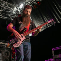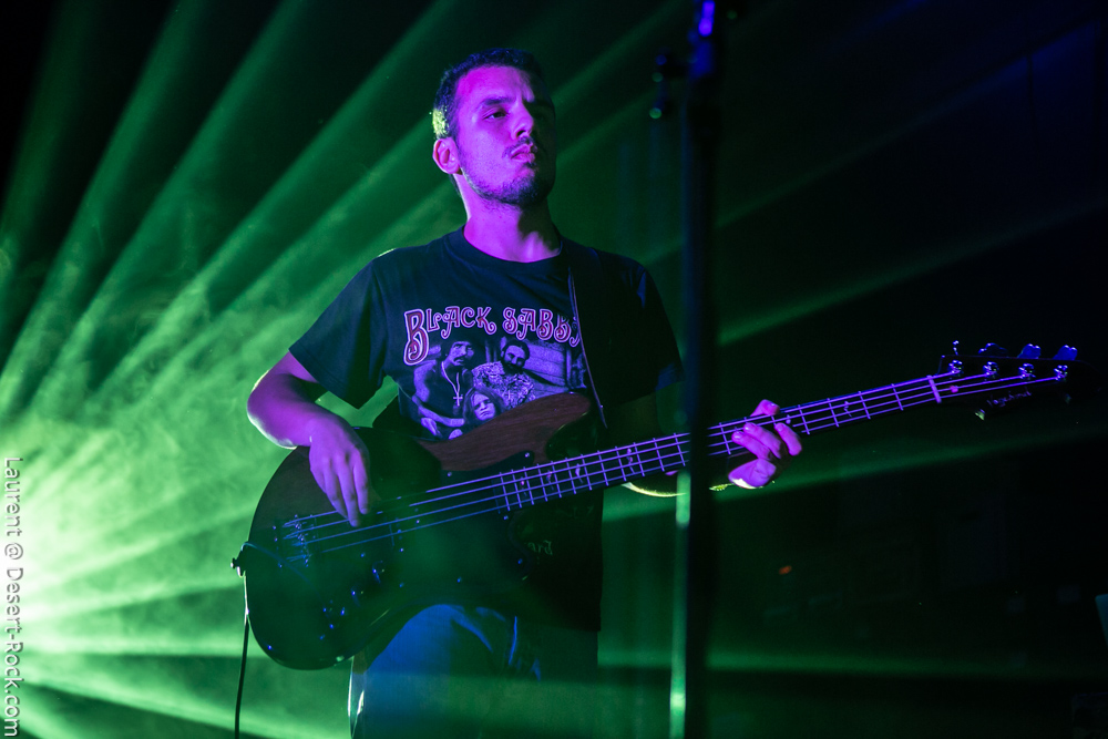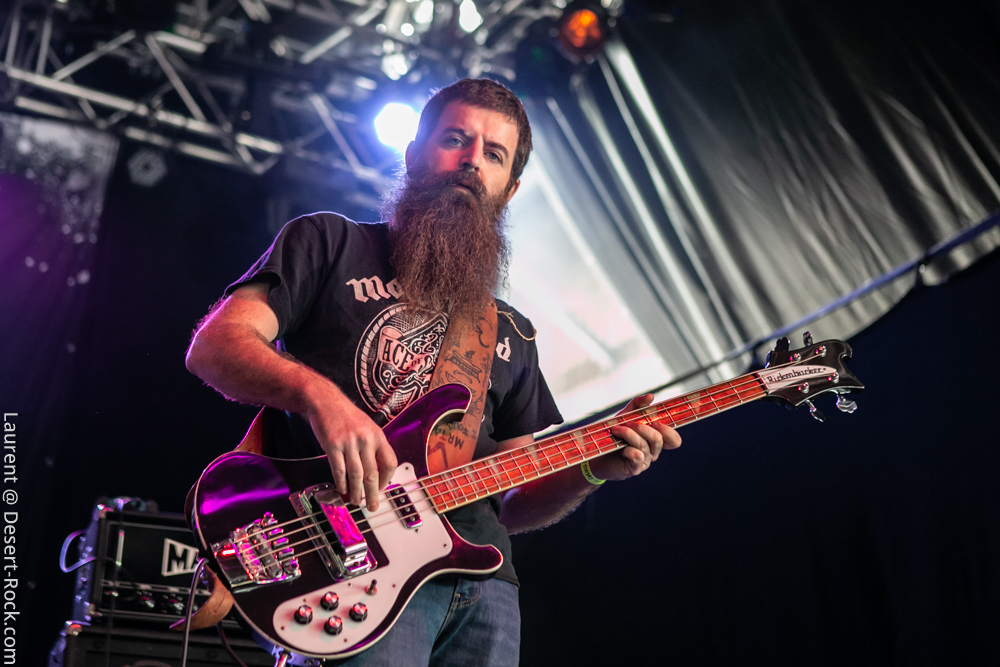 A midi pile on y est accueillis par les riffs bien lourds de Humulus : le trio transalpin n’est pas connu pour sa finesse, auréolé d’une réputation de gros bourrins fans de bière avant tout (les « Tankard du stoner » entend-on ici ou là…). Même si on n’est pas non plus au complet opposé de cette image d’Epinal (la passion du groupe pour le nectar houblonné est quand même TRES présente, à l’image de ces bouteilles à l’effigie du groupe qui traînent à leurs pieds – on n’est jamais si bien servis que par soi-même ! – qui une fois vidées sont même recyclées en bottlenecks improvisés) on découvre sur scène un trio plus riche en nuances. La musique du groupe se caractérise surtout par son efficacité, servie par une interprétation sans faille, solide. Certes, quelques passages sont moins performants (notamment sur des sections instru mid-tempo un peu moins prenantes et moins originales aussi) mais globalement on déguste cette introduction avec un plaisir non feint, et le stoner costaud des italiens nous donne la banane. On notera d’ailleurs que le public dès l’ouverture quasi matinale du festival est déjà dense. On est habitués en festival parfois à entamer la journée avec des groupes de qualité moindre, ce ne fut le cas ni hier ni aujourd’hui sur le festival, la barre étant haute dès le début !