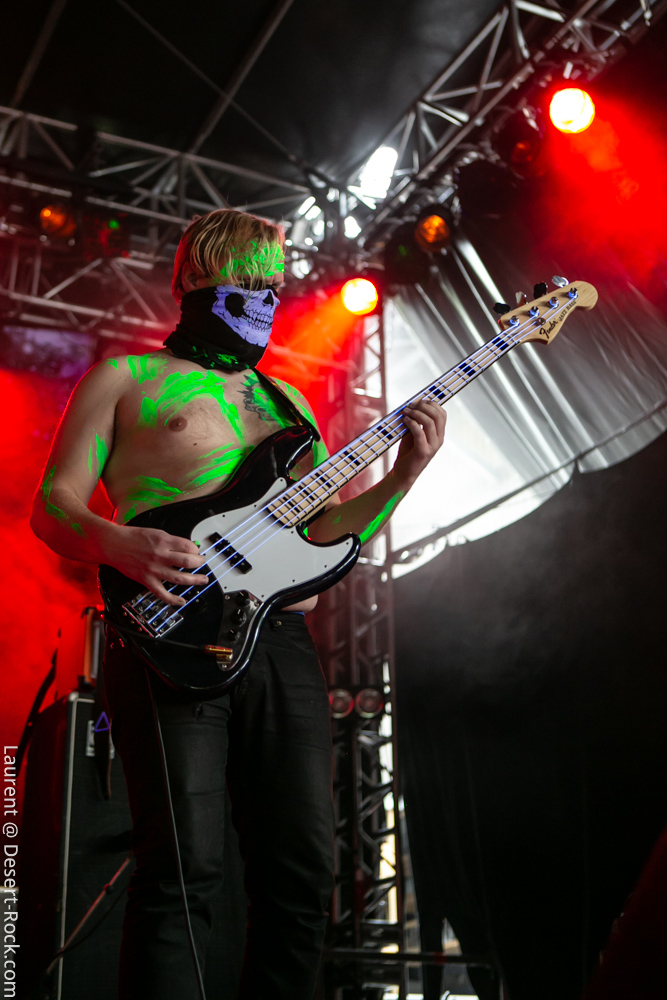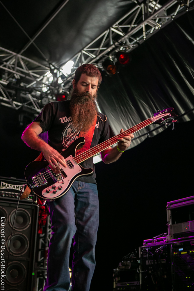 Inconnu de nos services, TNDC (comme on dit dans les milieux qui s’y autorisent) avait pas mal piqué notre curiosité en raison des grimages en cours sur ses membres durant les instants qui précédèrent leur set, voire aussi depuis que nous avions découvert leurs tronches à l’annonce de leur participation à la fête. Nous avons donc quitté l’univers planant régnant sans partage durant le show d’Ancestors pour nous faire télescoper par quatre rockers à la tenue de scène nous rappelant fortement Punish Yourself (vous voyez le genre de référence qu’on utilise sur un site dédié au stoner…). Les jeunes d’Oslo misent sur le visuel et franchement il n’y a pas à tortiller du cul : ça fonctionne régulièrement auprès d’un public rock peu sectaire, mais sur ce coup-ci leur répertoire entre Muse (nous vous laissons constater que nos références ratissent mainstream) et My Chemical Romance (nous allons cesser ici de citer des références qui pourraient discréditer une partie de notre rédaction et générer une lapidation en règle lors d’un prochain festival) n’a clairement pas provoqué de grosses turgescences sous la ceinture des spectateurs. Alpha, Beta, Gamma et Delta quittèrent l’estrade en avance et dans une indifférence certaine sans même que le moindre zozo aviné ne réclame un rappel. Dur ! Dur car c’est plus une erreur de casting qu’une mauvaise prestation qui a provoqué ce rejet massif du répertoire nerveux d’un quatuor fort dynamique sur scène. Ils n’avaient pas leur place ici, mais l’ont certainement auprès d’autres tribus de la grande famille du rock, et nous leur souhaitons vraiment le meilleur pour la suite auprès d’un public plus en lien avec leur style.