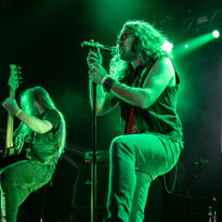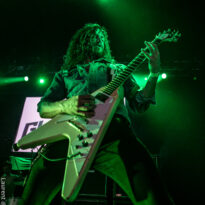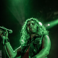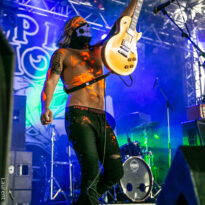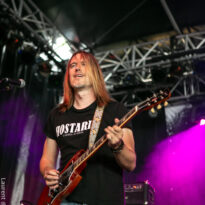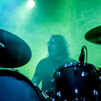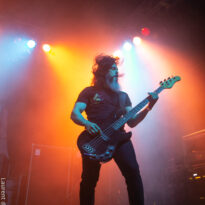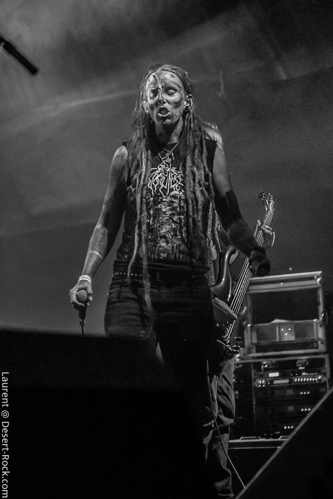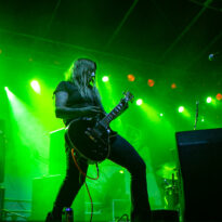 Celles et ceux d’entre nous qui ont assisté à la prestation du trio québécois au dernier Hellfest sont restés sur un sentiment… d’inachevé, dirons-nous. Notre attente est donc double à l’entame de ce set des slutcheux (!!) de Dopethrone : d’une part prendre enfin la torgnole tant espérée en juin dernier, et d’autre part évaluer aussi la part de progrès dans la carrière du groupe, que malheureusement vos serviteurs n’avaient pas vus sur les planches depuis trop longtemps. Avouons-le tout-de-go : sur les deux objectifs, les résultats auront dépassé nos espérances. Armés d’un son redoutable, délicieusement gras et profondément lourd (pour l’anecdote, les déflagrations déclencheront même l’alarme du tour bus du groupe, garé derrière la scène…), les cartouches disséminées sans lever le pied par les canadiens font des dégâts considérables sur un public plus que consentant. Il faut dire que la set list est habile et audacieuse en même temps, proposant une poignée de beaux glaviots issus de leur récent Transcanadian Anger (mention spéciale au salement groovy « Tweak Jabber »), mais faisant quasiment l’impasse sur le pourtant puissant Hochelaga (seulement « Scum Fuck Blues », quand même) pour plutôt mettre l’emphase sur le plus ancien mais néanmoins brutal Dark Foil, avec des brulots comme « Tap Runner ». Petite cerise sur le gâteau glaireux, leur copine Julie monte sur scène pour partager les vocaux avec Vince comme elle le fait sur albums pour « Zombie Powder » et « Miserabilist », sauf qu’elle reste finalement une bonne part du set. L’idée est audacieuse (le groupe passe donc une large part de son set en format quatuor) mais réussie, le brin de voie délicieusement dégueulasse de Julie se mariant à la perfection au timbre subtilement déchiré de Vincent, pour des contrepoints du meilleur mauvais goût. La fosse, subtilement haranguée par Vincent pour qu’ils se jettent les uns sur les autres, ne se fait pas prier, et le mosh pit ne faiblit pas pendant presque une heure, duquel jaillissent slammers et stage divers occasionnels (chassés de scène à coups de pieds au cul). Un groupe au top de sa forme, un public ravi de se lâcher, ce set fut une totale réussite.