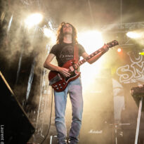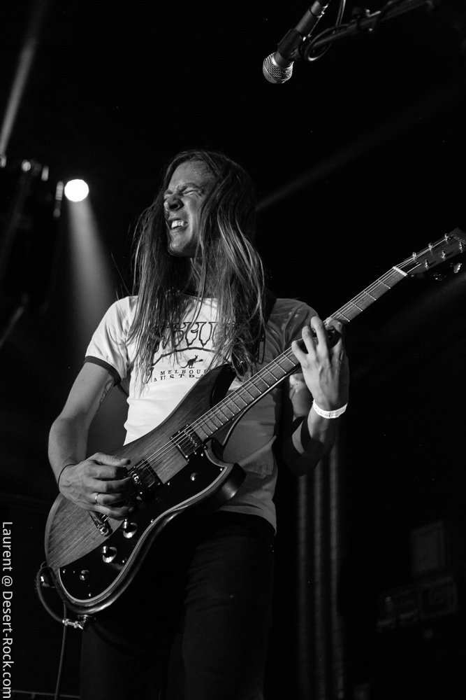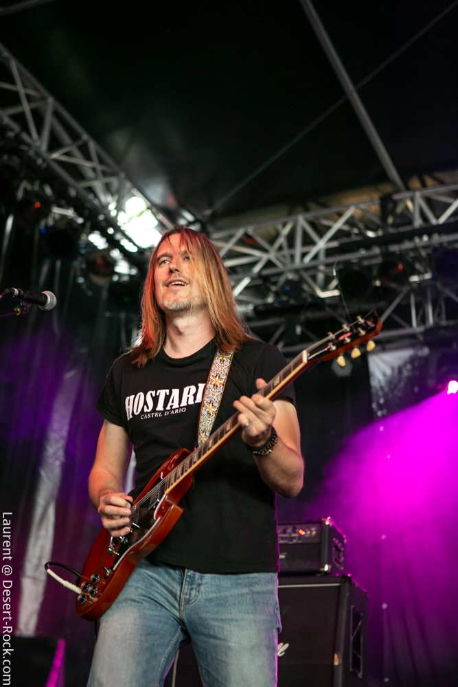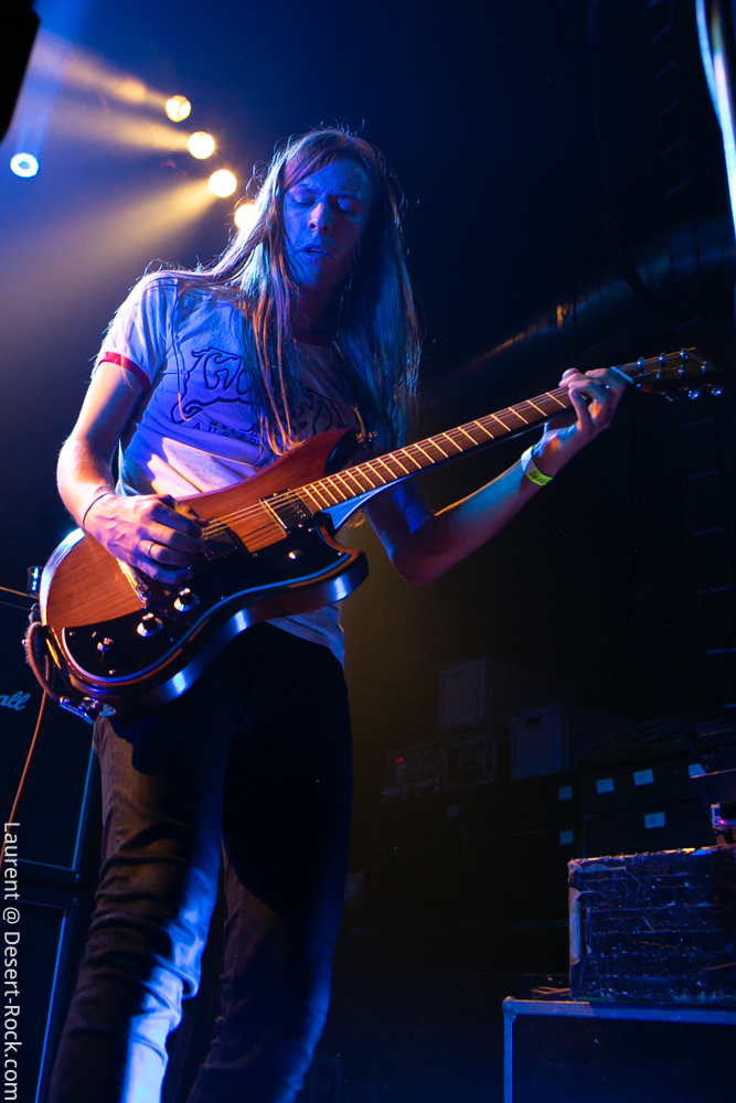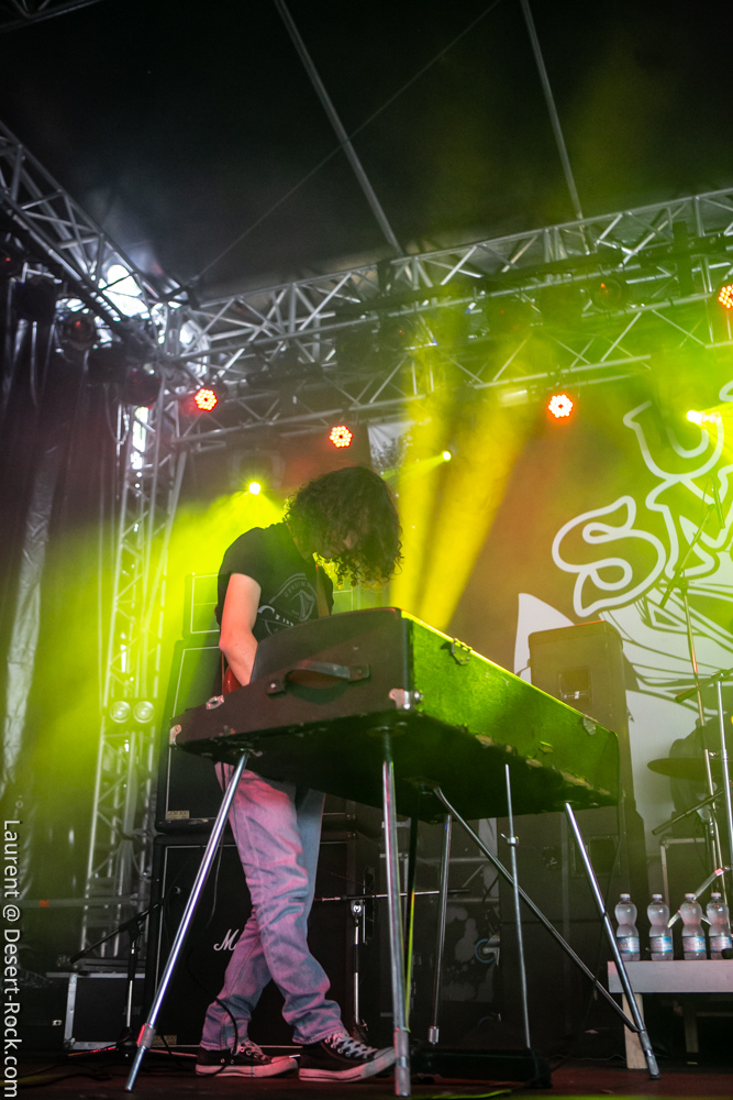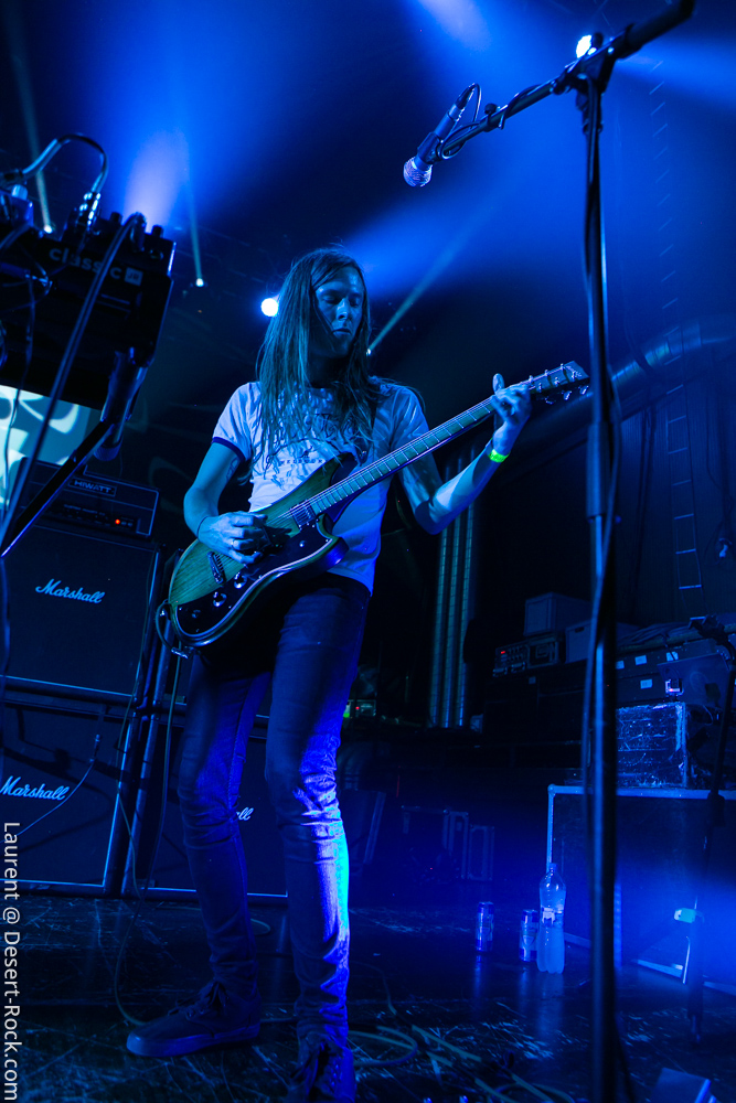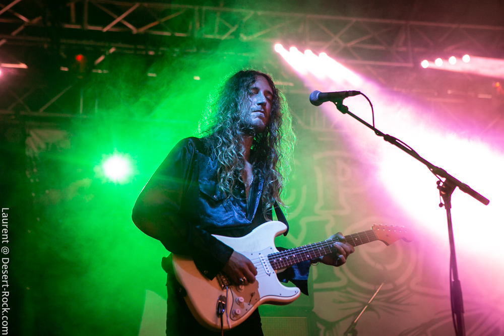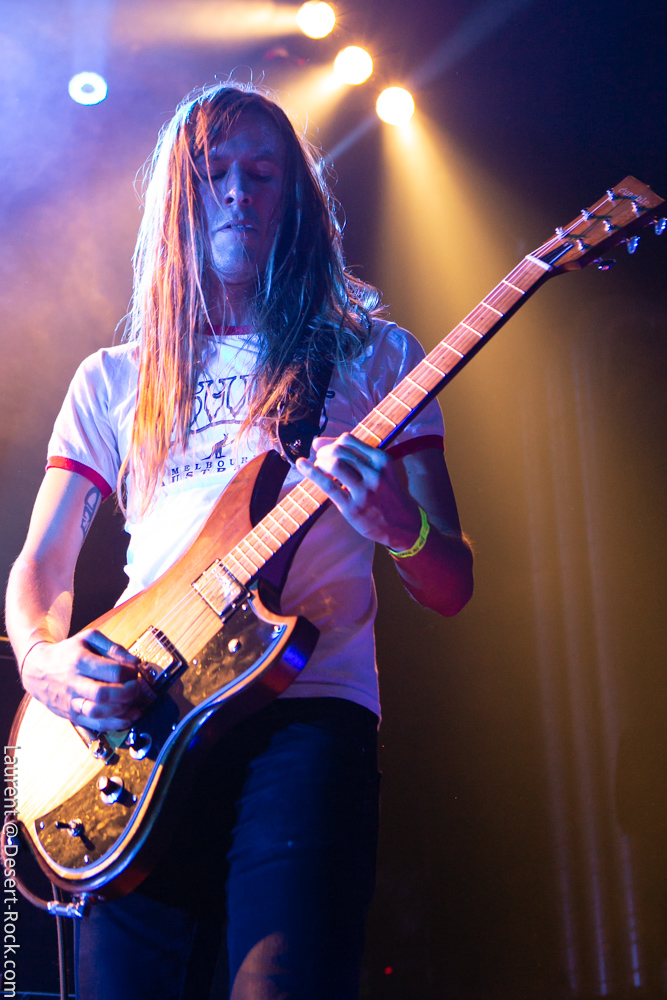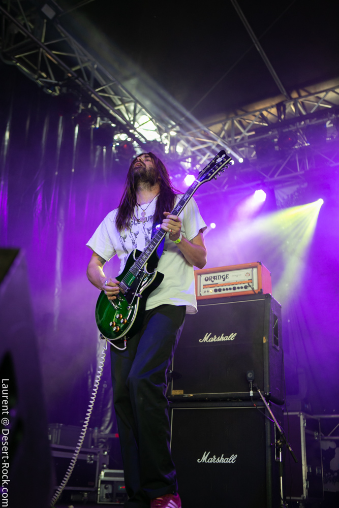 Encore un peu embrumés par la prestation envoûtante et immersive du trio grec, c’est vers un autre trio que l’on se dirige, avec envie : les Australiens de Child ont toujours proposé des prestations live remarquables, basées sur une production vinylique tout aussi enthousiasmante. La formation emmenée par Mathias Northway entame un set classieux devant une assistance dense et intéressée. Malheureusement, les esprits et les corps semblent lourds et engourdis par la séance précédente sur la main stage (et se préparent sans doute aussi à l’assaut en 5 temps qui s’annonce juste ensuite), et ils ne répondent pas plus que par une attention soutenue, voire quelques phénomènes ondulatoires disséminés. Victime probable d’un créneau espace-temps défavorable, voire d’un alignement des planètes malheureux, nos trois larrons ne déméritent pourtant pas : leur hard rock fuzzé riche en plans psyche et blues est exécuté à la perfection. Un peu à l’image de Radio Moscow et de son frontman, Northway est un guitariste-vocaliste surdoué, propagateur d’un feeling indécent et d’un touché à la guitare sans pareille, qui mène sa barque avec une humilité tangible (voir la place accordée à ses compères) et un talent incontestable. Ses soli sont délicieux et on n’en perd pas une goutte. Malheureusement, on constate nous-même notre propre incapacité à s’immerger pleinement dans ce set… Parfois, on n’a juste pas la clé, et l’alchimie ne passe pas, sans qu’on ne puisse comprendre pourquoi. Un groupe remarquable, une prestation irréprochable, mais une date qui ne restera pas dans les annales.