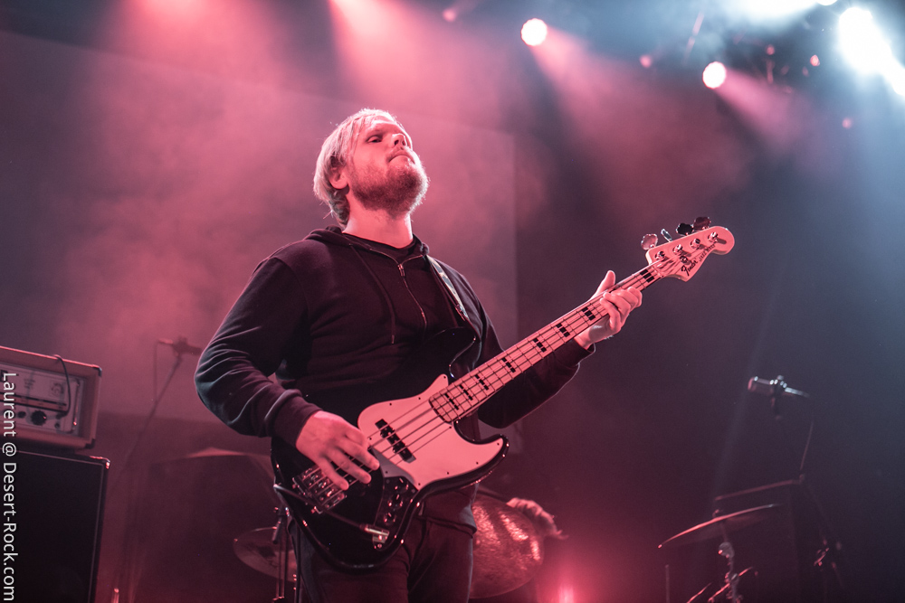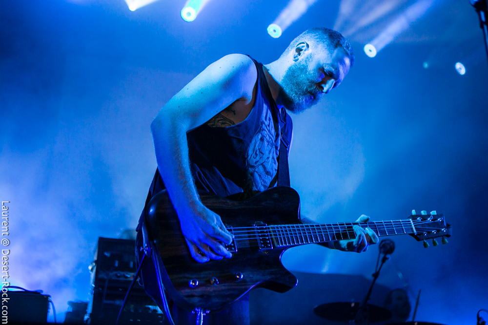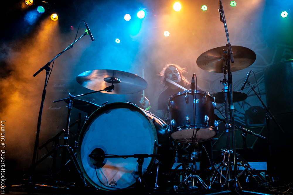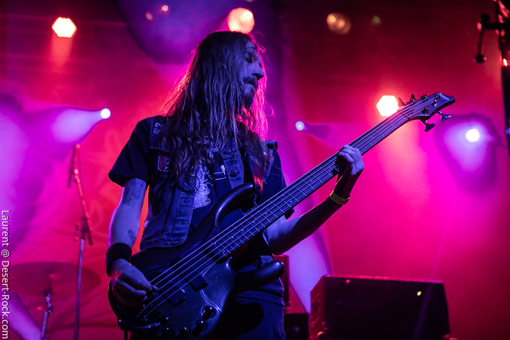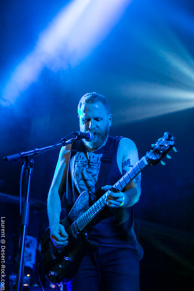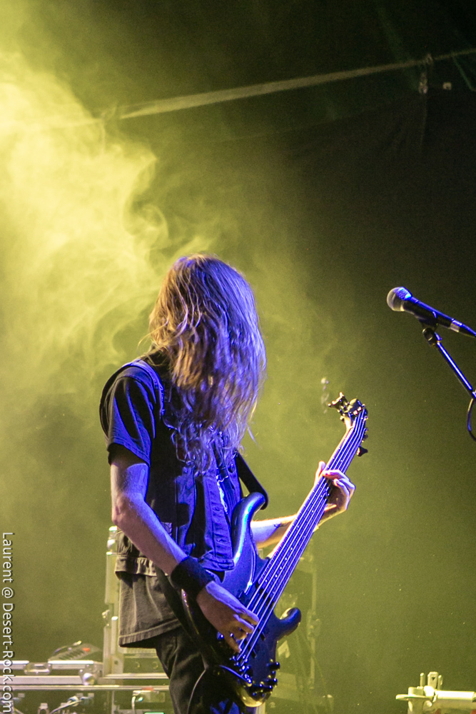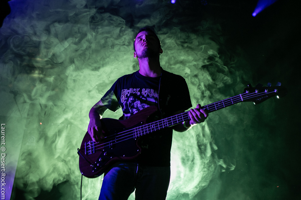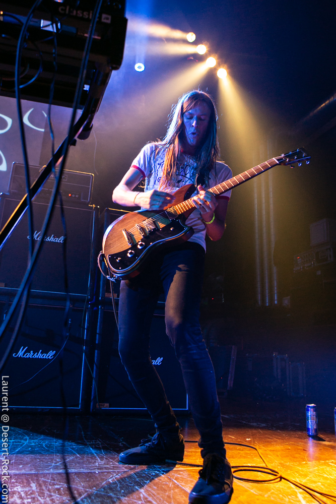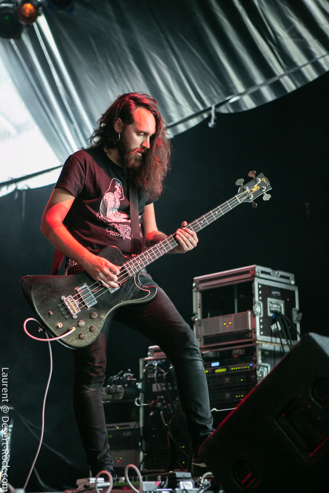 Elder sera le premier acte du quinté de folie qui a animé cette dernière journée de la manifestation (réjouissez-vous les enfants : on passe à trois jours dès l’an prochain). Le public était chaud bouillant pour cette suite d’anthologie et lorsque le – désormais – quatuor de Boston a ramené ses miches sur scène il régnait une ambiance des plus électriques dans la halle. Du côté de vos envoyés sur place c’était aussi la fête du slip vu que la prestation berlinoise à laquelle nous avions assisté il y a quelques mois nous avait bien laissé sur le cul ! Il faut dire que nous sommes assez fans de la bande de Nick DiSalvo (certainement pas le nom le plus simple à porter à Boston vu la proximité sonore avec Albert) et que la formule en quatuor qui nous avait tant fait nous interroger avant de la jauger sur pièce avait fini par nous convaincre. La foule des grands jours était au rencard et Elder a déroulé le grand jeu une heure durant en misant sur son jovial bassiste, Jack Donovan, pour assurer la partie un peu plus visuelle du spectacle tant ses compères sont focalisés sur la technique qu’ils déploient live. Tout comme d’habitude, le groupe de la Nouvelle-Angleterre a été ahurissant et comme à l’accoutumé nous avons été envoûtés par leur prestation dont le point d’orgue a été une nouvelle fois « Compendium » : l’énorme composition qui a largement contribué à placer Lore parmi les productions qui ont marqué le renouveau du style que nous chérissons en le désamarrant de ses ports d’attache scandinave ou californiens originels. Merci à ces lascars : ils sont magiques !
