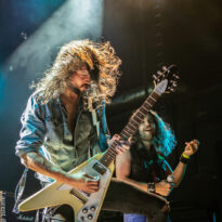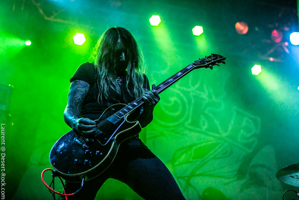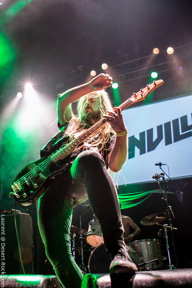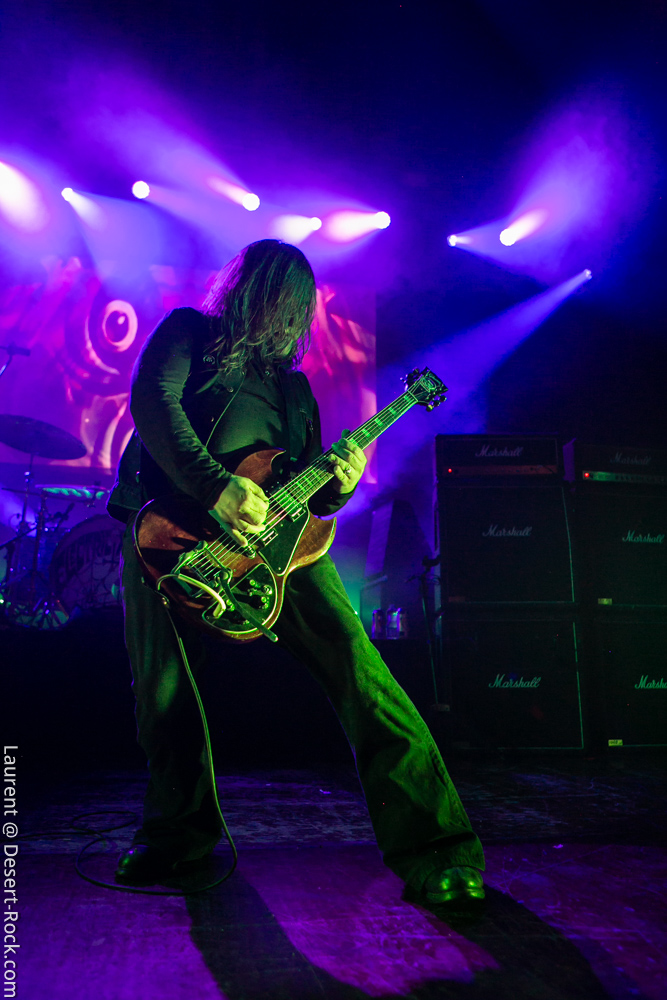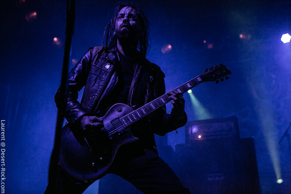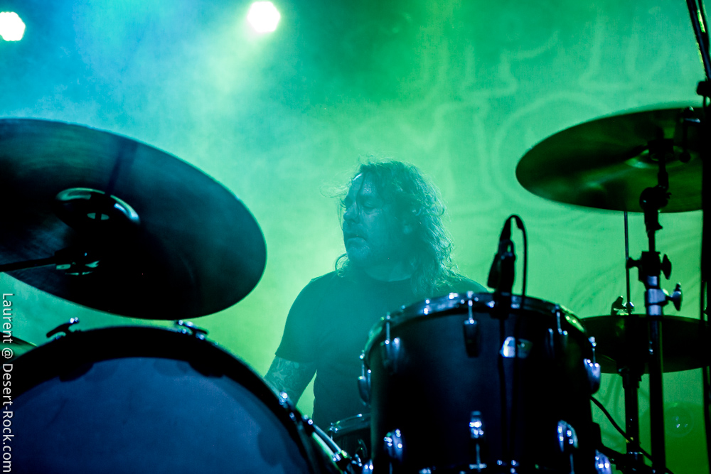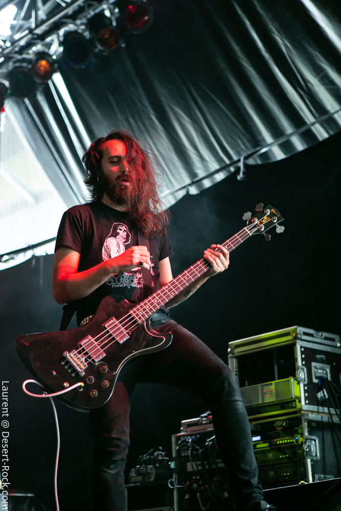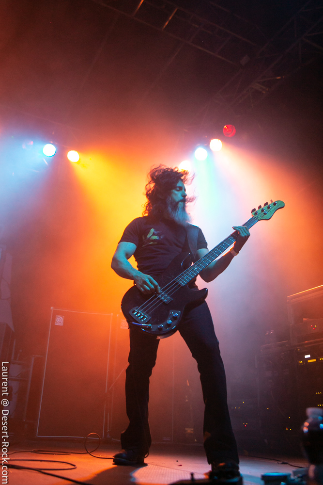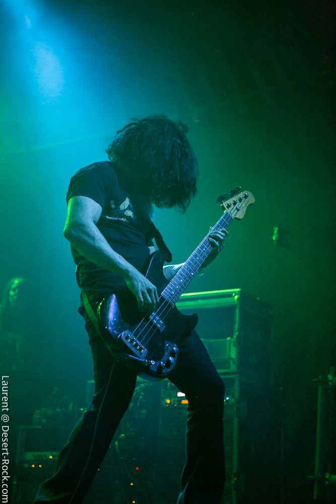 Elder sera le premier acte du quinté de folie qui a animé cette dernière journée de la manifestation (réjouissez-vous les enfants : on passe à trois jours dès l’an prochain). Le public était chaud bouillant pour cette suite d’anthologie et lorsque le – désormais – quatuor de Boston a ramené ses miches sur scène il régnait une ambiance des plus électriques dans la halle. Du côté de vos envoyés sur place c’était aussi la fête du slip vu que la prestation berlinoise à laquelle nous avions assisté il y a quelques mois nous avait bien laissé sur le cul ! Il faut dire que nous sommes assez fans de la bande de Nick DiSalvo (certainement pas le nom le plus simple à porter à Boston vu la proximité sonore avec Albert) et que la formule en quatuor qui nous avait tant fait nous interroger avant de la jauger sur pièce avait fini par nous convaincre. La foule des grands jours était au rencard et Elder a déroulé le grand jeu une heure durant en misant sur son jovial bassiste, Jack Donovan, pour assurer la partie un peu plus visuelle du spectacle tant ses compères sont focalisés sur la technique qu’ils déploient live. Tout comme d’habitude, le groupe de la Nouvelle-Angleterre a été ahurissant et comme à l’accoutumé nous avons été envoûtés par leur prestation dont le point d’orgue a été une nouvelle fois « Compendium » : l’énorme composition qui a largement contribué à placer Lore parmi les productions qui ont marqué le renouveau du style que nous chérissons en le désamarrant de ses ports d’attache scandinave ou californiens originels. Merci à ces lascars : ils sont magiques !