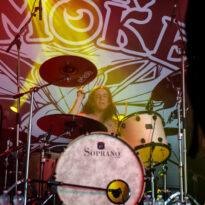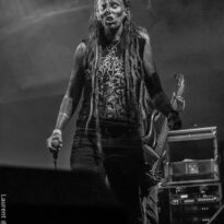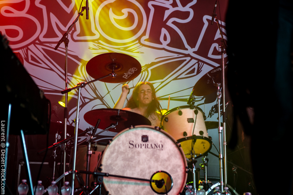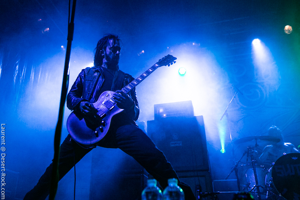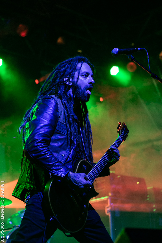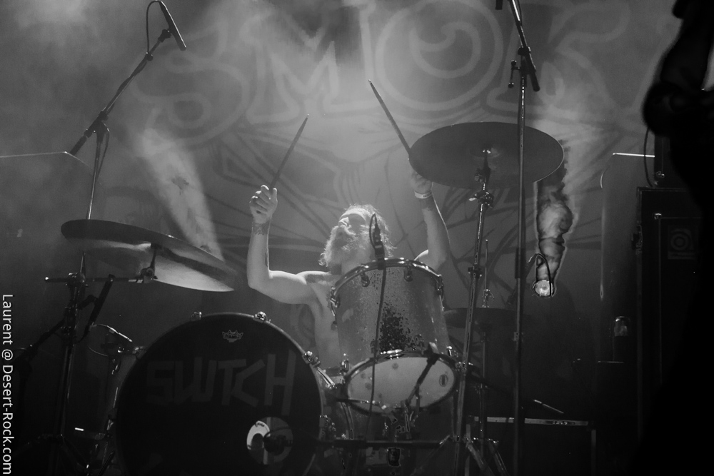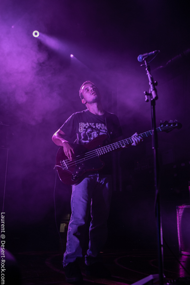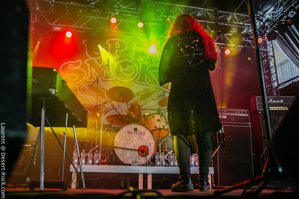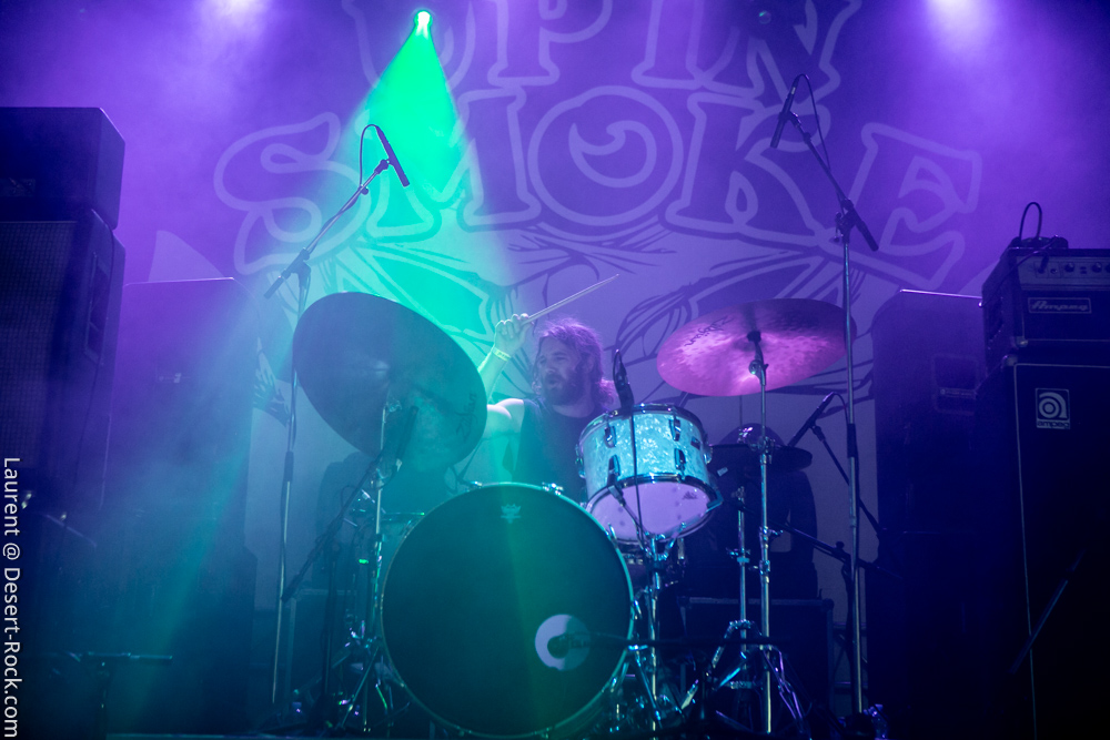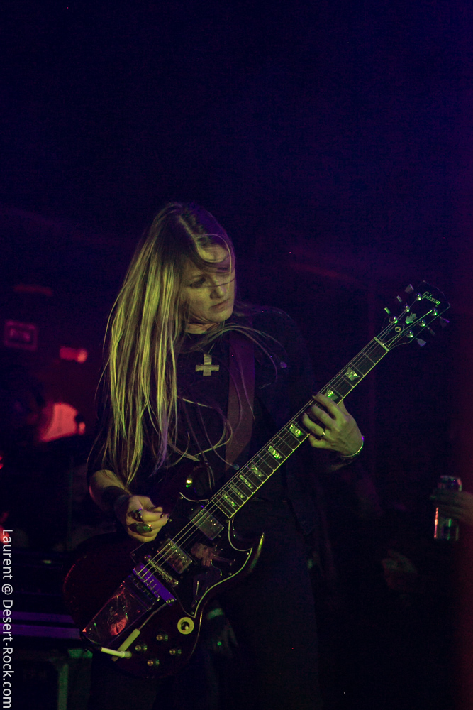 La fin de ce Up in Smoke sera doom ou ne sera pas, qu’on se le dise. Et à ce jeu là, difficile de faire mieux que ce qui nous est proposé ce soir, et en premier lieu les vétérans de Acid King. La première étape comme à chaque fois avec Acid King consiste à évaluer les forces en présence : qui Lori a-t-elle embarqué cette fois pour l’épauler en tournée ? On retrouve en premier lieu Rafa, batteur extraordinaire de Black Cobra, que l’on retrouve comme souvent chez Acid King… à la basse ! Il faut dire que le cogneur est aussi un excellent bassiste (comme tous ceux qui se sont succédés sur ce poste au sein du Roi Acide) qui délivre une prestation excitante et enivrante pendant presque une heure de set. A la batterie, un petit nouveau dans cette formation : Bil Bowman, frappeur déja entendu derrière les fûts des très intéressants Hornss, un autre groupe de San Francisco. Bref, là non plus, rien à redire. Reste donc à la maîtresse des lieux Lori de fixer la tendance de ce soir. Et elle est en forme, donc tout va bien. Fidèle à elle-même, sans trop en faire, elle balance ses riffs sur-fuzzés lents et lourds et aligne des vocaux lancinants et hantés dont elle a le secret. Elle est impeccable, là où on l’attend. Dans une niche de doom old school fiévreux, Acid King devient petit à petit l’un des derniers gardiens du temple, une référence inamovible qui, sans jamais transcender complètement le genre, en apporte une interprétation toujours infaillible et hautement jouissive. Encore un excellent moment…