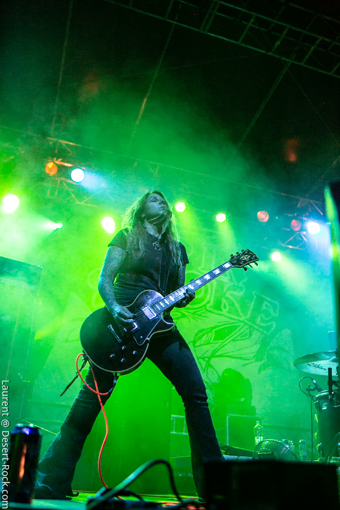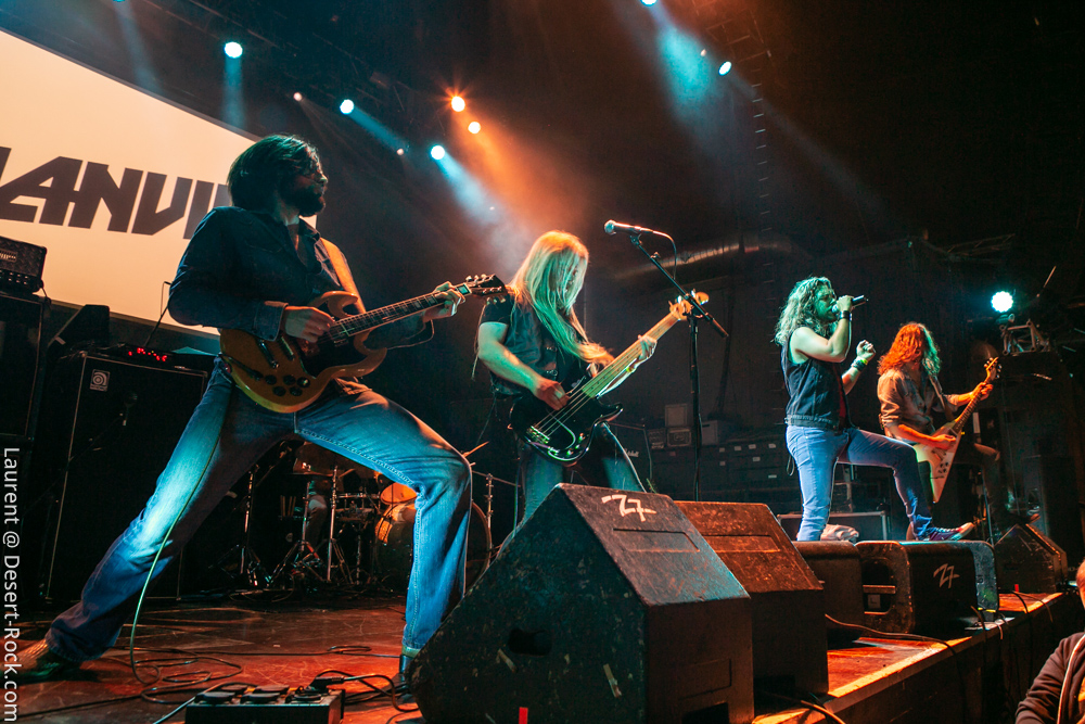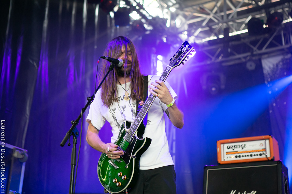Le club des cinq de Darmstadt donne le coup d’envoi de son set à peine la prestation extérieure de Messa achevée (pas le temps de siroter un café avec des bulles pour les inconditionnels des bars). Les Allemands dépucèlent la Main Stage pour ce second jour en explorant un registre hard rock aux relents fort vintage. Ces gens citent le grand Rudolph de leurs compatriotes Scorpions, c’est vous dire l’inspiration des gars. Vu le style, et l’heure peut-être aussi, le public est clairsemé, malgré le dynamisme déployé sur scène. Il faut avouer que les Teutons touchent bien leur bille question technique et qu’ils ne semblent pas débuter (ah ouais on se sent entre contemporains avec ce genre de combos), mais question fréquentation on verra nettement plus impressionnant dans la journée. Les qualités du groupe sont clairement hors de cause parce que ça balance et c’est catchy. Le problème c’est le style qui visiblement ne touche ni les amateurs de fuzz, ni les inconditionnels de doom et pas franchement les bourrins présents dans la place. Au final, on ne se fait pas carrément chier, mais en vrai le combo et ses attitudes de rockstar ne nous touchent pas vraiment, et quand on considère les gens autour de nous on s’autorise à penser que Glanville rencontrerait un meilleur accueil de la part du public dans d’autres rassemblements musicaux plus orientés metal.