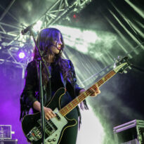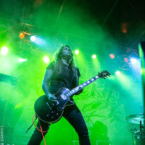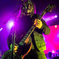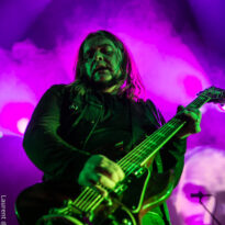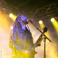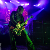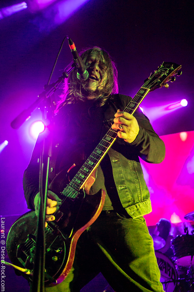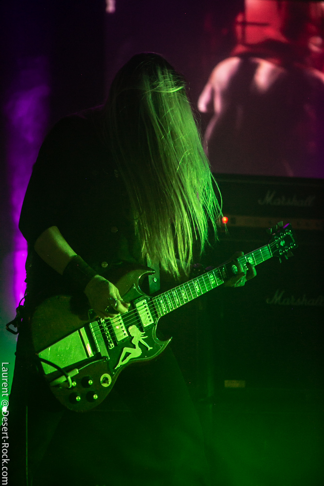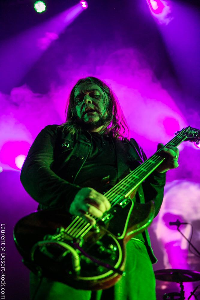 On prend les presque mêmes et on recommence : comme en 2016, il revient aux Britanniques de mettre un point final au Up In Smoke sur la grande scène. Bien évidemment, vu le pédigrée de cette équipe, il y a du monde dans la place malgré les crêpages de chignon qui ont animé les réseaux sociaux à la sortie du petit dernier, Wizard Bloody Wizard. De cette dernière production, ils tireront le très lent « See You In Hell » avec son groove diablement efficace. Comme autre nouveauté : nous retrouvons sur scène un nouveau bassiste (encore !) ayant rejoint le quatuor depuis peu ; le garçon se débrouille correctement sur son instrument et scéniquement il est comme les trois-quarts du groupe : dans une obscurité certaine. Seul le père Oborn est parfois mis en valeur par des spots verts car visuellement ce sont les projections interlopes que cette formation aime à proposer en fond des scène qui captent les regards (en plus de Liz – la guitariste – je vous vois venir bande d’obsédés !). On souligne que ces grands professionnels étaient sur place aux aurores afin de veiller à ce que le système dispensant ses animations soit réglé aux petits oignons tout comme le son de leurs instruments ; ils ont soundchecké alors que la plupart des festivaliers étaient encore dans les bras de Morphée (c’est aussi ça la rock’n’roll attitude). Question setlist, rien de bien extraordinaire, mais une flopée de valeurs sûres alignées après avoir passé l’énorme « Procreation (Of The Wicked) » de Celtic Frost sur la sono, un titre qui fait partie intégrante du folklore local. On s’est tapé « The Chosen Few » que nous avions capté pour vous au Hellfest (coupure pub : vous le retrouverez facilement sur notre chaîne YouTube) et l’énorme « Incense For The Damned » qui a bastonné correct entre les murs du Z7. Pas franchement cascadeur comme choix de la part des programmateurs, Electric Wizard demeure néanmoins un bon groupe de scène qui a fédéré la plupart des festivaliers durant son set prouvant ainsi non seulement son statut d’icône d’un certaine approche du doom, mais aussi sa capacité à rassembler des amateurs de sensations plus épicées ou plus apaisées et c’est ça aussi la communauté stoner.