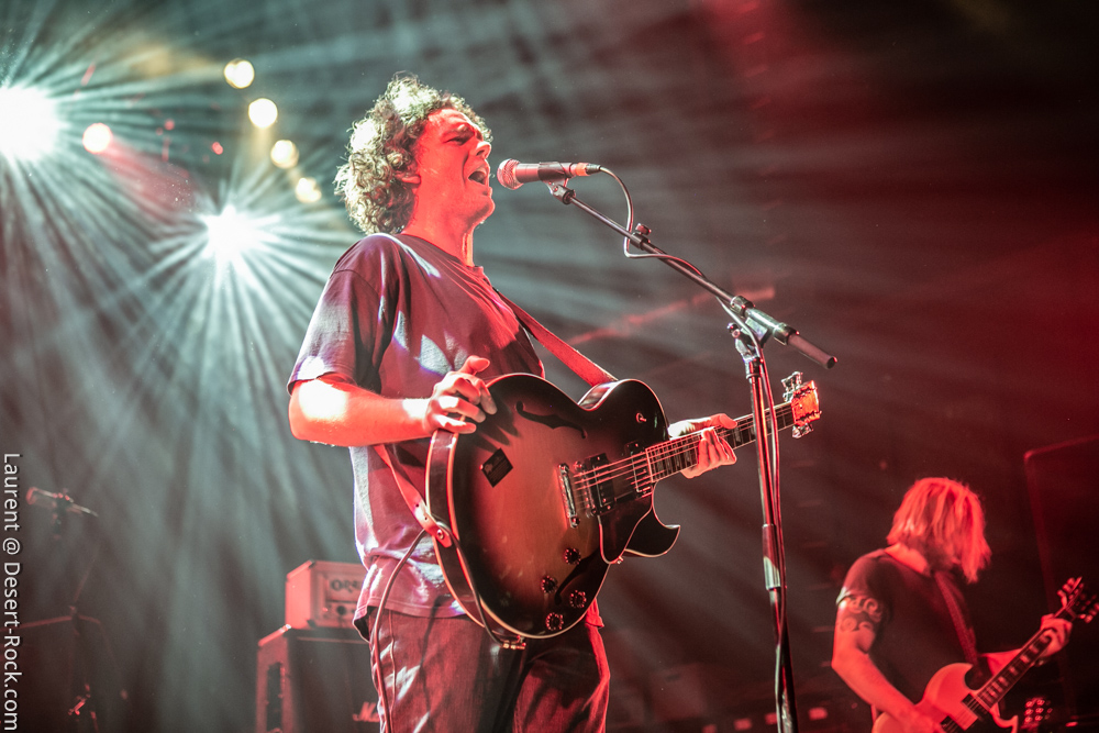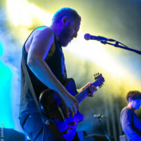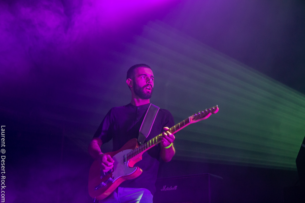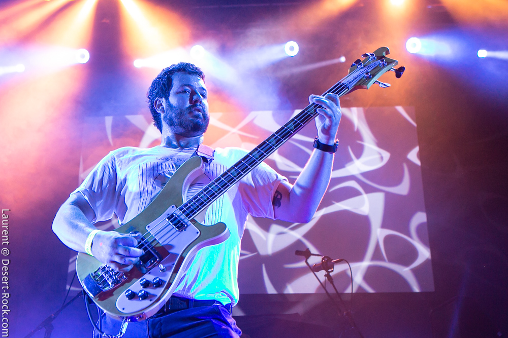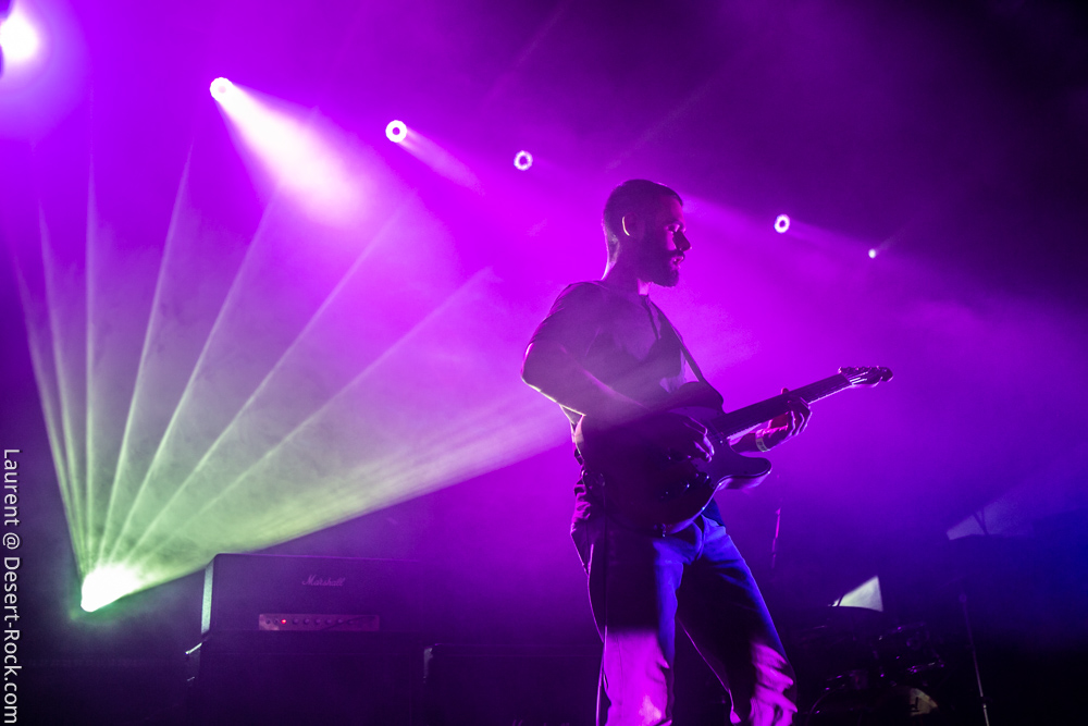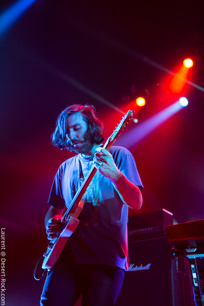 On a beau apprécier la discographie du trio grec, on sait aussi, tandis qu’on se dirige vers la main stage, que les groupes évoluant dans ce style musical jouent sur la corde raide, en équilibre précaire entre immersion trippante enthousiasmante et set ennuyeux et laborieux étiré en longueur via des pseudos jams mal inspirés. Vos serviteurs n’ayant jamais eu l’occasion de capter le groupe sur les planches auparavant, nous voyons nos doutes balayés au bout de quelques minutes, devant le simple constat d’une sorte de vague bienheureuse qui se déploie dans le public, qui ondule béatement pendant trois beaux quarts d’heure. Les trois jeunes musiciens, baignant dans un light show très bien étudié, déploient tranquillement un savoir faire remarquable, fait d’un talent d’interprétation inattaquable, et d’une inspiration dans les compos qui fait toute la puissance du set : basculant de passages psyche à des plans plus lourds, parfois chargés en grosses doses d’un space rock classieux, le groupe prend son public par le col et ne le lâche plus. Les quelques interventions sympathiques de John Vagenas ne viennent jamais complètement rompre l’enchantement des titres, parmi lesquels le groupe nous propose un avant goût de son prochain album à travers un morceau inédit. On ressort de cette expérience avec la farouche conviction qu’un nouveau grand groupe est en train d’émerger dans ce genre musical exigeant.