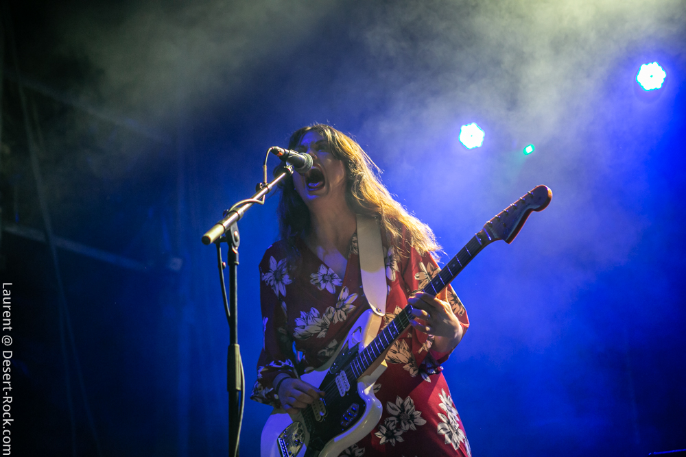 On était plutôt dubitatifs initialement de constater la présence d’un groupe de punk rock aussi haut sur une affiche d’un festival qui fait la part belle au stoner rock et ses multiples déviances. Directe émanation du mouvement Riot grrrl, le trio berlinois déboule sur la side stage à l’heure de l’apéro, bien décidées à en découdre. Et finalement, la pilule passe étrangement bien. Nous ne revendiquerons aucune expertise sur le genre musical pratiqué que nous nous abstiendrons donc de commenter, mais l’énergie déployée semble contenter le public (même si en toute logique la fosse n’est pas la plus tassée du week end) et, plus que tout, offre une parenthèse et un peu d’air frais à cette affiche dense en grosses formations stoner.