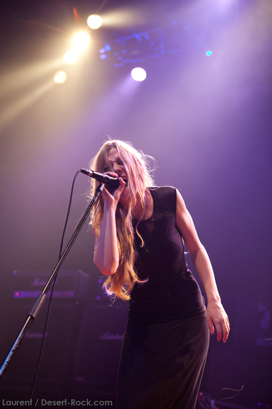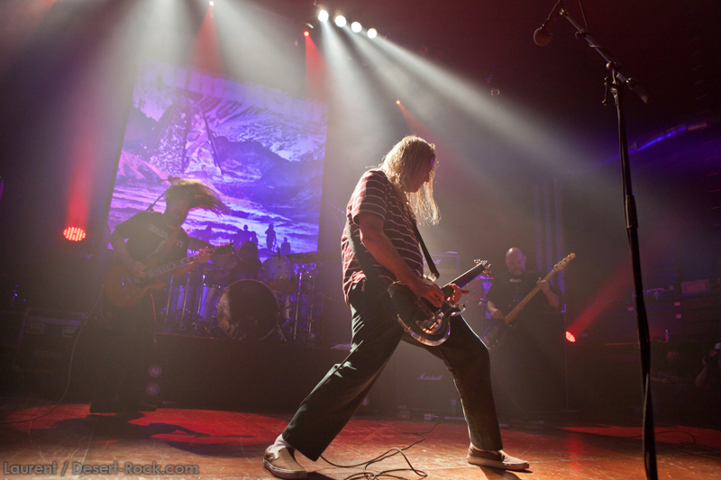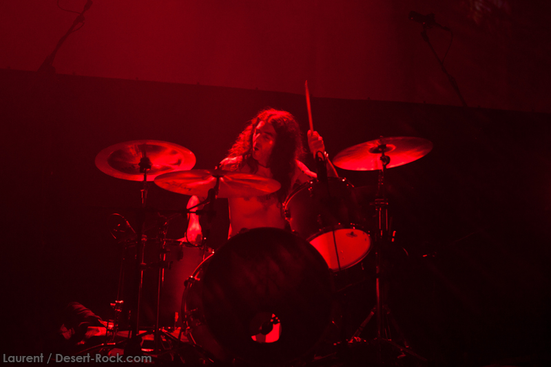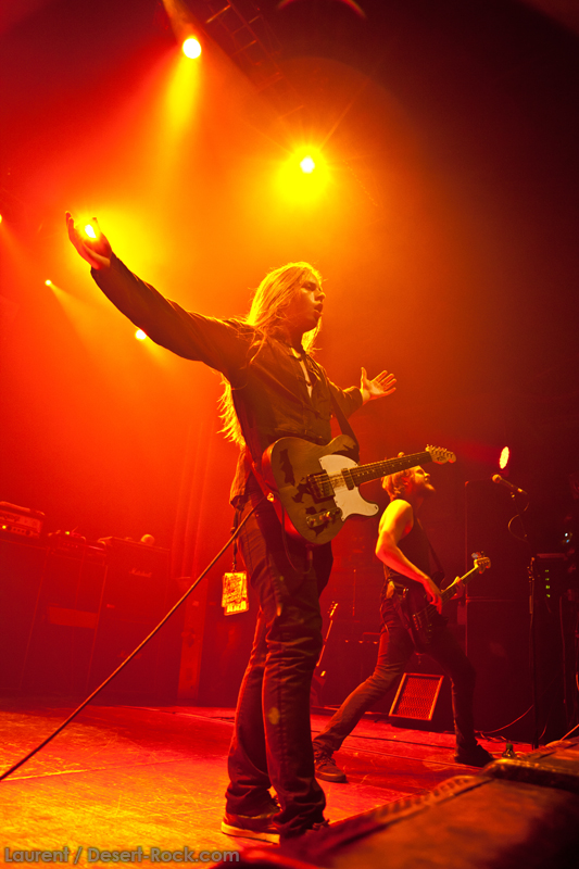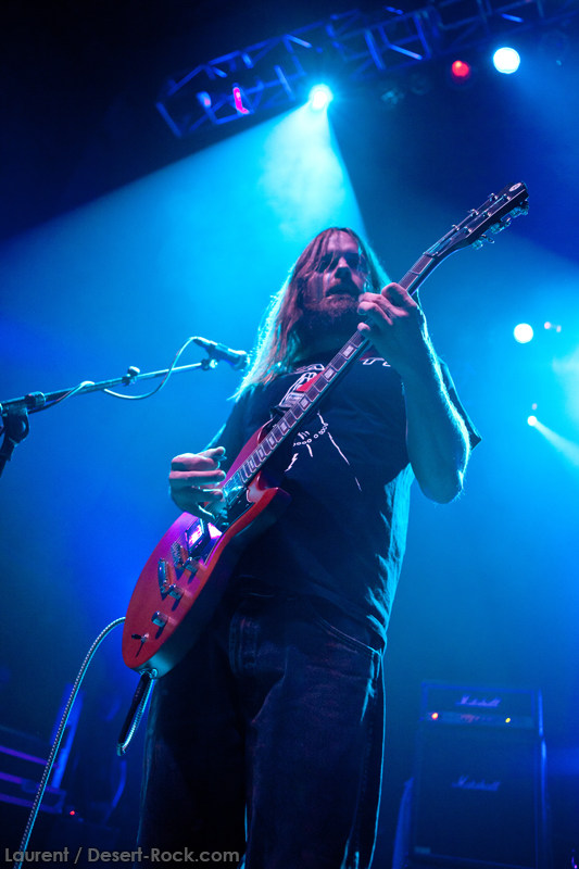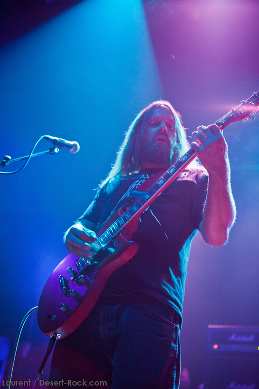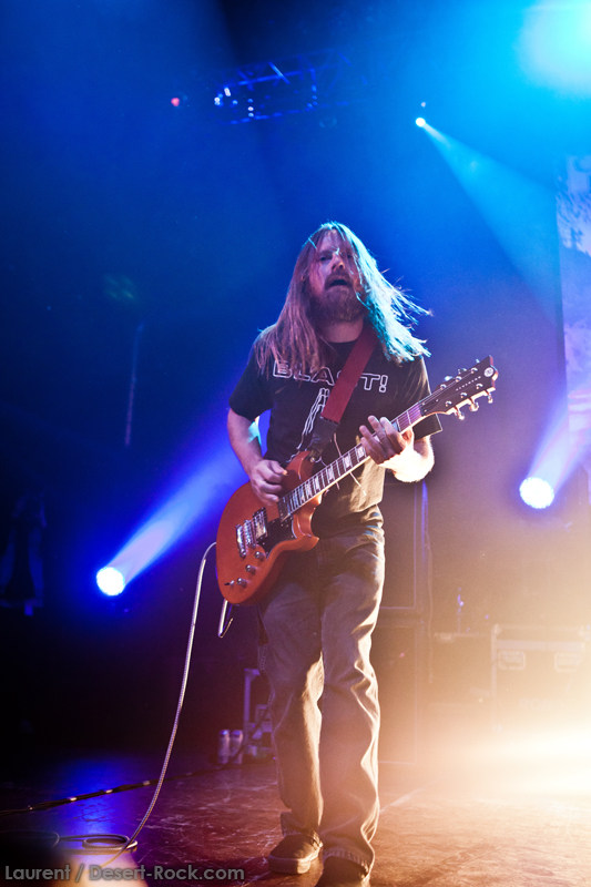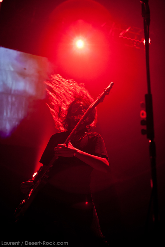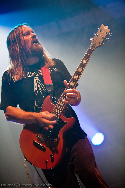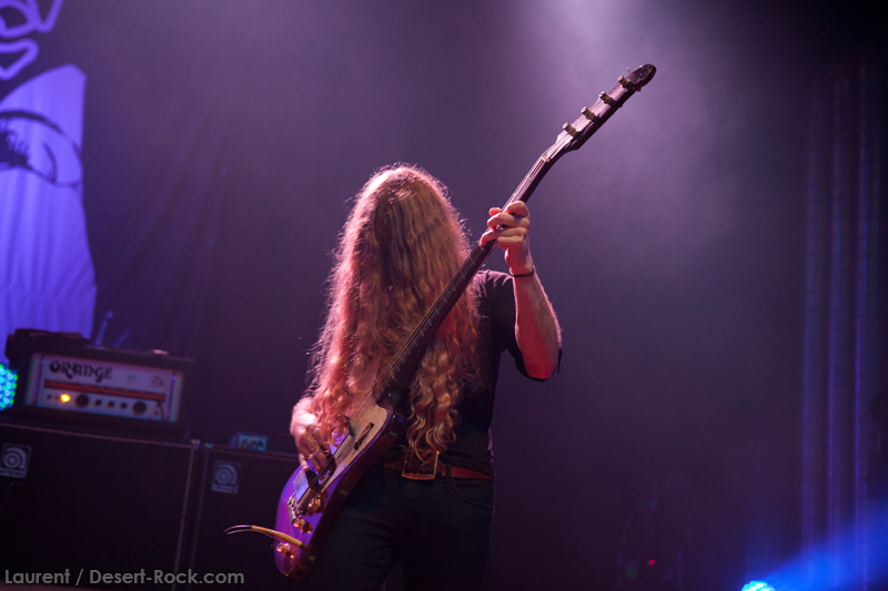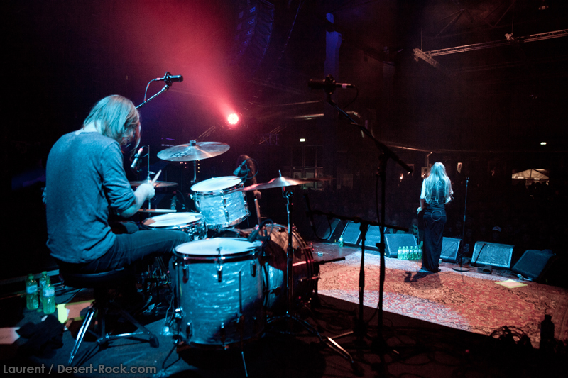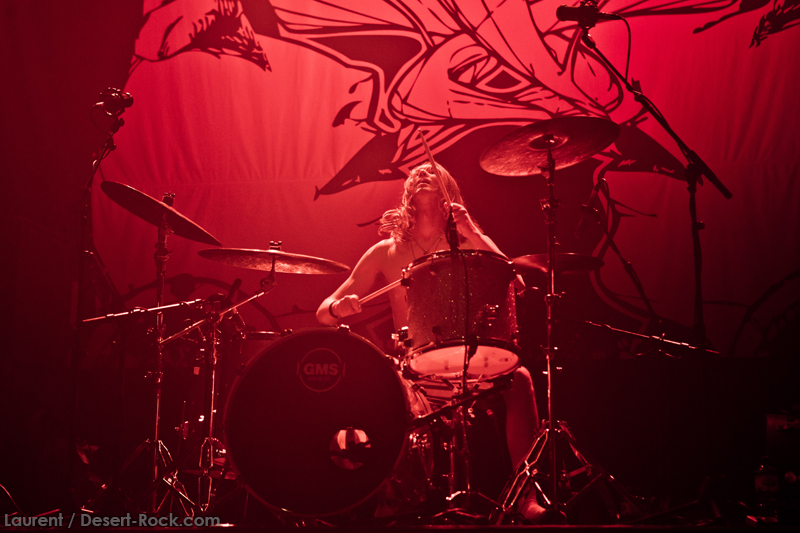 Elle est là, devant nous, la « hype » de cette stoner année. Personne n’a pu passer à côté de ce nom ces derniers temps, présent sur toutes les grosses affiches, dans tous les gros festival de cette musique que nous affectionnons. Les pilules bleues sont là, devant nous, public énamouré ou curieux, impatient et connaisseur, et elles vont devoir assurer après le typhon Fu-Manchu qui s’est abattu avant eux (et qui a emporté une part du public avec lui, même si la salle est loin d’être vide). Elin « Janis » Larsson l’annonce elle-même, consciente de la tâche qui les attend. C’est donc avec « High class woman» que le groupe se charge d’ouvrir les hostilités. C’est en place, carré, l’arrivée de André Kvarnström, ex-batteur de Truckfighters, derrière les fûts ajoute un surplus de niaque à l’ensemble. Techniquement, ça déroule sec. Vu les zicos aux commandes, c’est du délié 5 étoiles qui accompagne la voix puissante et chaude de la chanteuse. « No hope left for me », « Bliss », « Devil Man » bien sûr. Le set déroule avec cette impression de malaise cependant. Le jeu de scène figé, le peu de communication entre les musiciens, la guitare solo bien timide là où elle devrait être brutale, il nous manque quelque chose pour que le blues-rock du groupe nous retourne les tripes ; de la sueur certainement, un peu plus de sincérité aussi, peut-être. Nous n’avons pas adhéré à l’ensemble mais le public semble aux anges. C’est bien là l’essentiel pour clore cette première journée, un public heureux.