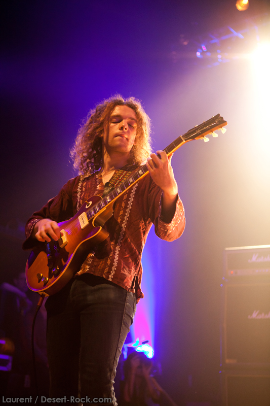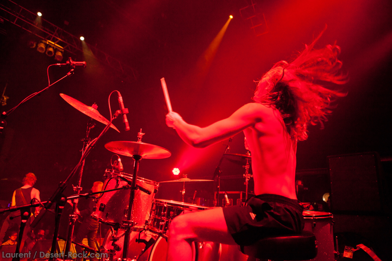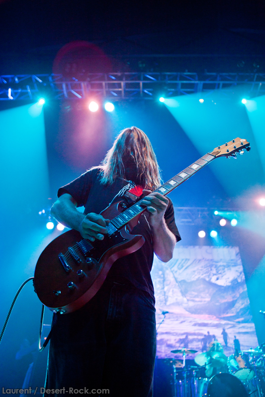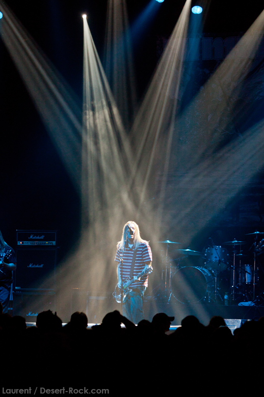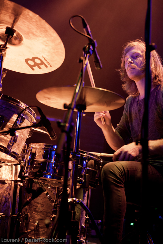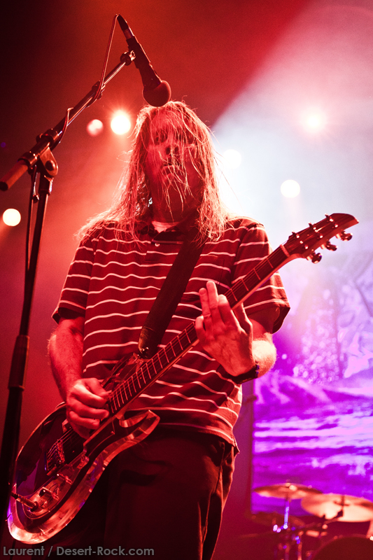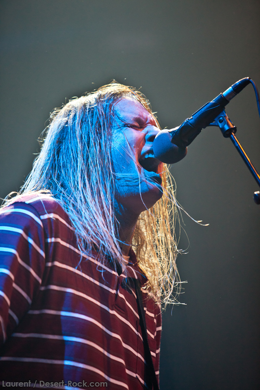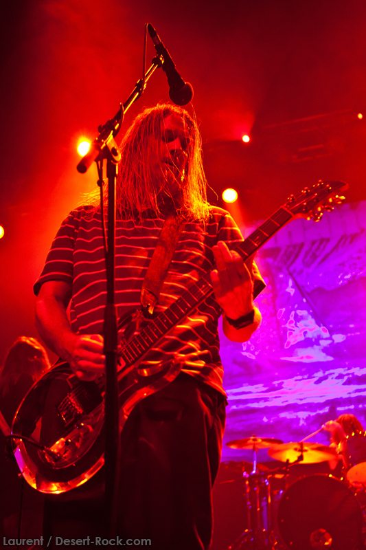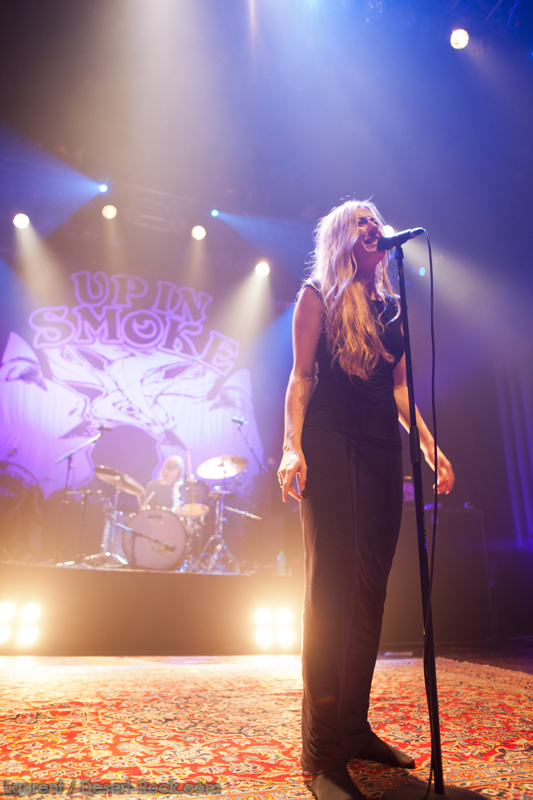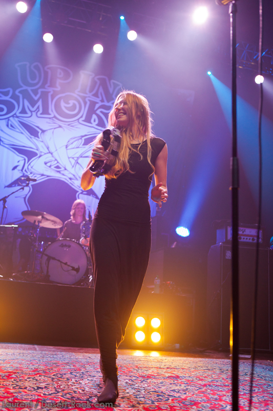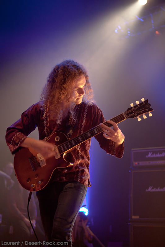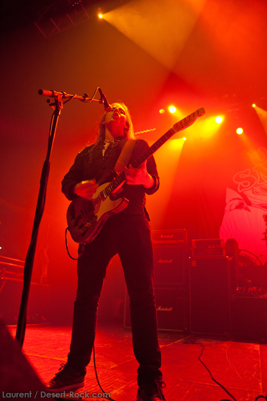 Elle est là, devant nous, la « hype » de cette stoner année. Personne n’a pu passer à côté de ce nom ces derniers temps, présent sur toutes les grosses affiches, dans tous les gros festival de cette musique que nous affectionnons. Les pilules bleues sont là, devant nous, public énamouré ou curieux, impatient et connaisseur, et elles vont devoir assurer après le typhon Fu-Manchu qui s’est abattu avant eux (et qui a emporté une part du public avec lui, même si la salle est loin d’être vide). Elin « Janis » Larsson l’annonce elle-même, consciente de la tâche qui les attend. C’est donc avec « High class woman» que le groupe se charge d’ouvrir les hostilités. C’est en place, carré, l’arrivée de André Kvarnström, ex-batteur de Truckfighters, derrière les fûts ajoute un surplus de niaque à l’ensemble. Techniquement, ça déroule sec. Vu les zicos aux commandes, c’est du délié 5 étoiles qui accompagne la voix puissante et chaude de la chanteuse. « No hope left for me », « Bliss », « Devil Man » bien sûr. Le set déroule avec cette impression de malaise cependant. Le jeu de scène figé, le peu de communication entre les musiciens, la guitare solo bien timide là où elle devrait être brutale, il nous manque quelque chose pour que le blues-rock du groupe nous retourne les tripes ; de la sueur certainement, un peu plus de sincérité aussi, peut-être. Nous n’avons pas adhéré à l’ensemble mais le public semble aux anges. C’est bien là l’essentiel pour clore cette première journée, un public heureux.