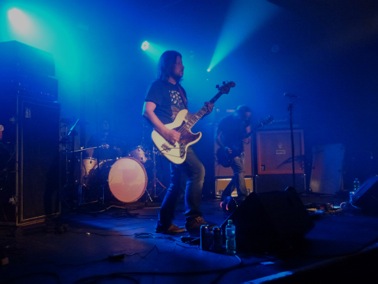 Petit tour du propriétaire, poignées de main, causette avec des membres de notre forum, largage de quelque argent au stand merch qui recelait de mille-et-un trucs d’enfer genre le DVD du Roadburn de Monkey 3, les vinyles colorés de Glowsun et Monkey3, les affiches de Johan – à prononcer à la française s.v.p. – puis clopes sur le parvis et rentrée dans la salle pour tous – c’est-à-dire pour plus de monde que lors de mon arrivée car ça a commencé à affluer durant les civilités – afin d’assister au début du set des germains de la soirée.