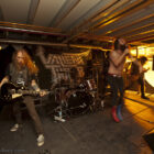 En arrivant sur place, confirmation : à quelques encablures de la plage, le soleil cogne encore, l’endroit est rempli de skaters, tout le monde est relax… Les musiciens du groupe viennent taper la discute, on voit même le bassiste Nitewolf s’essayer à la grande rampe de skate avant le concert ! La configuration de la scène, en revanche, fait un peu peur : une mini estrade de vingt centimètres de haut, une mini-table de mixage rudimentaire (reliée aux micros par un câble suspendu au plafond !), quatre ampoules de couleur posées sur un pied en fond de scène en guise de lightshow, deux enceintes sur pieds en plus des amplis… Roots ! Vers 22h, le groupe monte sur scène sur le modeste « Ainsi parlait Zarathoustra » de Strauss et entame avec un virulent « Heatseeker », un titre assez ancien au coefficient percussif non négligeable. La suite sera à l’avenant : le rapide « Infinite lives », le classique « Goveruptcy ». Puis le groupe nous délivre les premiers titres issus de son dernier opus, à commencer par le martial « Master Collider ».