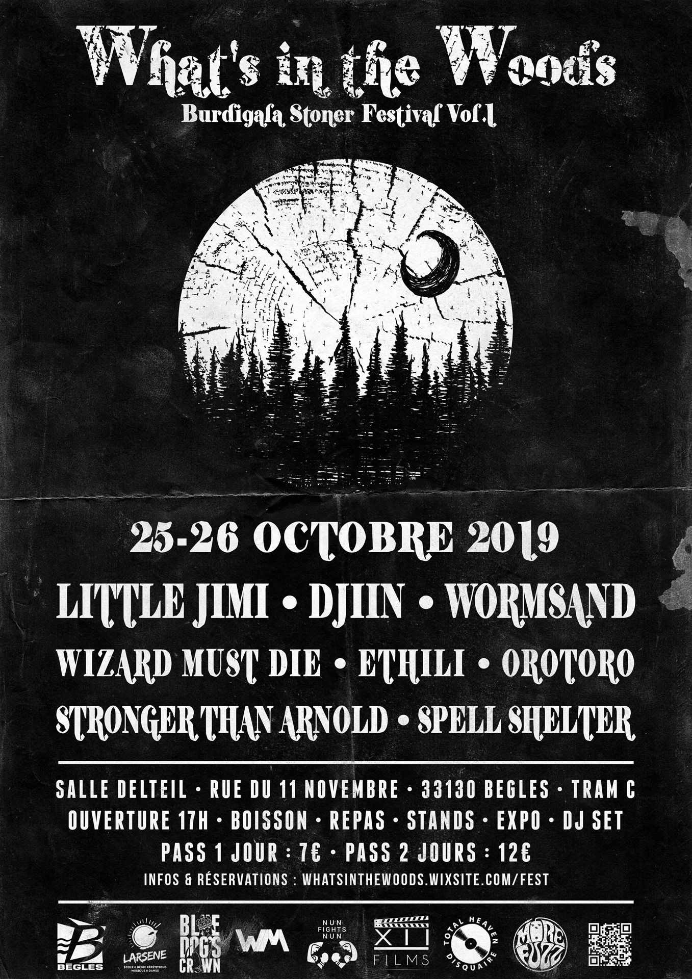 Le What’s in the Woods (sous-titré « Burdigala Stoner festival vol.1 ») s’est donc monté ces derniers mois à l’initiative d’une poignée d’activistes passionnés, conscients de la qualité des groupes français gravitant autour du stoner. Ces esthètes ont donc sélectionné 4 groupes par jour, entre découvertes et valeurs sûres, dans toutes les nuances de la sphère stoner / psyche :