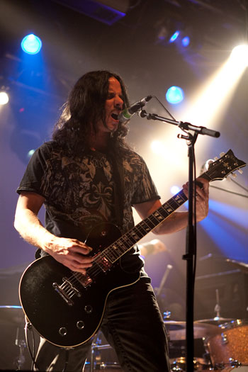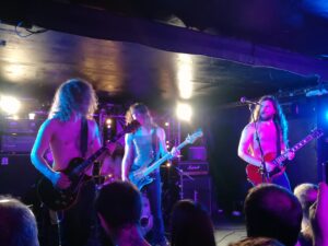Lorsque les membres de Satan’s Satyrs investissent la scène et démarrent leur set, on pourrait croire à une mauvaise blague. Entre les deux guitaristes moustachus et torse nu, le chanteur bassiste est habillé d’un débardeur panthère et nous rappelle plus Twisted Sister que Black Sabbath. Pourquoi pas, mais sur une affiche comme celle là, on ne s’attendait pas forcément à ça. Pourtant, on s’aperçoit rapidement qu’on est très loin de la légèreté glam : c’est couillu, riffesque à mort, et le public (largement moins présent qu’aux deux précédents groupes, il faut l’admettre) se prête au jeu et finit par prendre son pied. On pense à du hard, du heavy, un peu de punk, et aussi à Jagger periode Exile on Main St. Des problèmes de volume subsistent au niveau de la voix du chanteur, trop en retrait. Finalement, on ne l’avait pas vu venir mais Satan’s Satyrs a livré le concert le plus fun de la soirée.