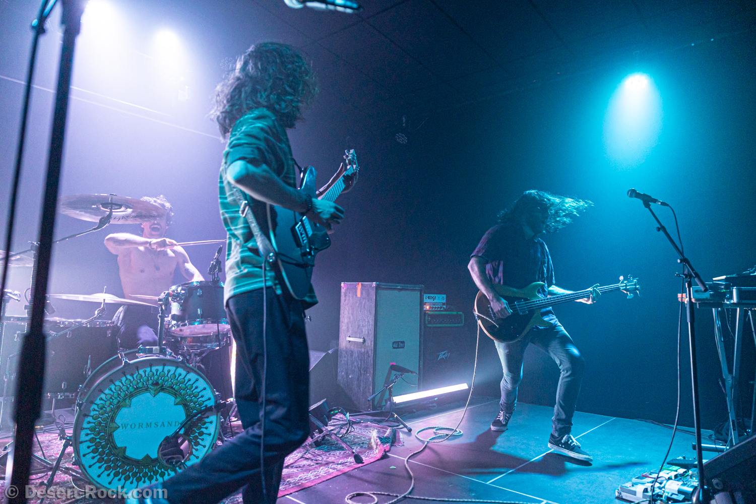 Encore dans la dynamique de son excellent album You, The King, sorti il y a quelques mois à peine, et après l’annonce de leur passage prévu au Hellfest cette année, Wormsand n’est pas du genre à se reposer sur ses lauriers, dans son local de répèt’. Ils se sont donc lancés sur la route pour une jolie poignée de dates, largement en France mais aussi en Italie et Suisse. Ce soir c’est la modeste mais excellente salle Sortie 13 qui les accueille dans l’agglomération directe de Bordeaux. Initialement prévu comme un petit concert sans première partie, dans la petite salle annexe, le public a répondu présent, ce qui a finalement amené le trio de Menton à jouer dans la « grande » salle, pour un concert tout à fait normal (prenez vos préventes, les gens : ça sert vraiment à quelque chose !).